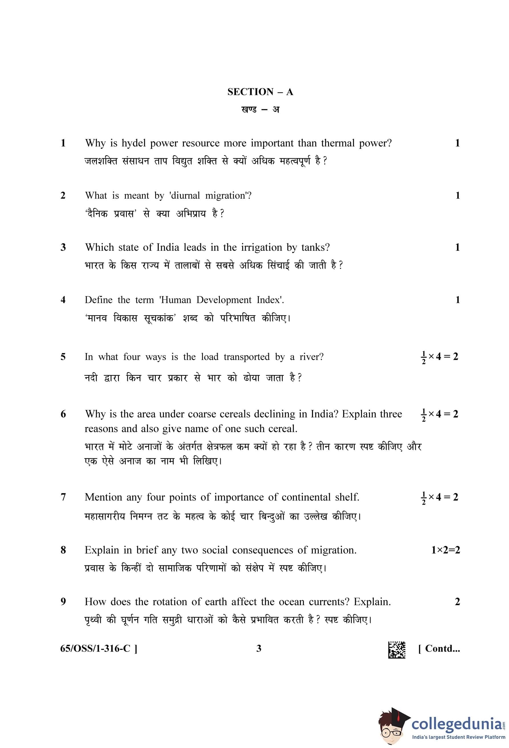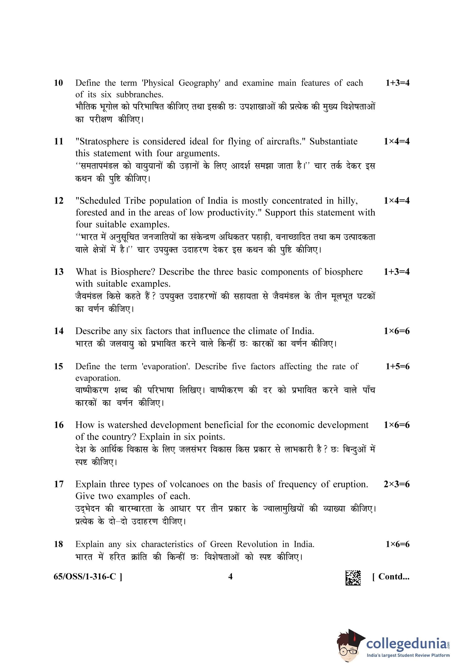 NIOS Class 12 Geography (Set C - OSS) Question Paper 2023 with Answer Key