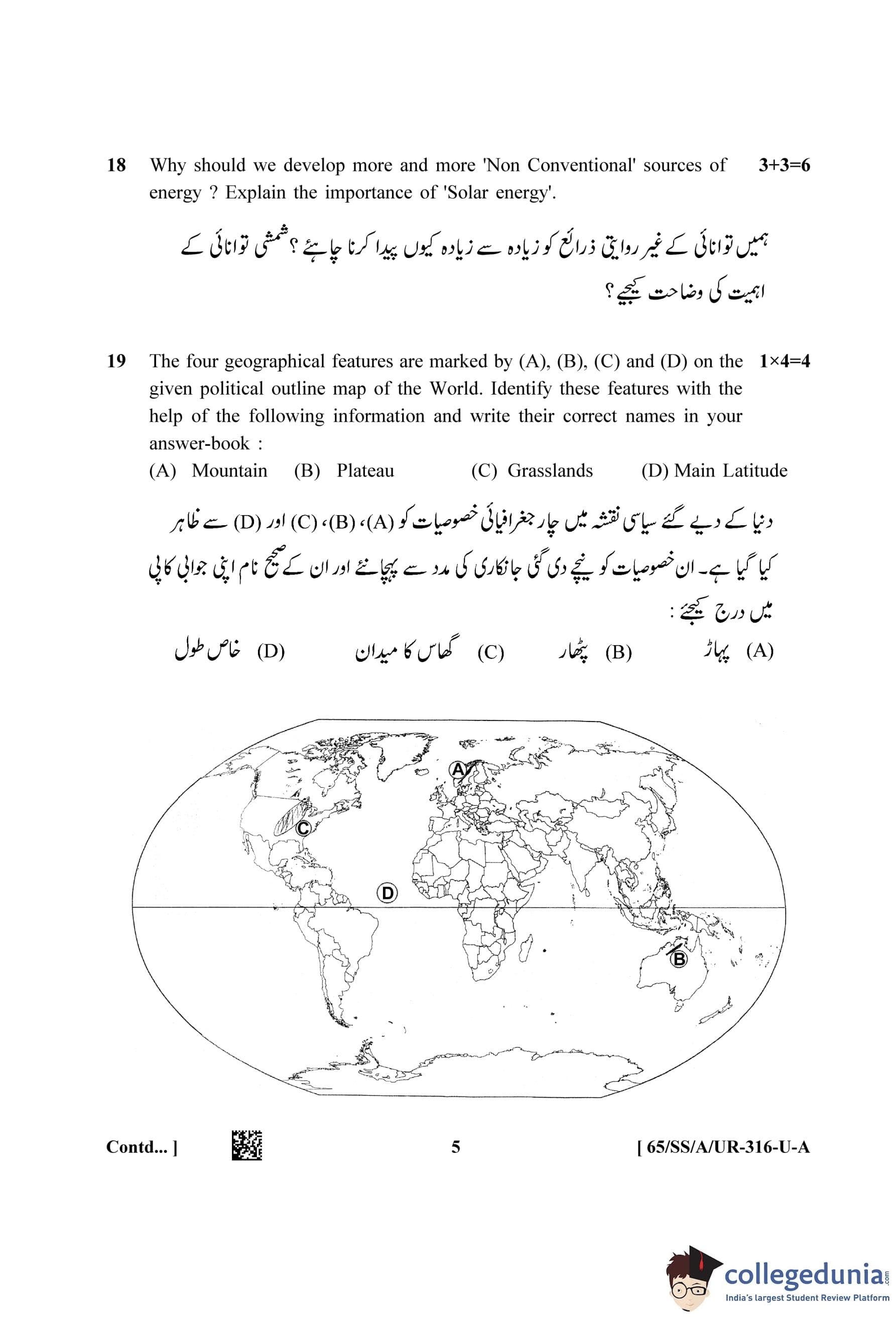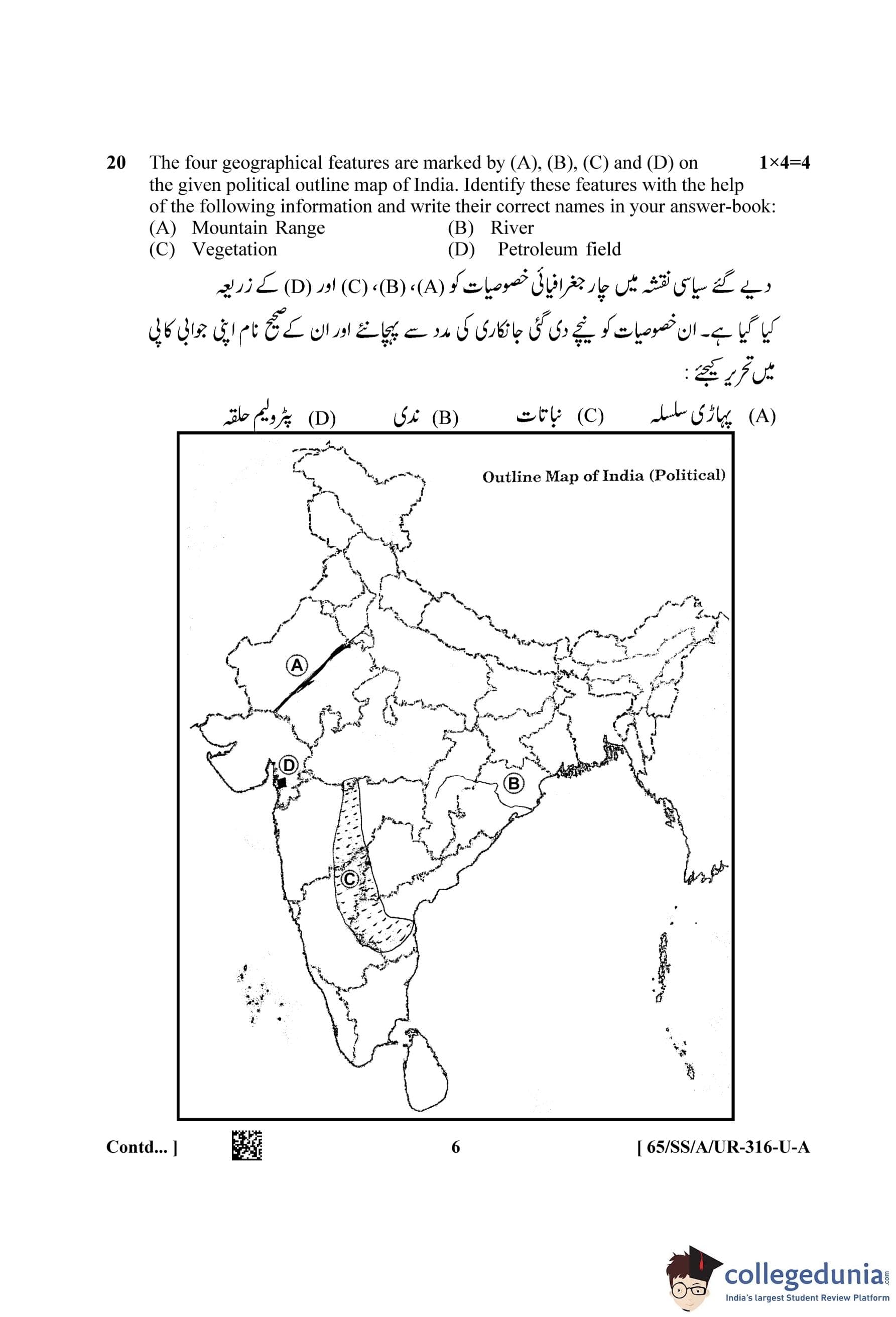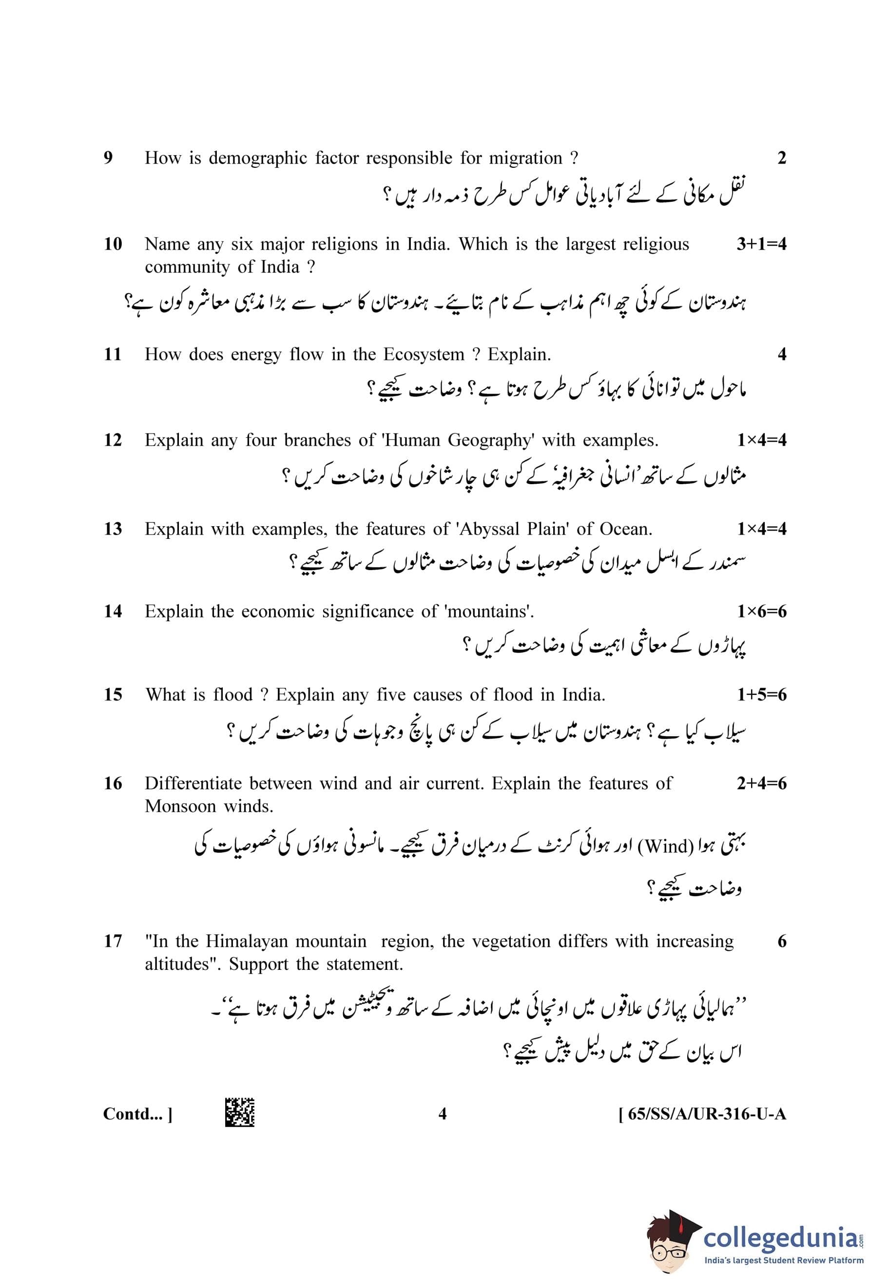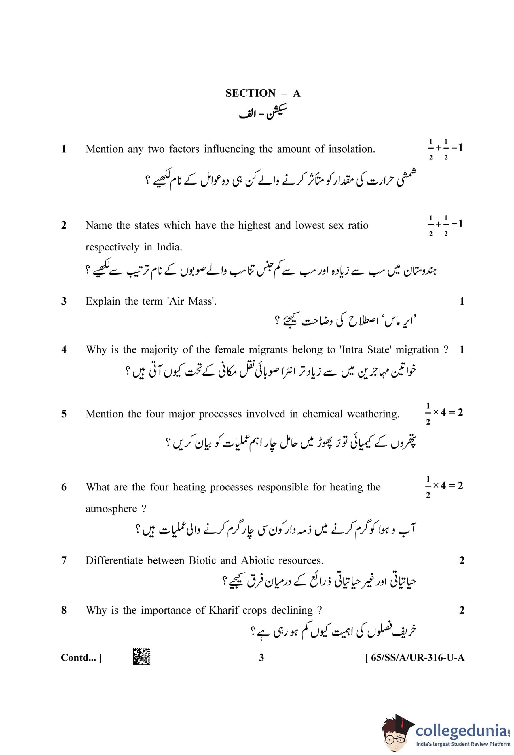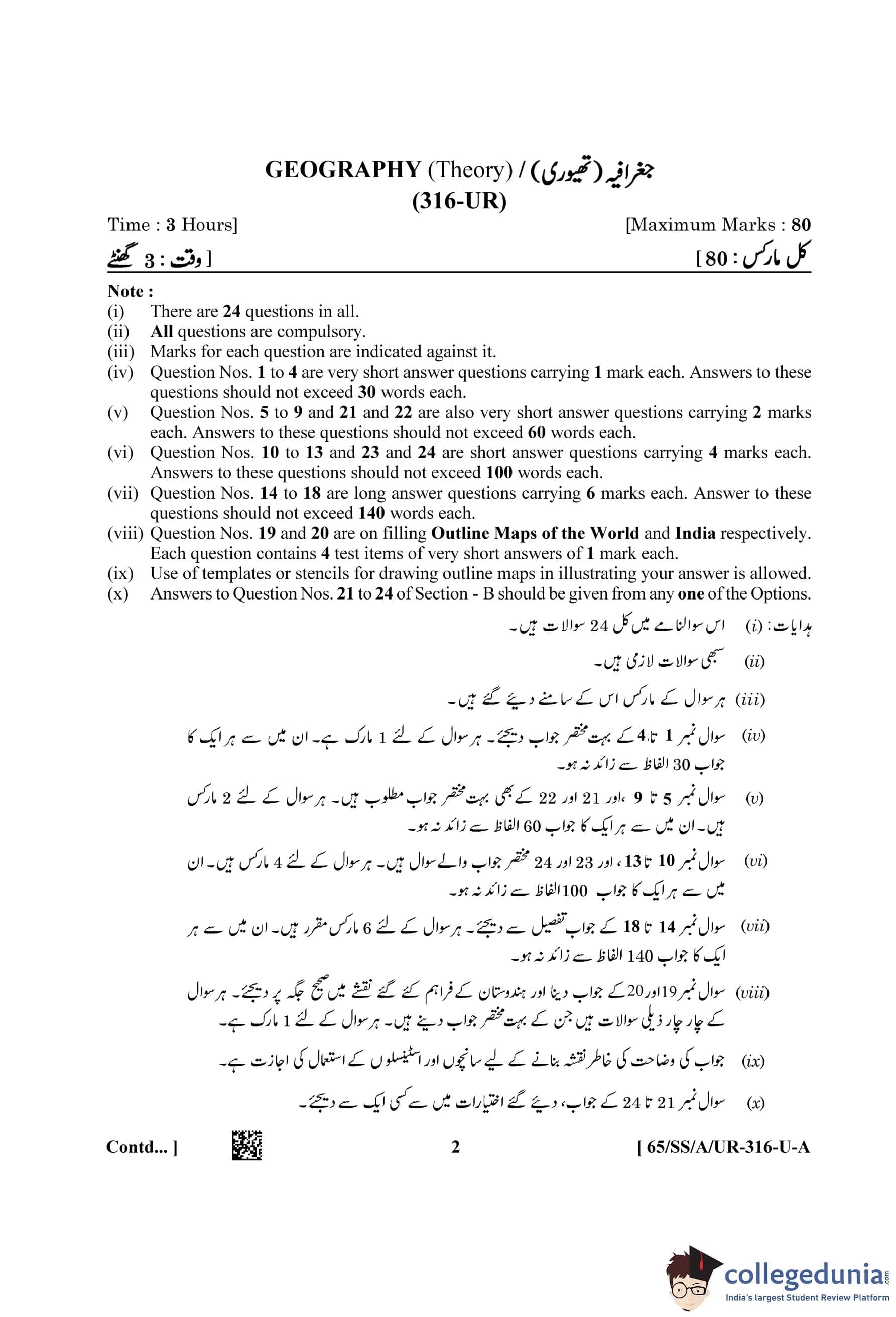 NIOS Class 12 Geography Urdu (Set A) Question Paper 2023 with Answer Key