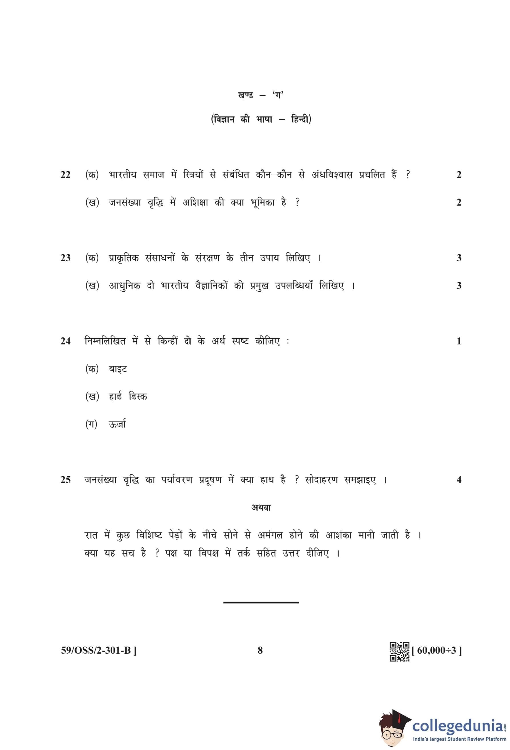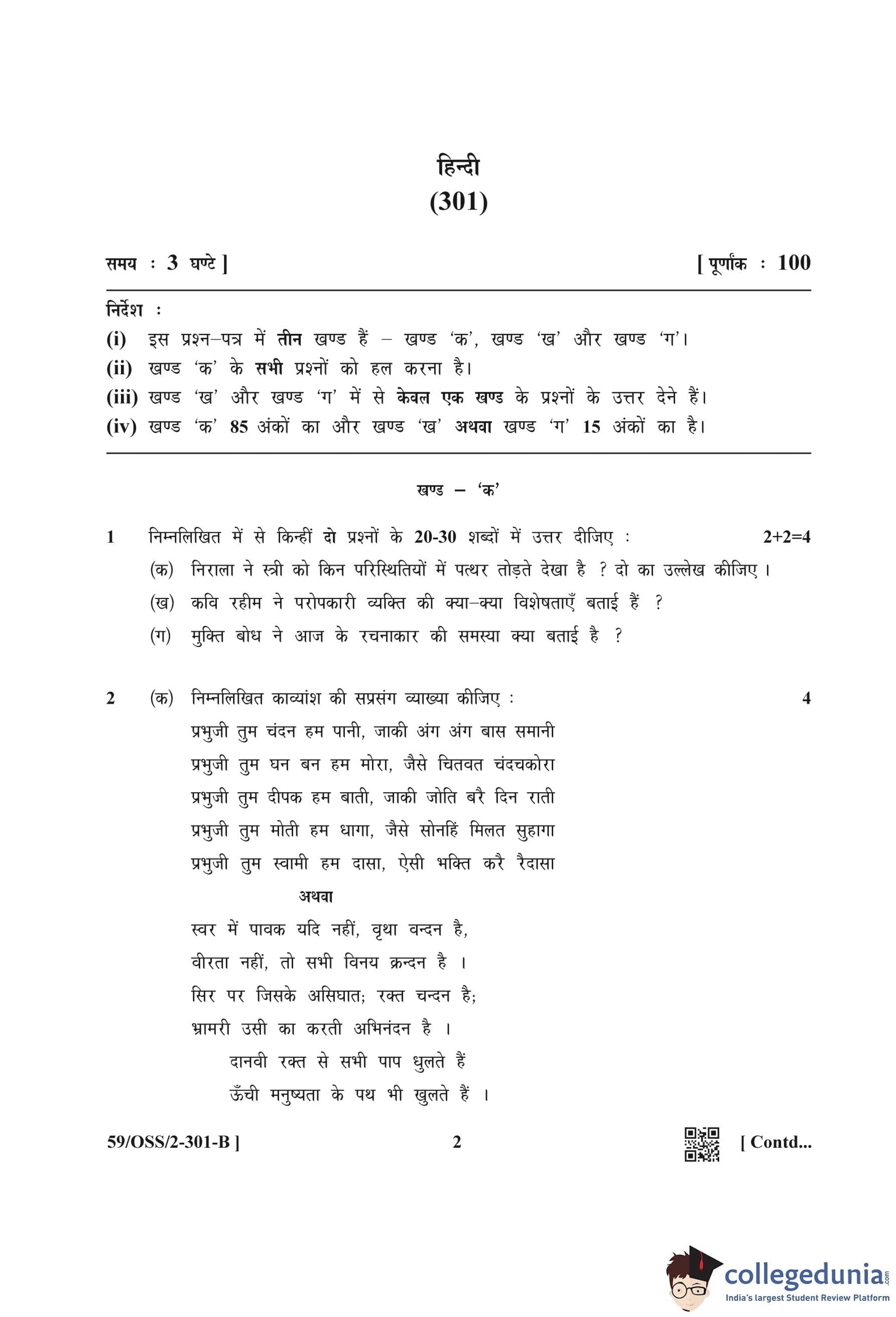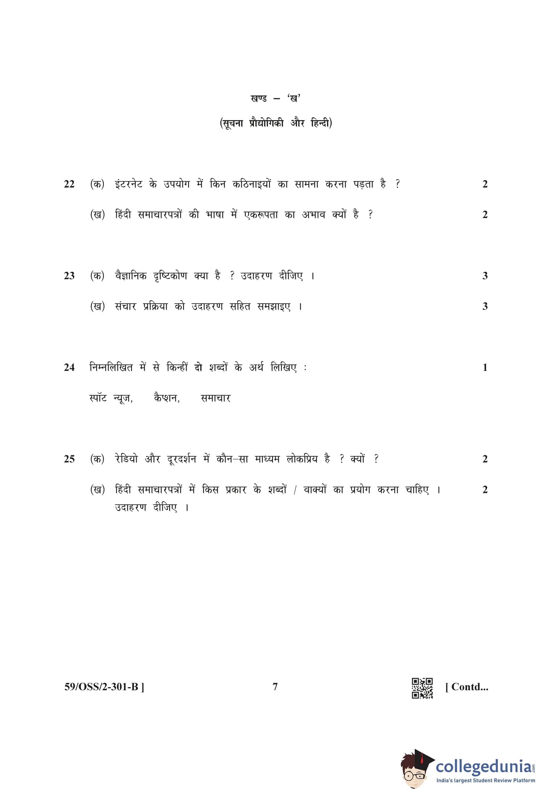 NIOS Class 12 Hindi (Set B) Compartment Question Paper 2019 with Answer Key