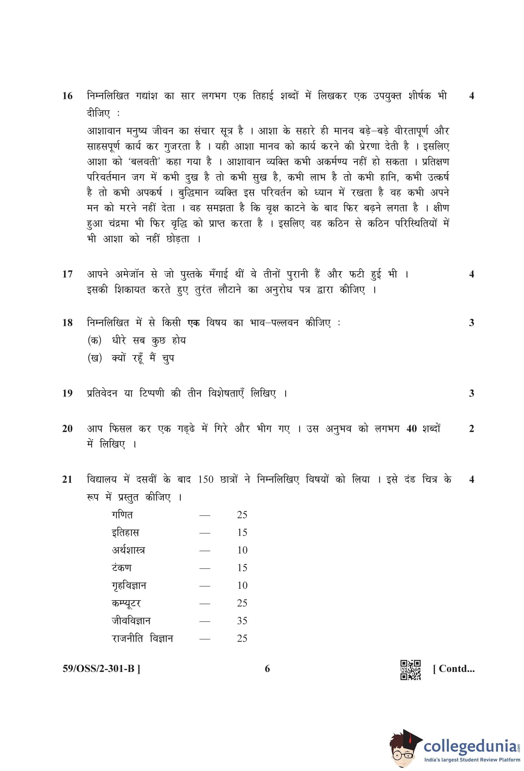 NIOS Class 12 Hindi Compartment Question Paper 2019 with Answer Key pdf (Set B) is available for download here. The exam was conducted by National Institute of Open Schooling on October 11, 2019 in the Afternoon Session 2:30 PM to 5:30 PM. The question paper comprised a total of 25 questions divided among 3 sections.