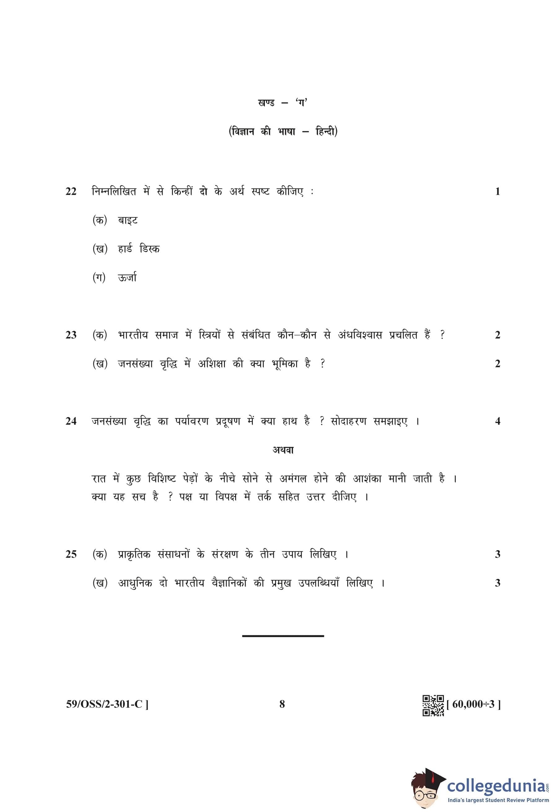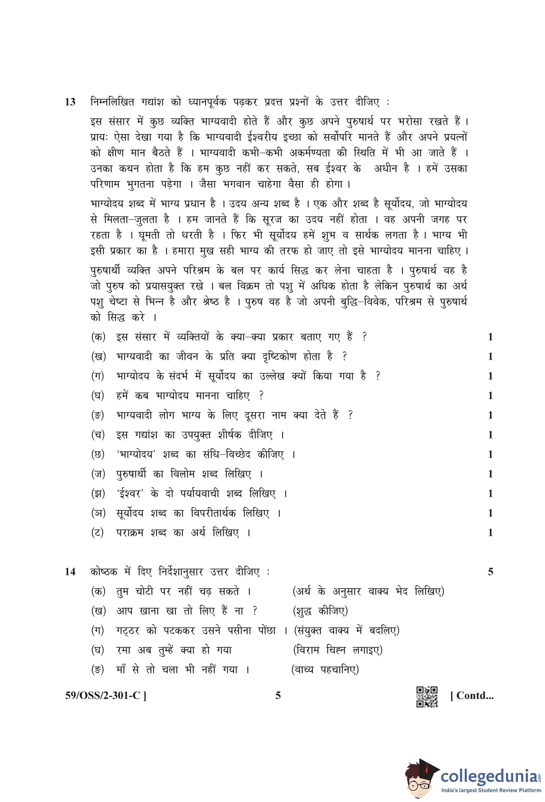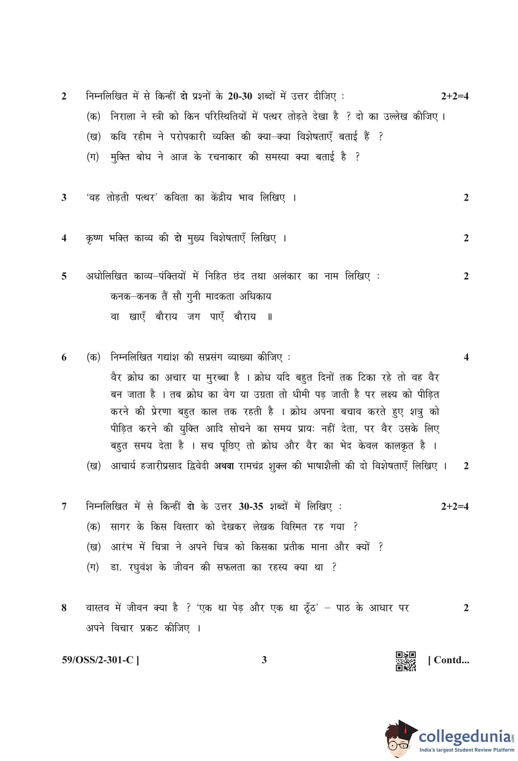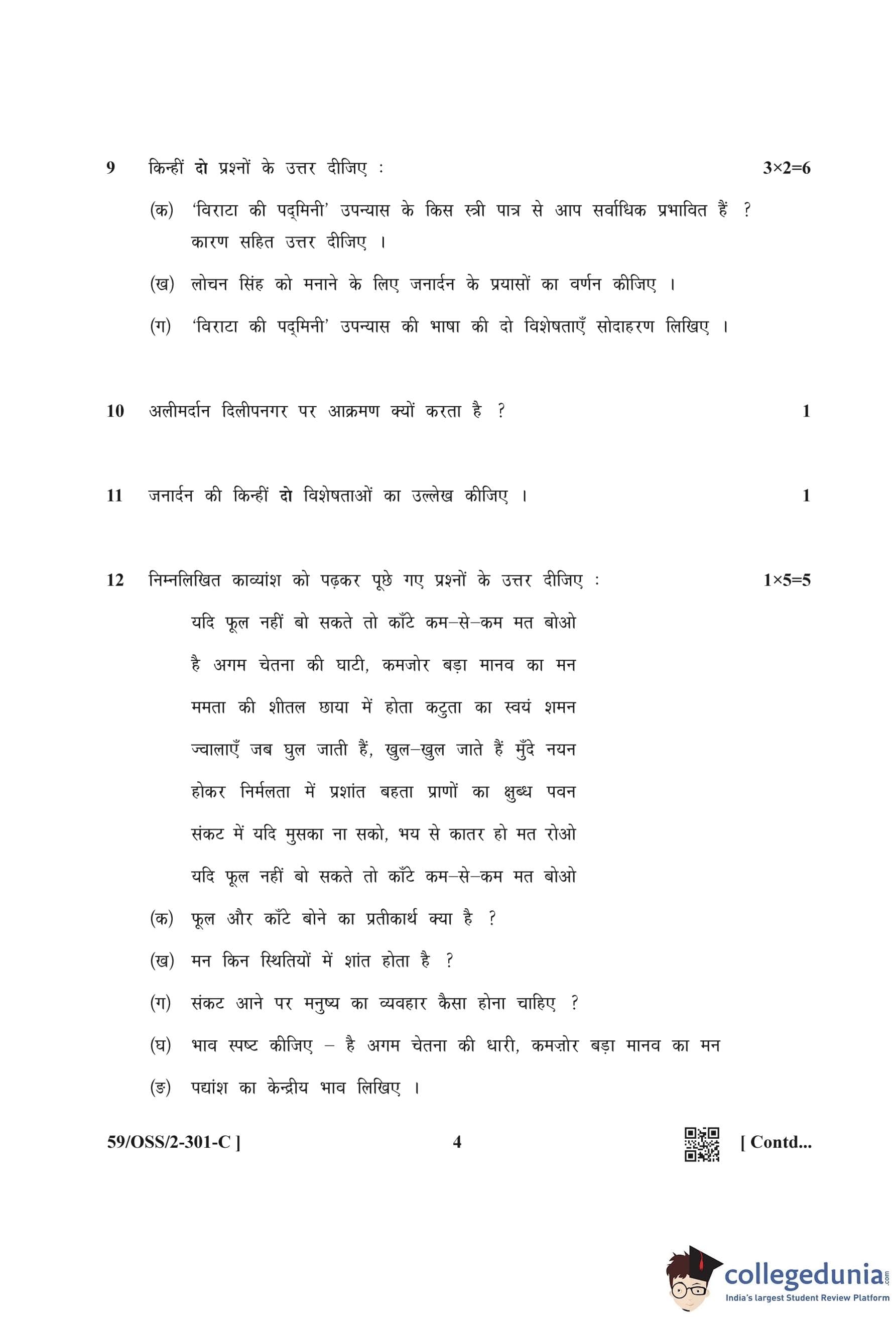 NIOS Class 12 Hindi (Set C) Compartment Question Paper 2019 with Answer Key