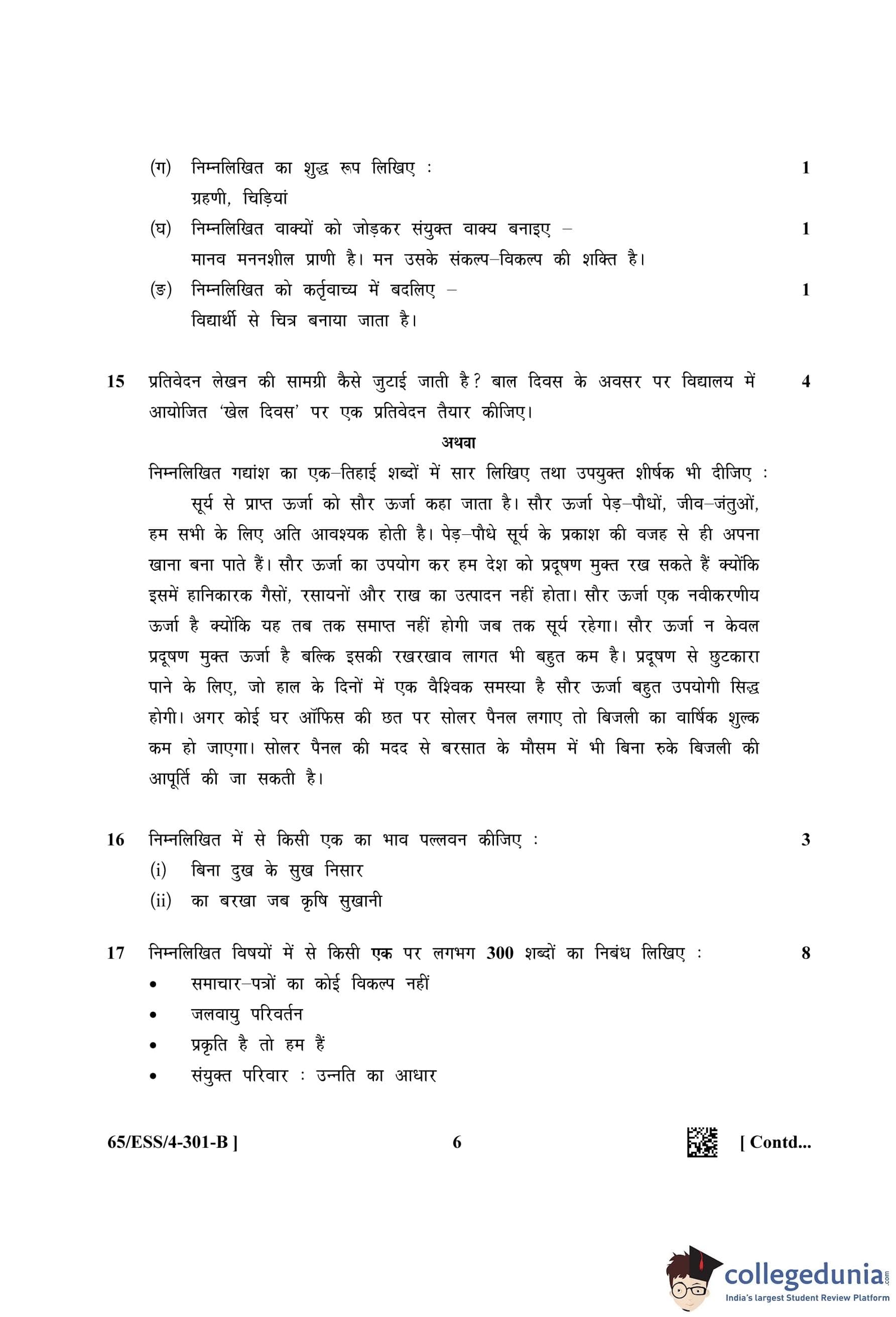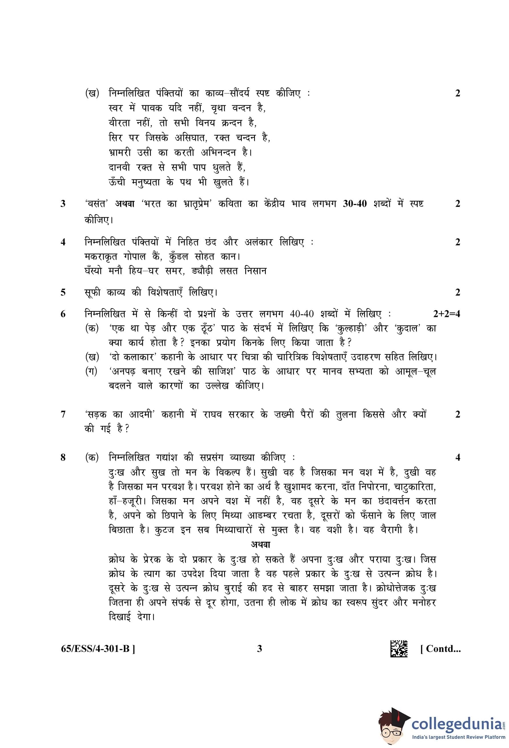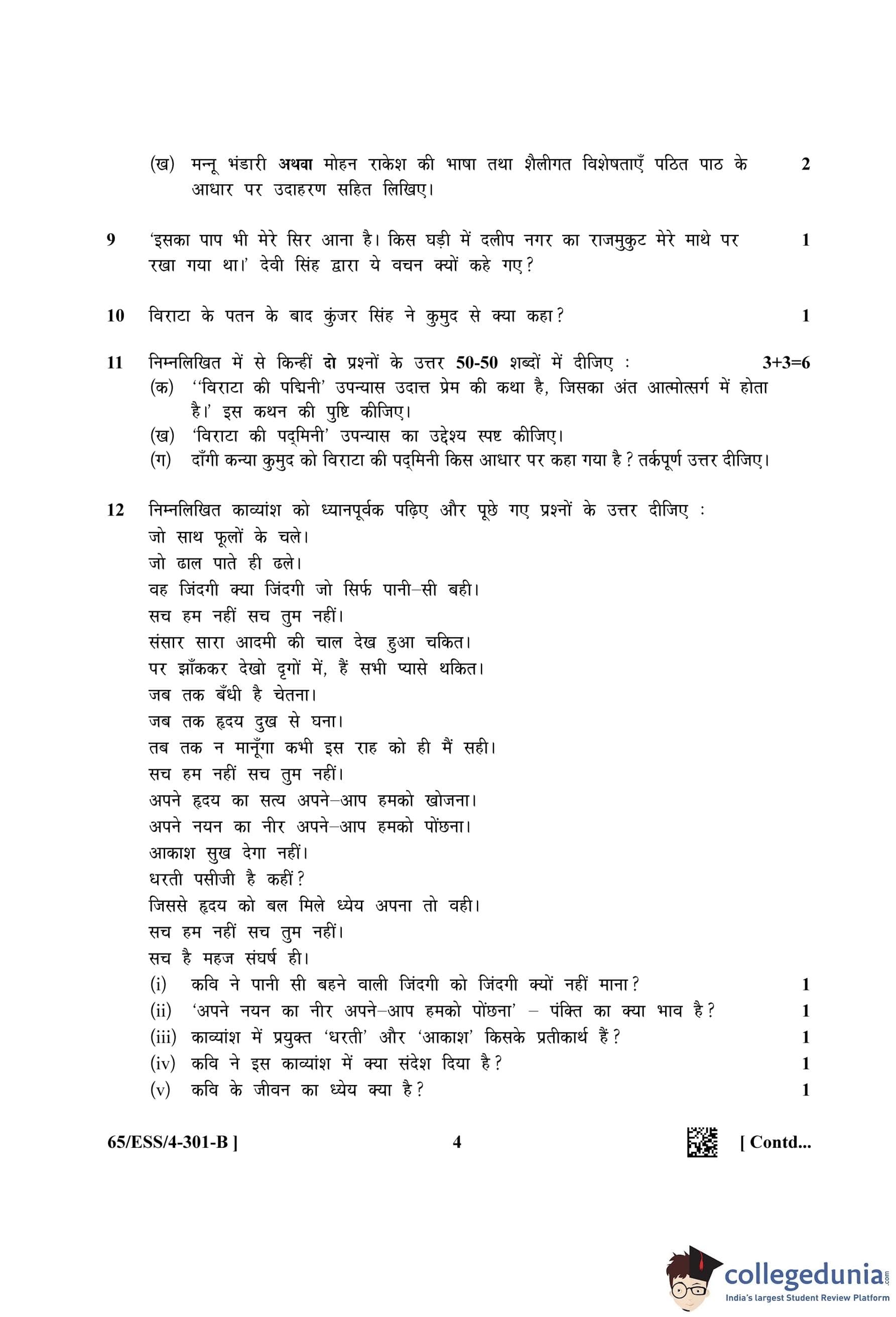 NIOS Class 12 Hindi Question Paper 2023 with Answer Key (Set B - ESS)
