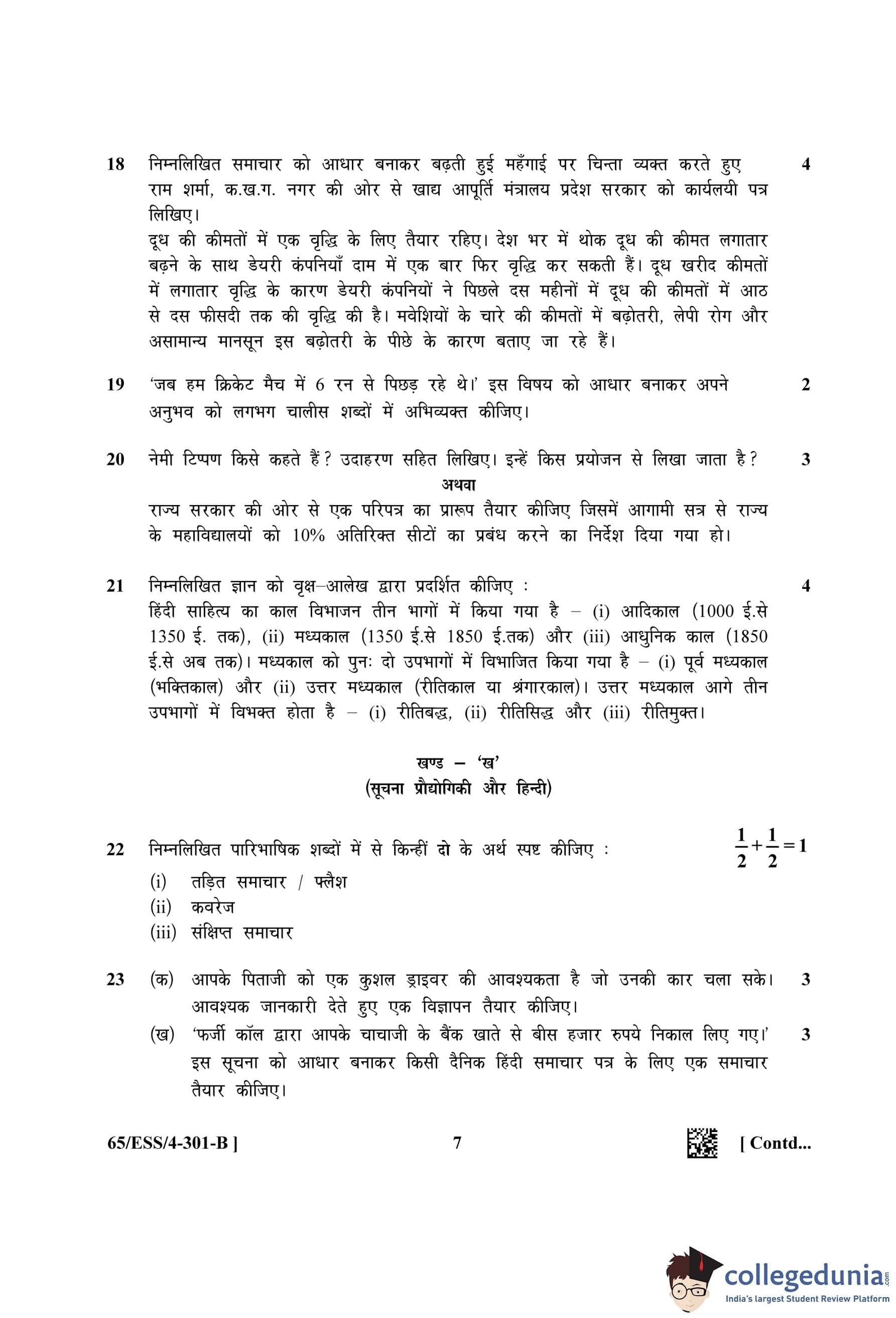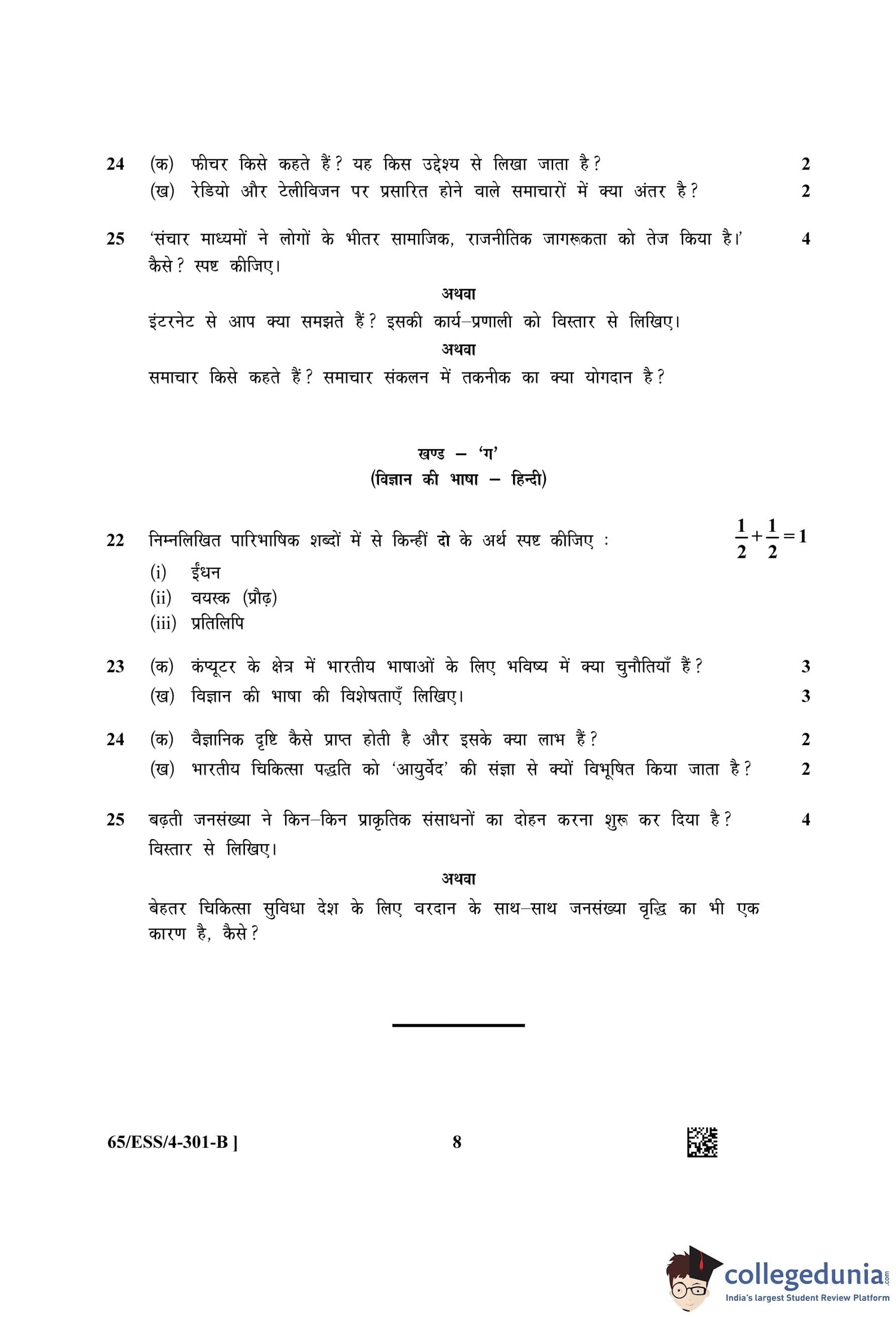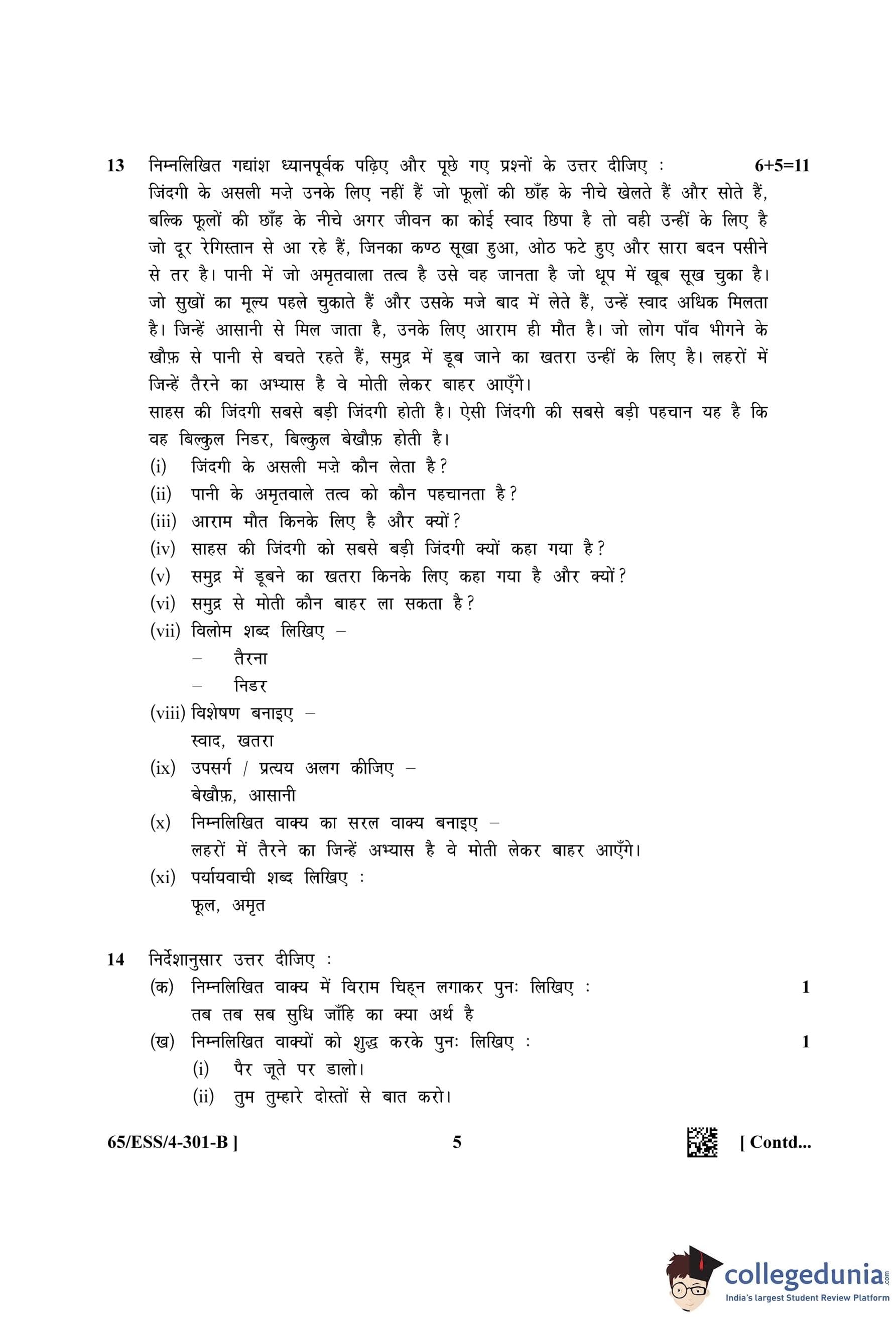 NIOS Class 12 Hindi Question Paper 2023 with Answer Key (Set B - ESS)