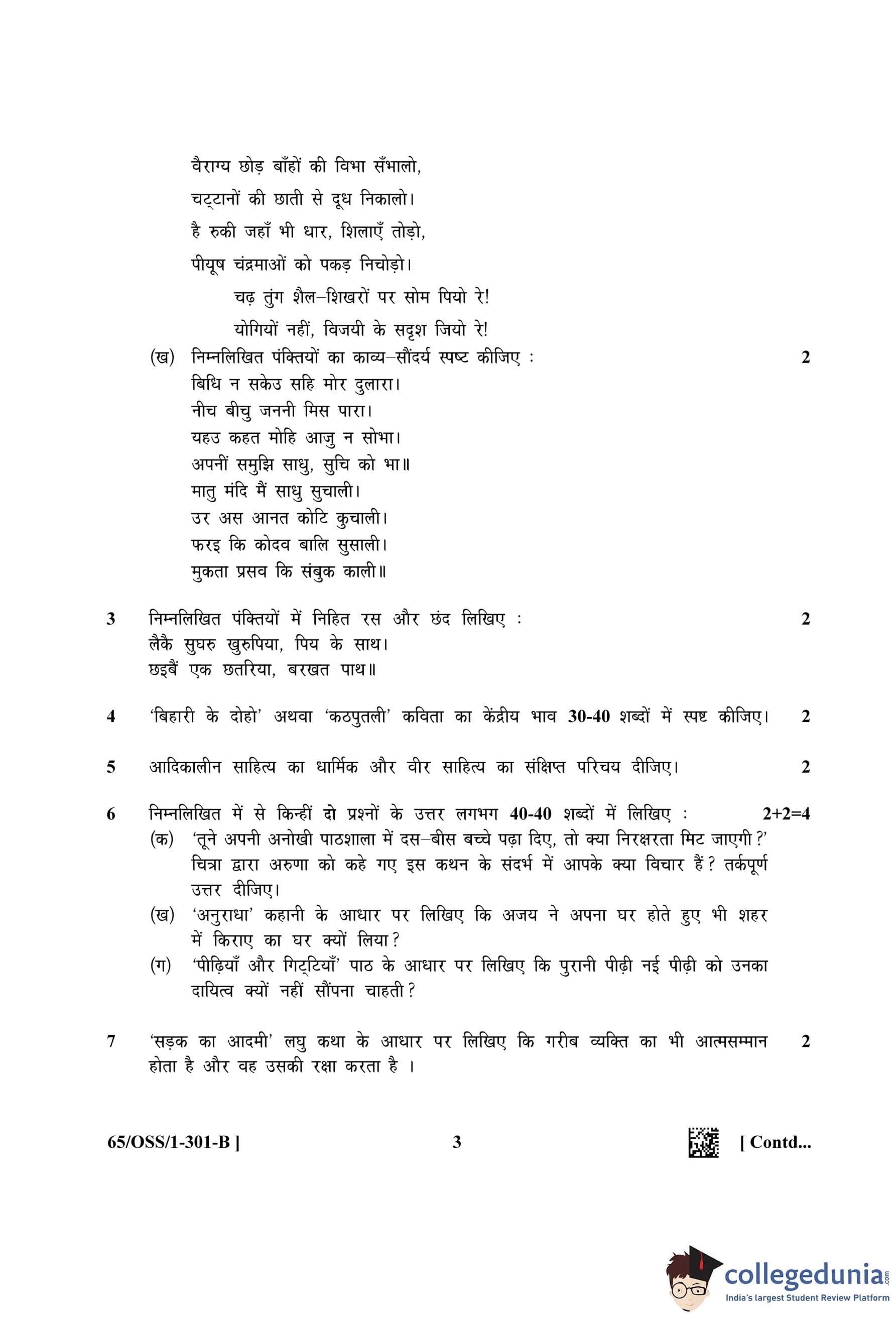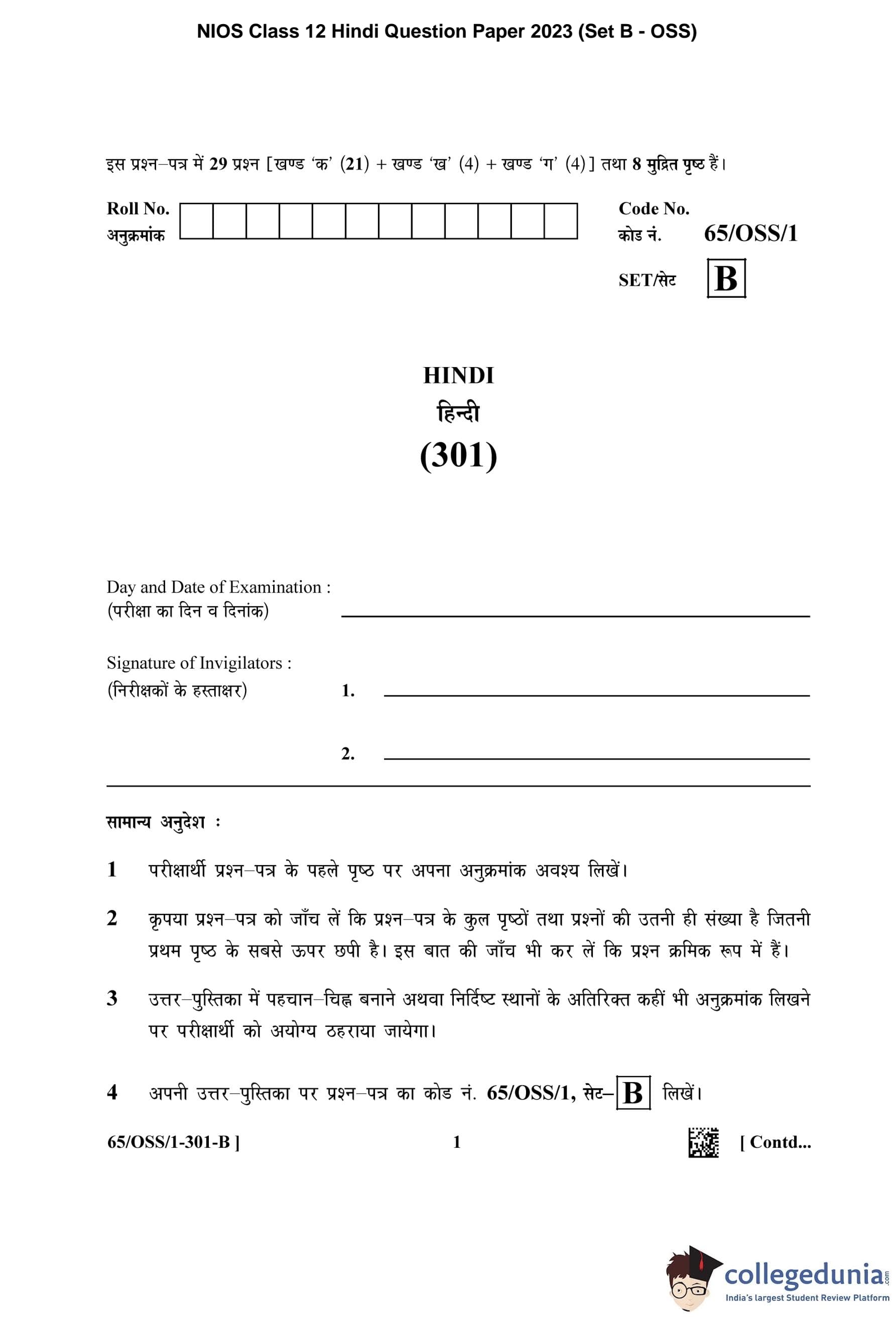 NIOS Class 12 Hindi Question Paper 2023 with Answer Key (Set B - OSS)