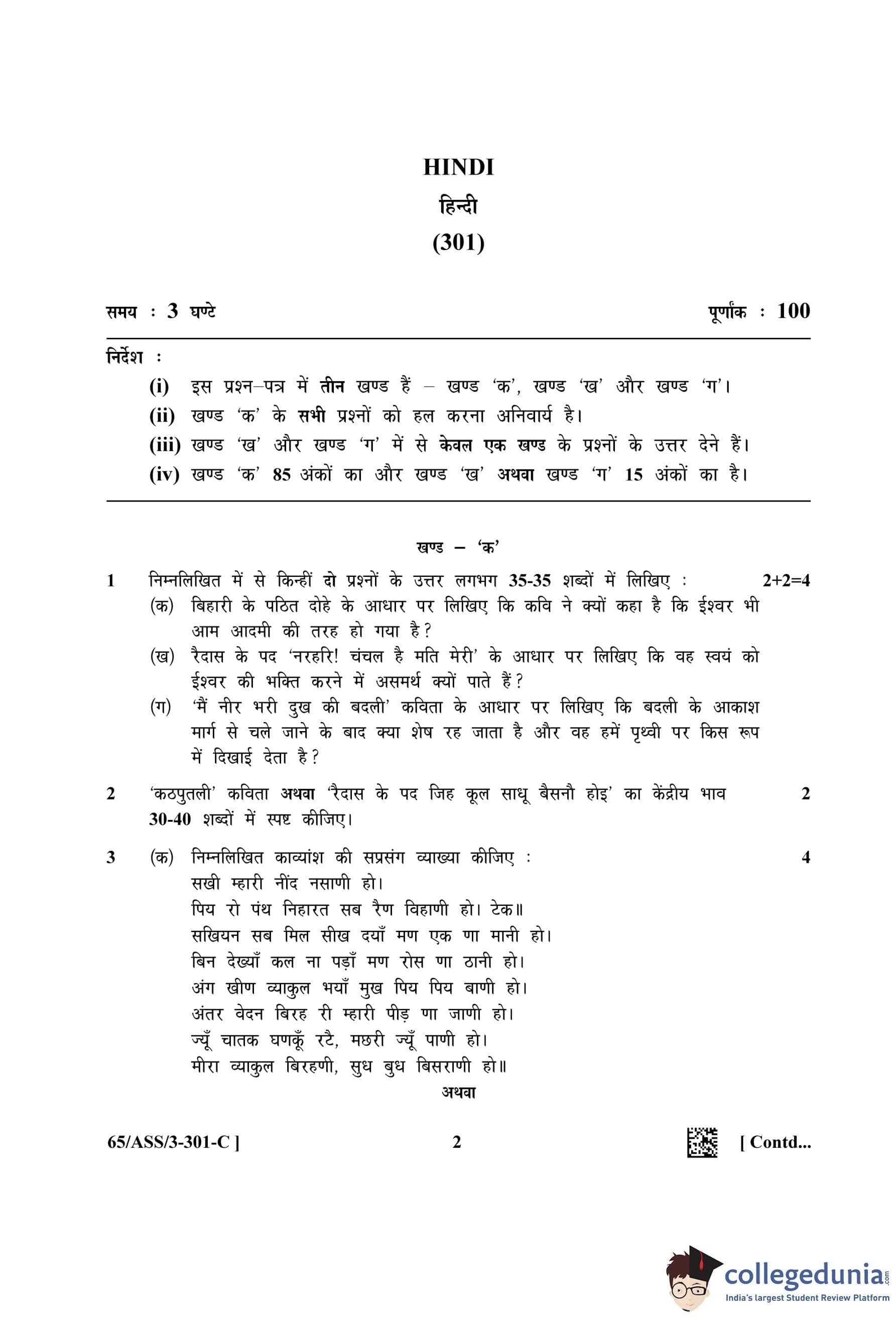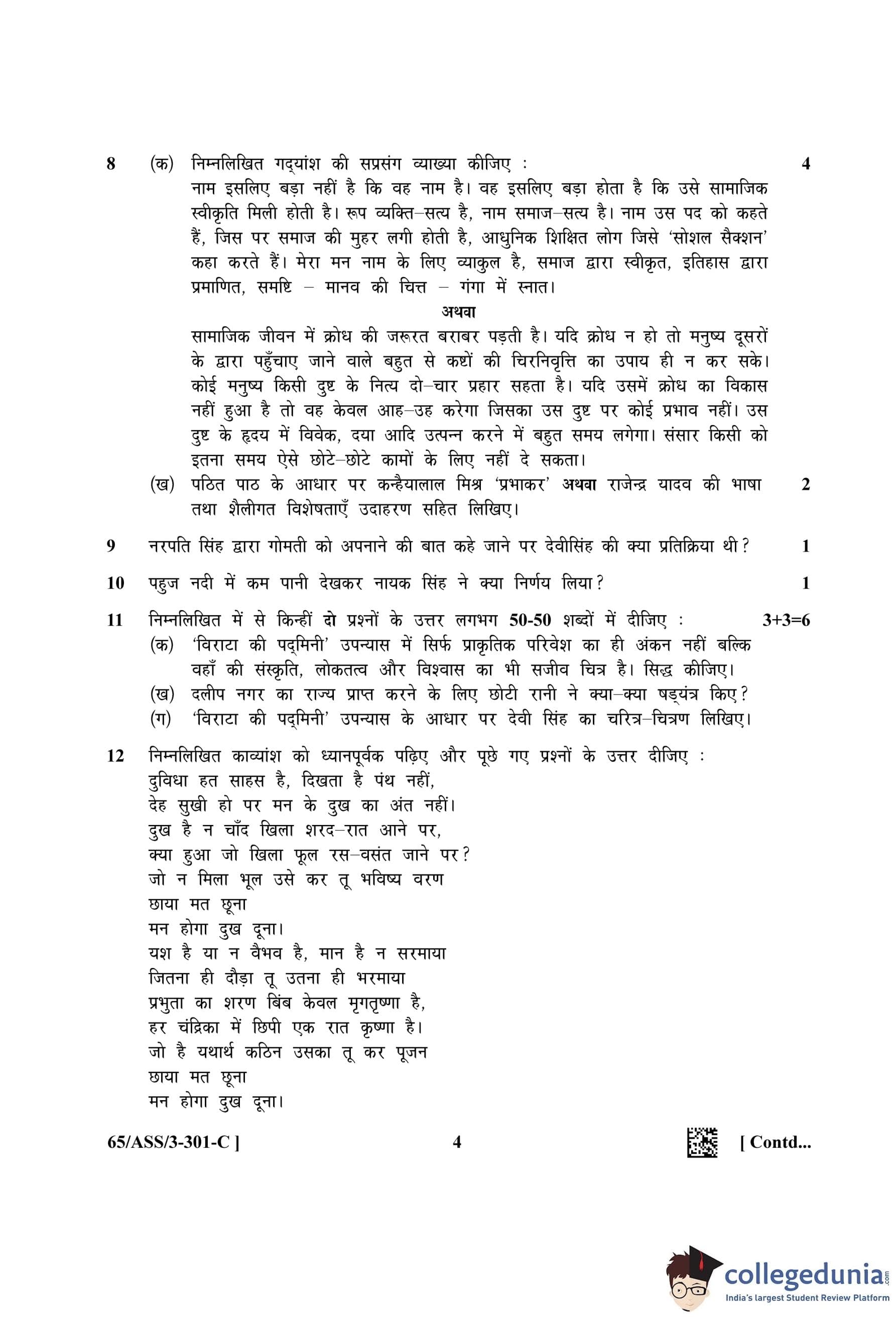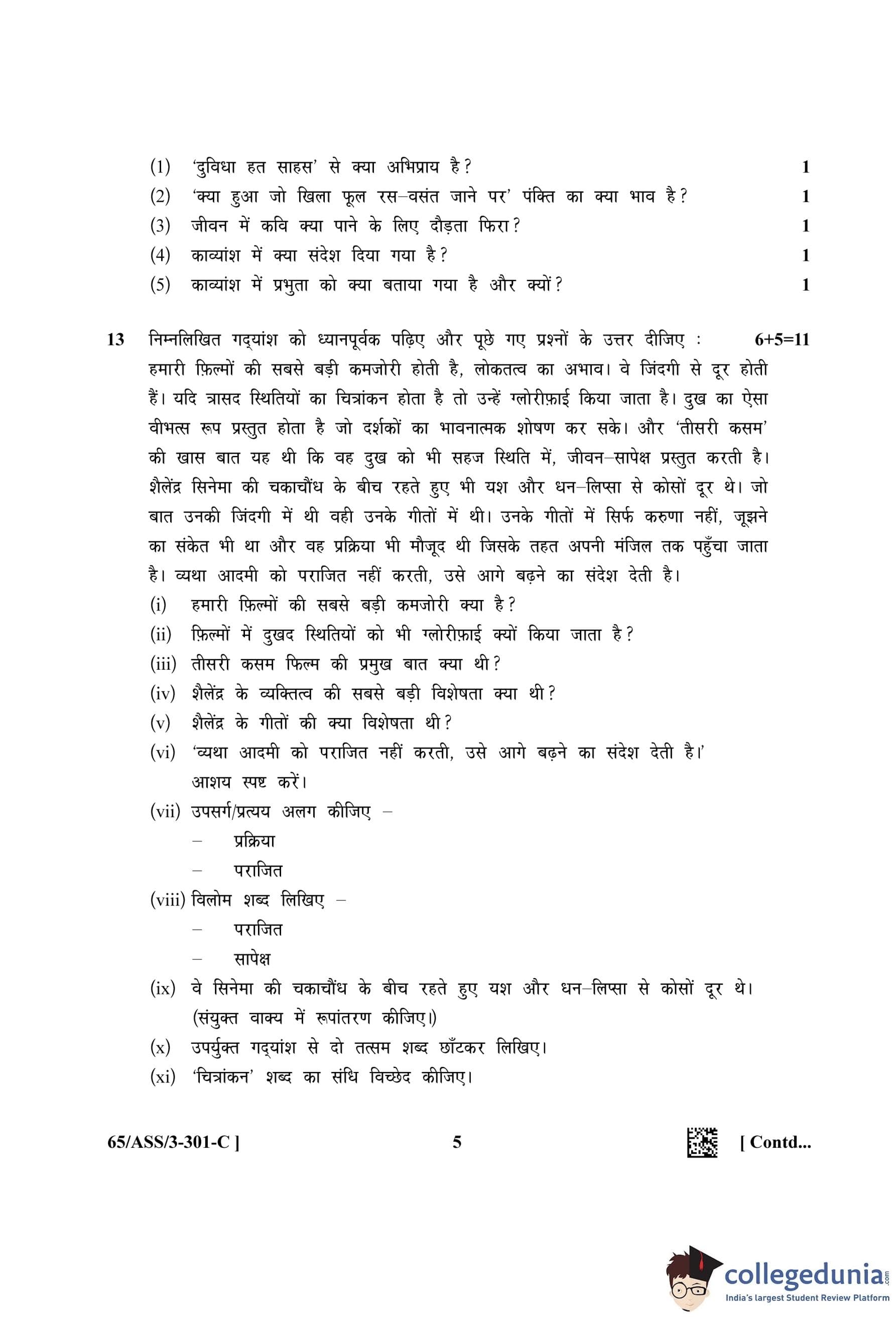NIOS Class 12 Hindi Question Paper 2023 with Answer Key (Set C - ASS)