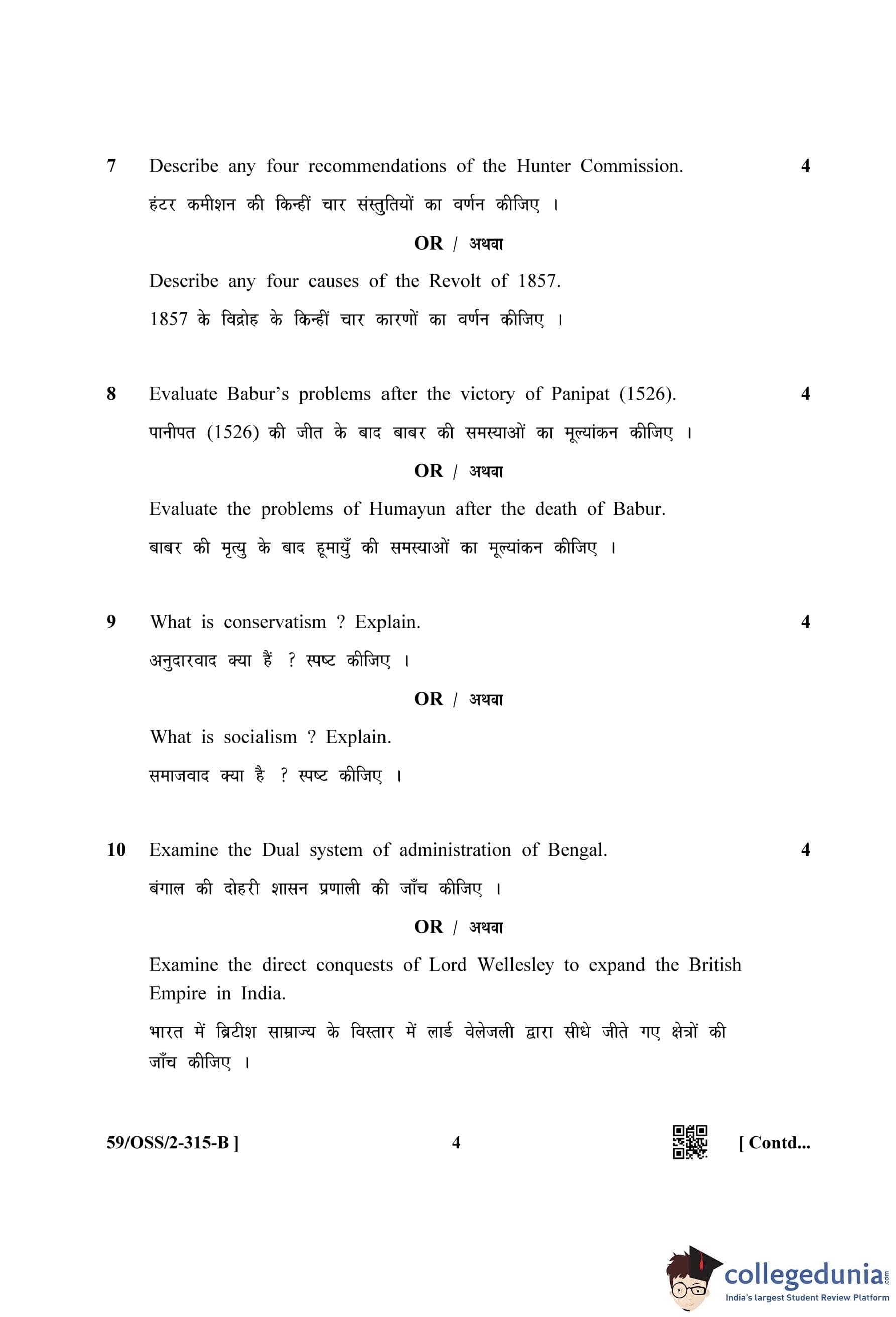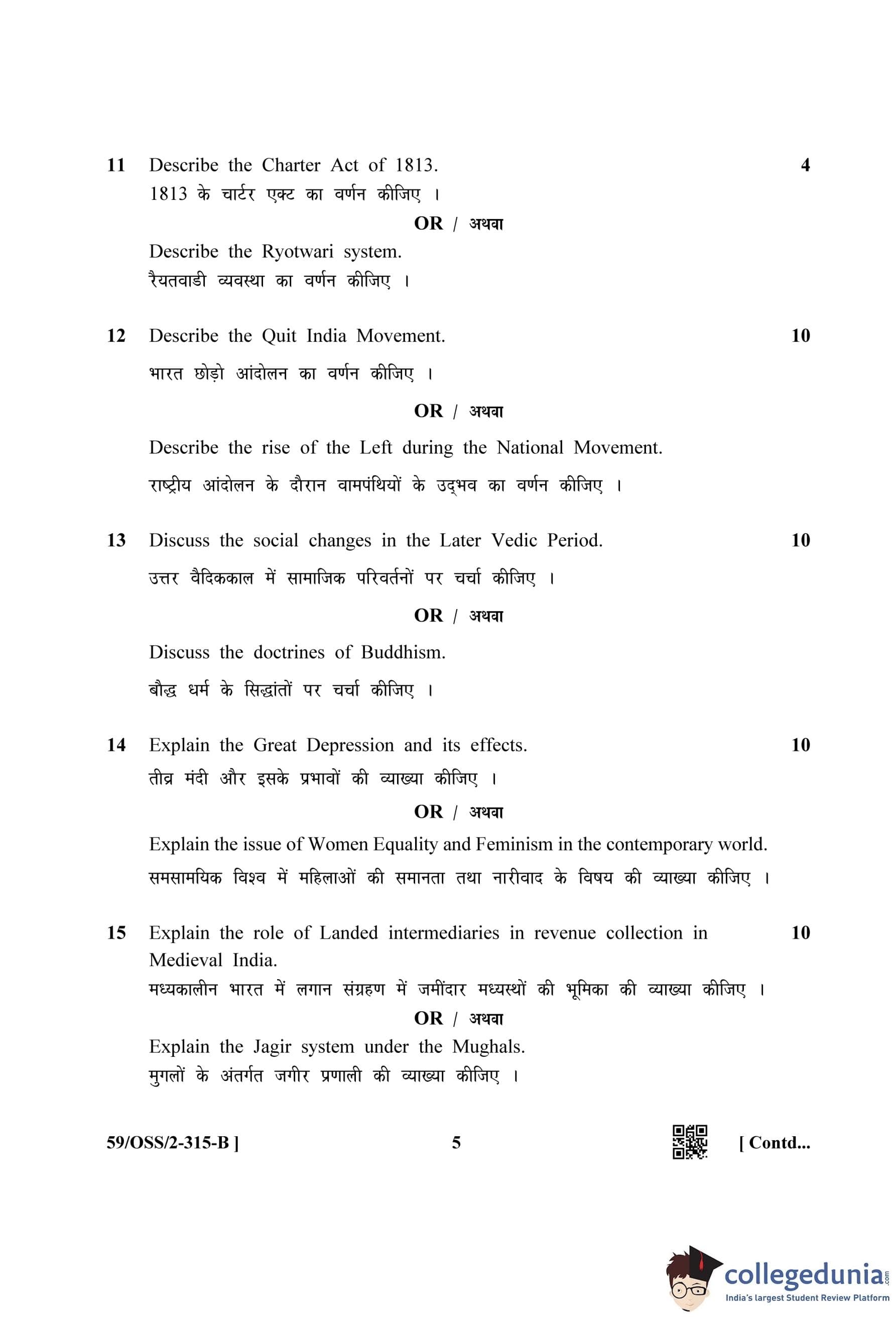NIOS Class 12 History (Set B) Compartment Question Paper 2019 with Answer Key