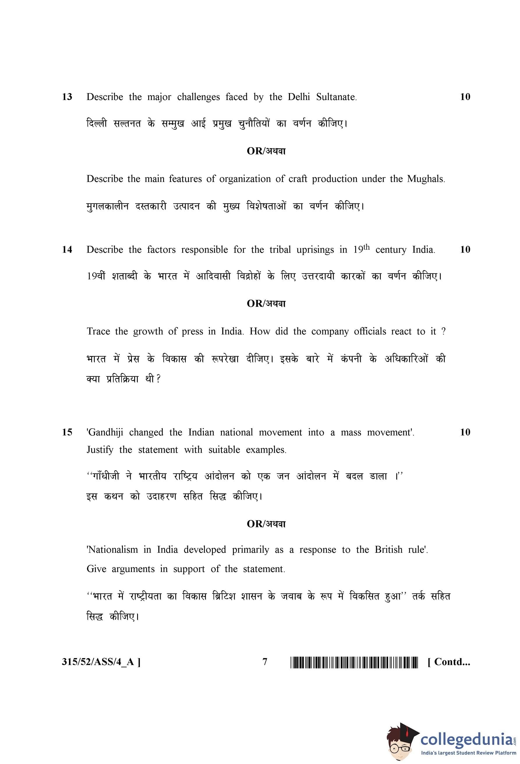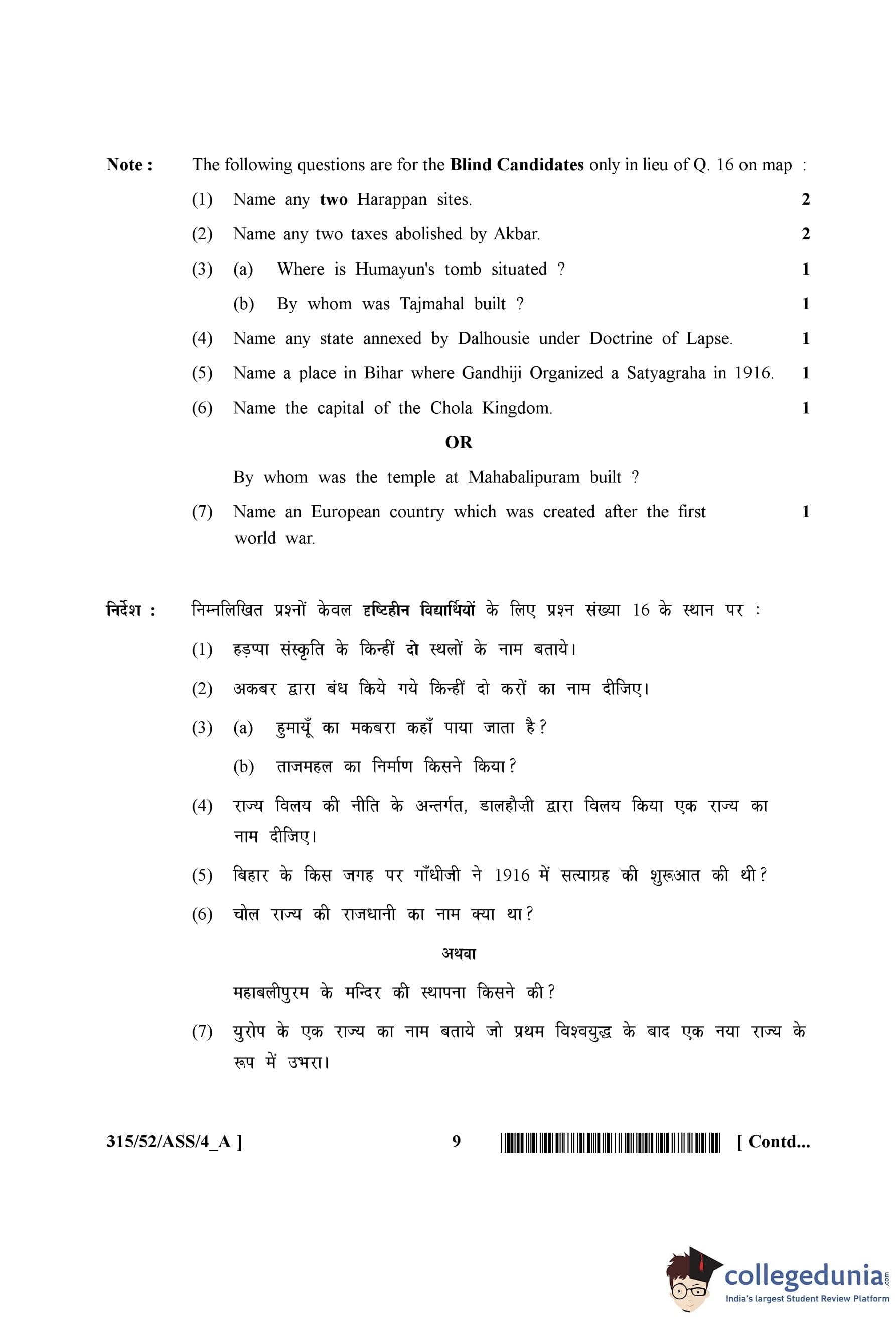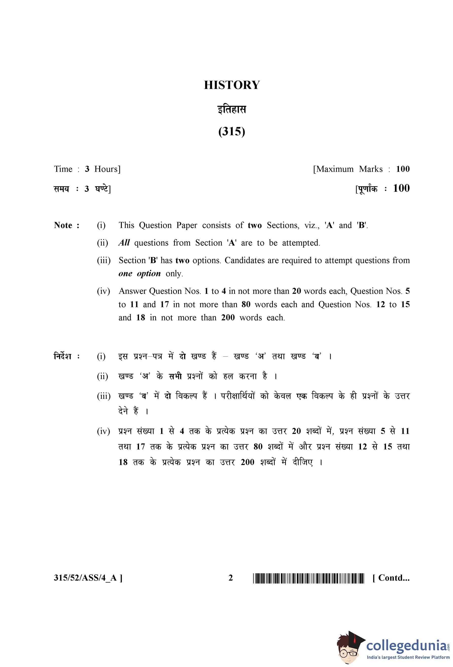 NIOS Class 12 History Question Paper 2016 with Answer Key