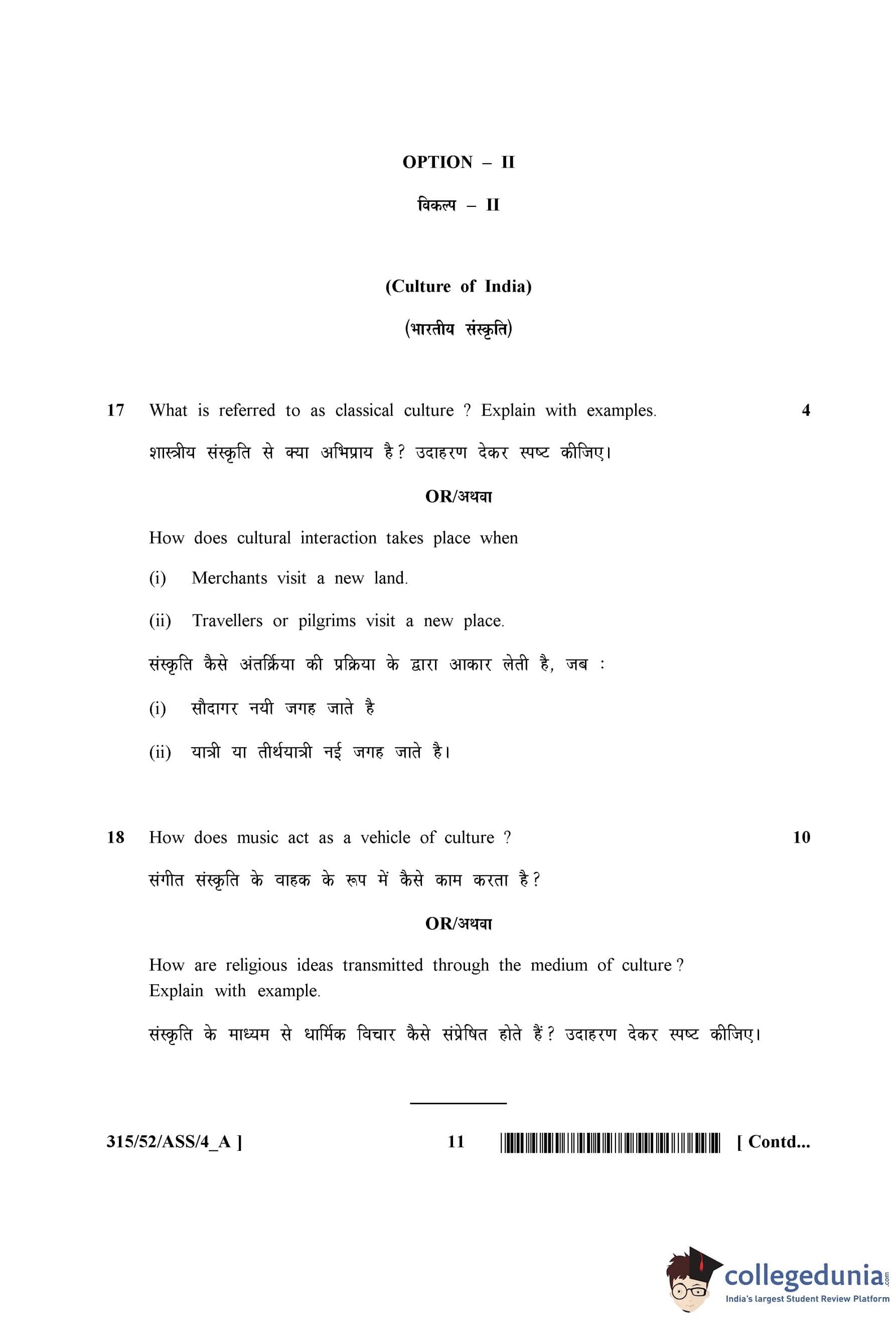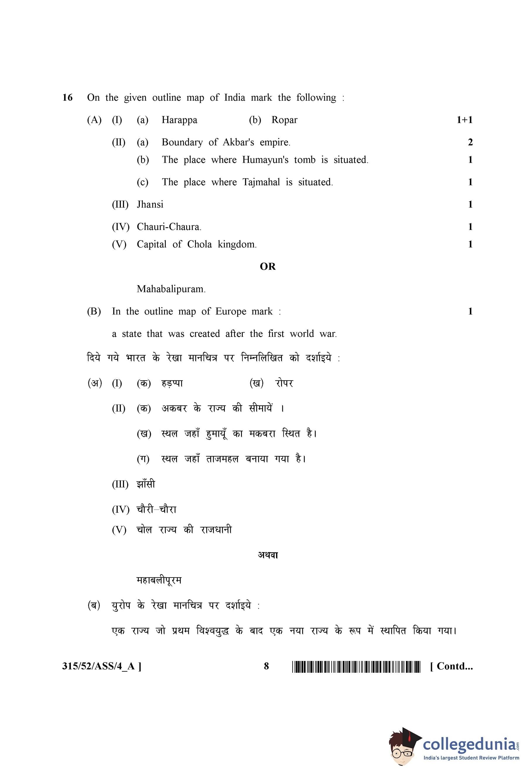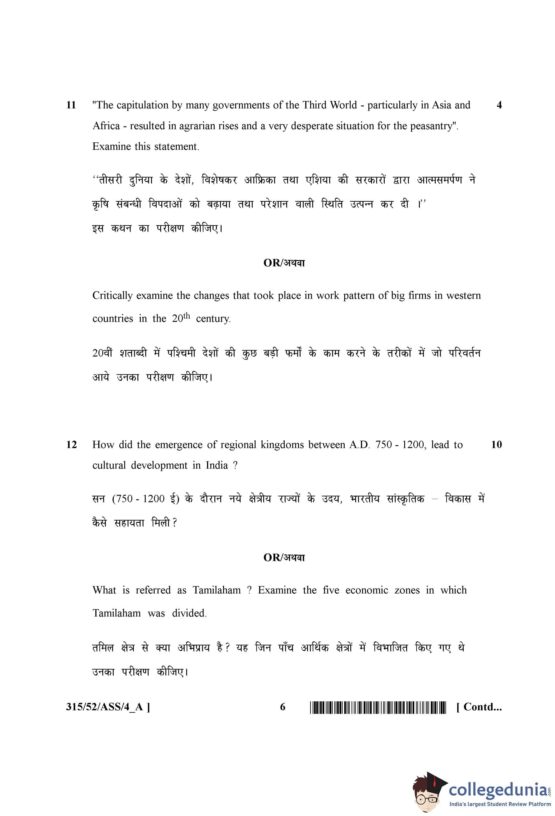 NIOS Class 12 History Question Paper 2016 with Answer Key