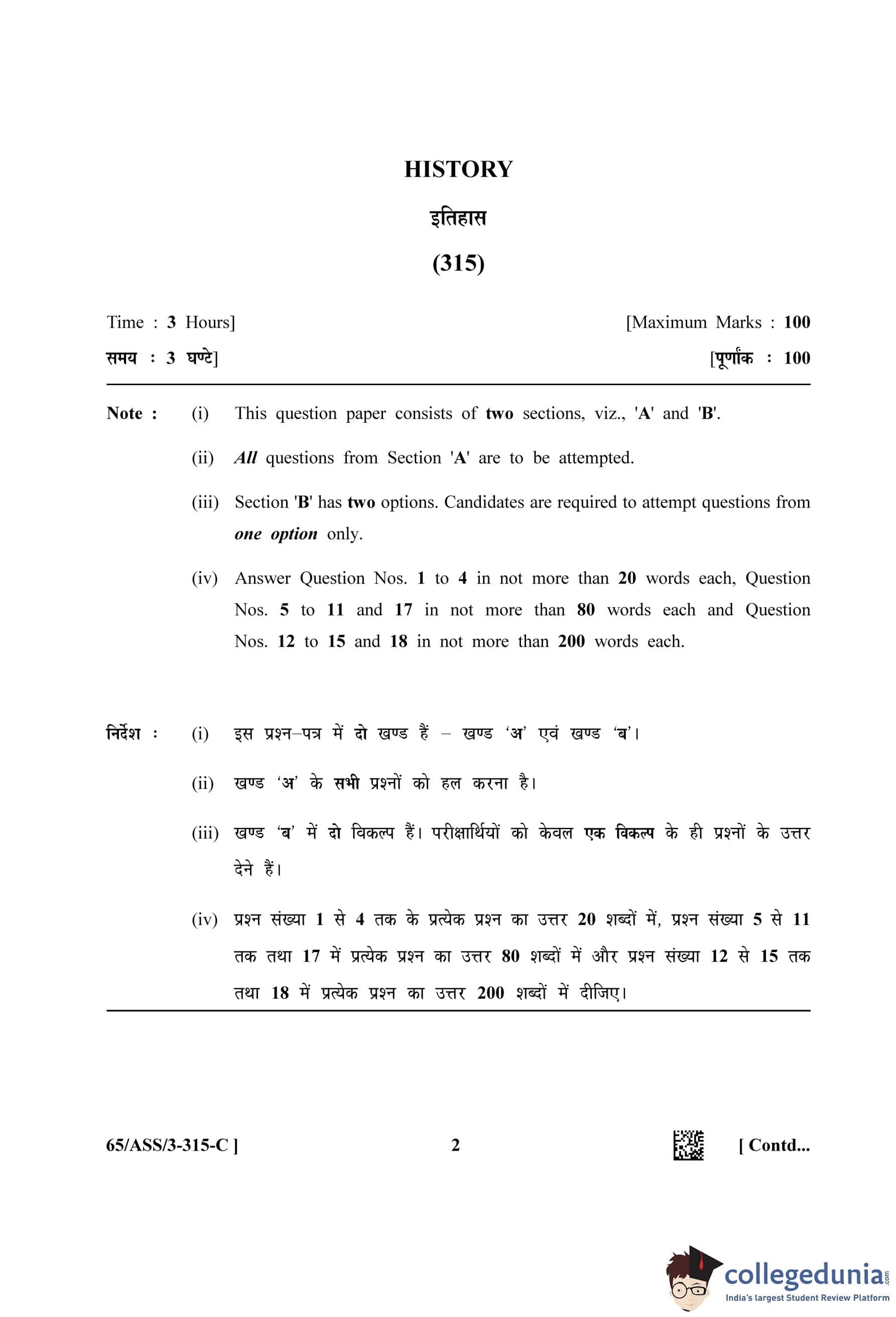 NIOS Class 12 History Question Paper 2023 with Answer Key pdf (Set C - ASS) is available for download here. The exam was conducted by National Institute of Open Schooling on April 28, 2023 in the Afternoon Session 2.30 PM to 5.30 PM. The question paper comprised a total of 20 questions divided among 2 sections.