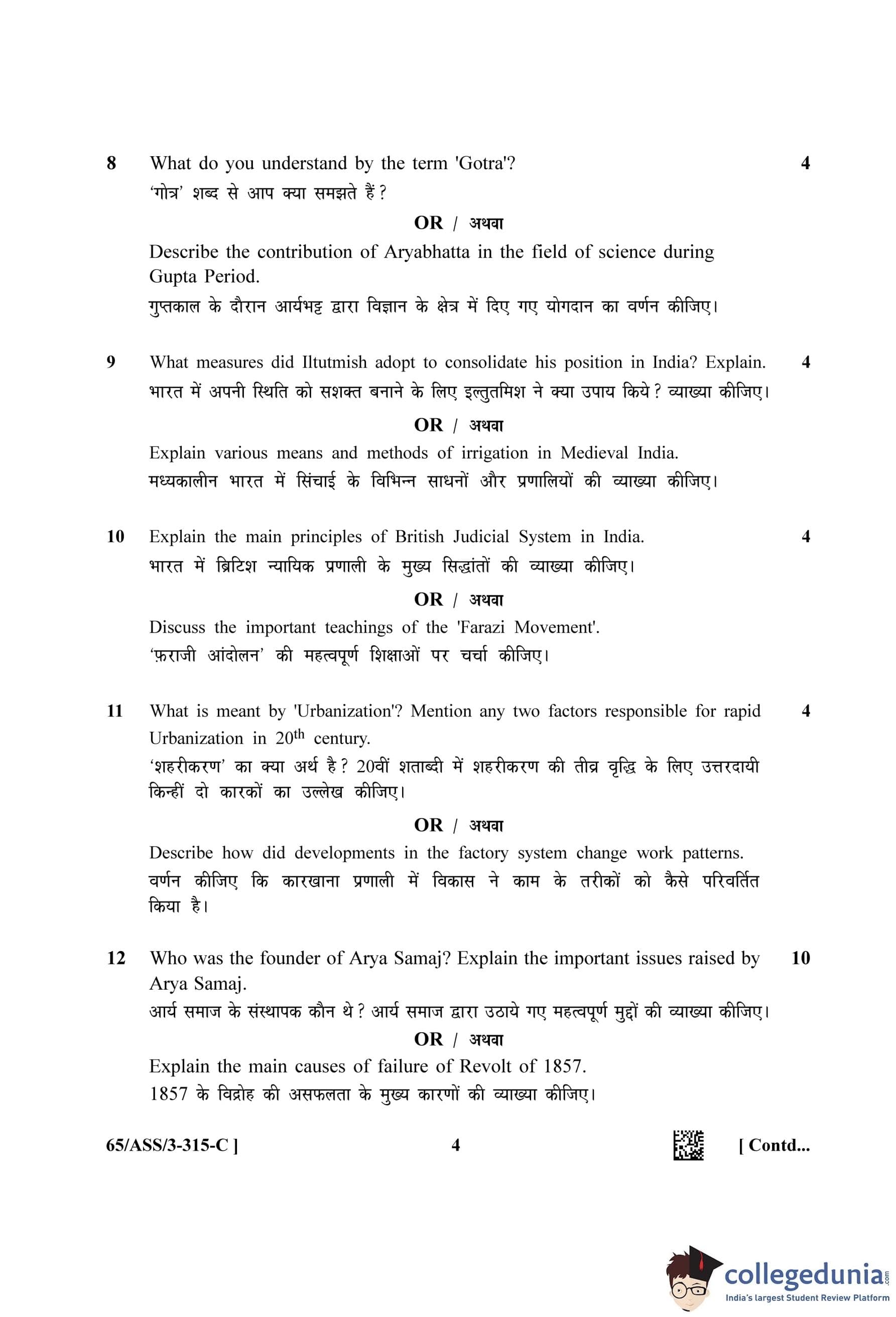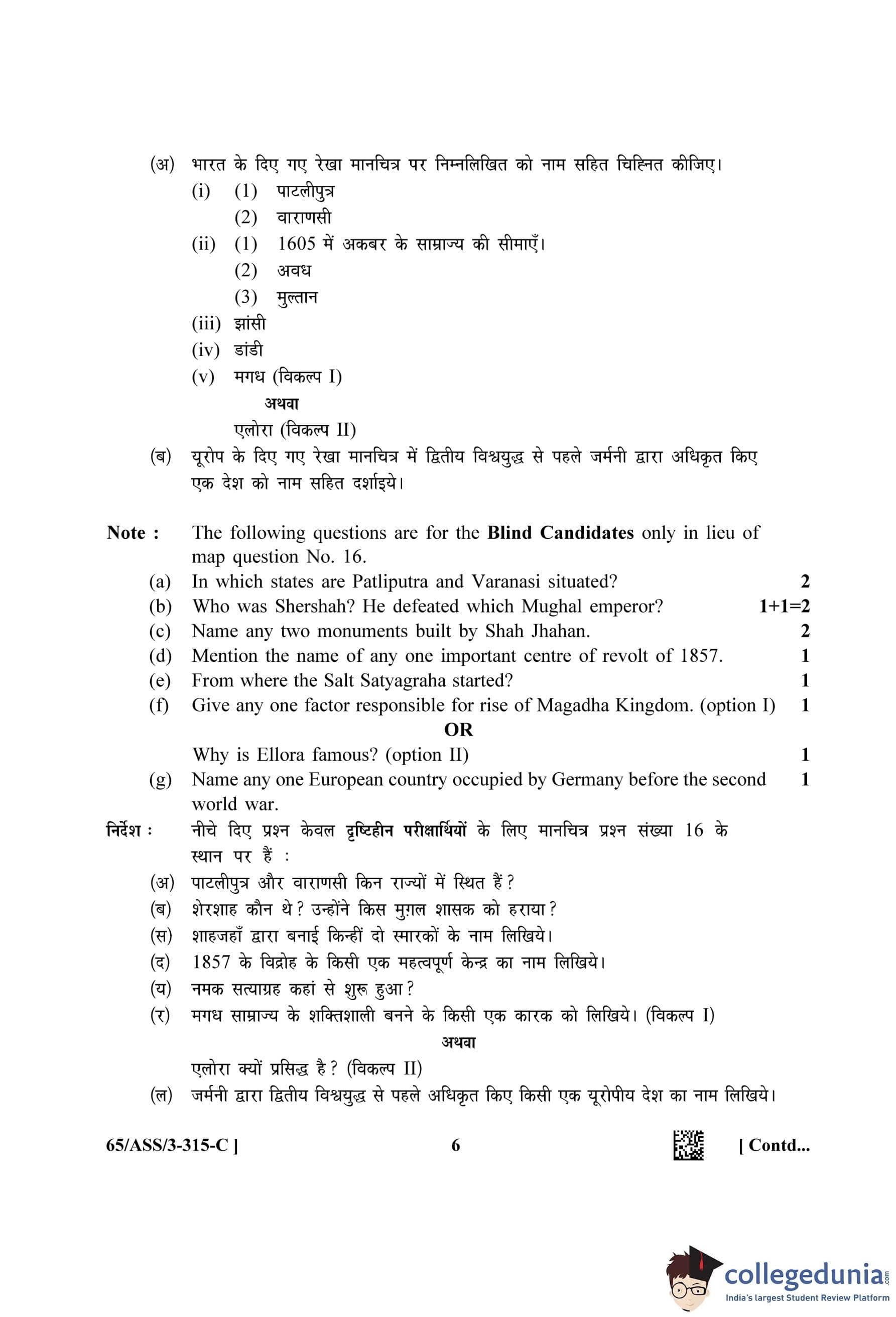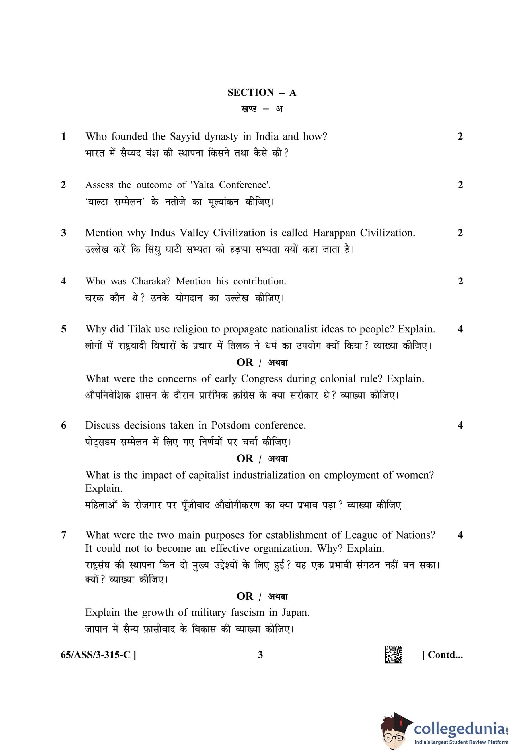 NIOS Class 12 History (Set C - ASS) Question Paper 2023 with Answer Key