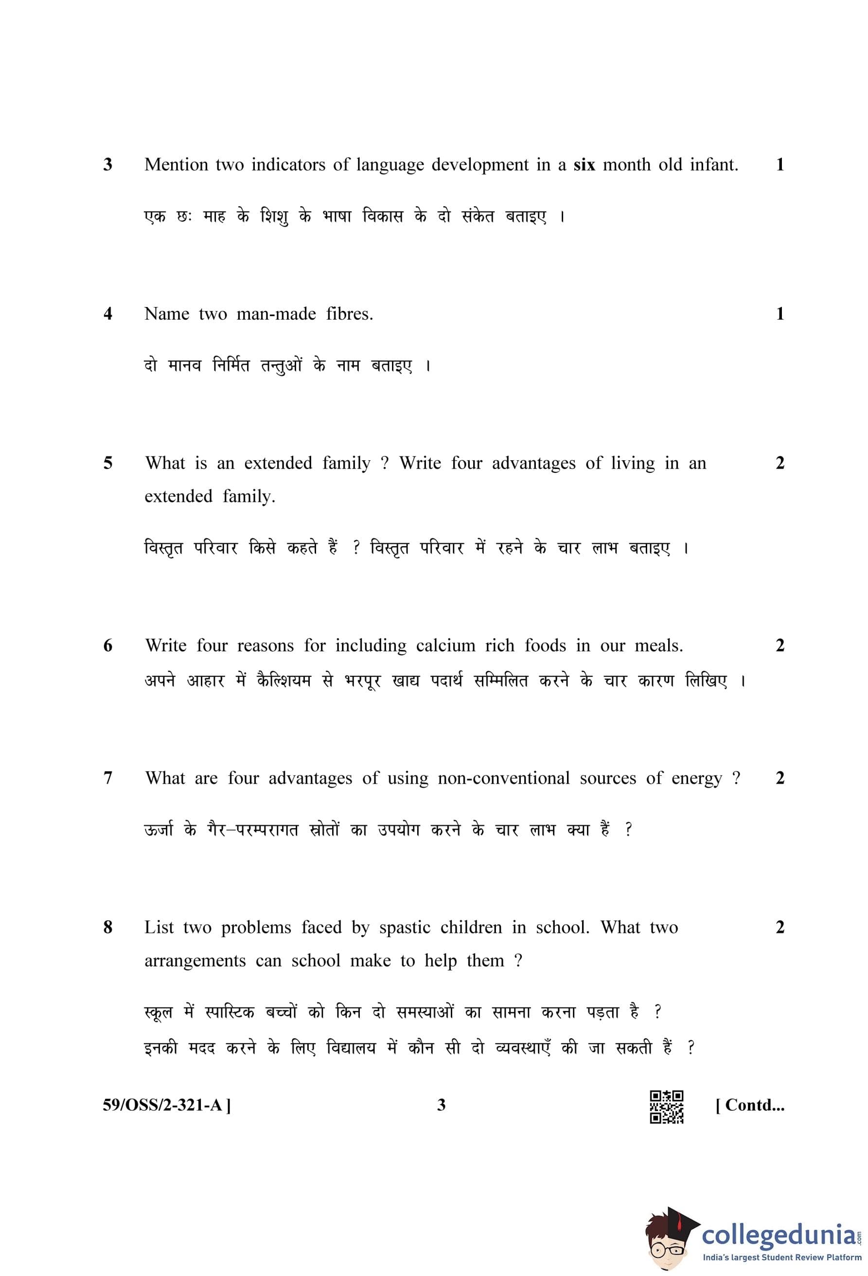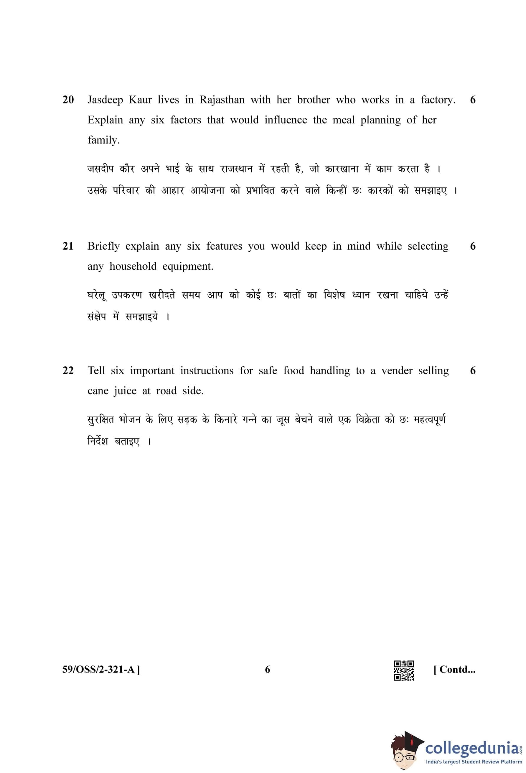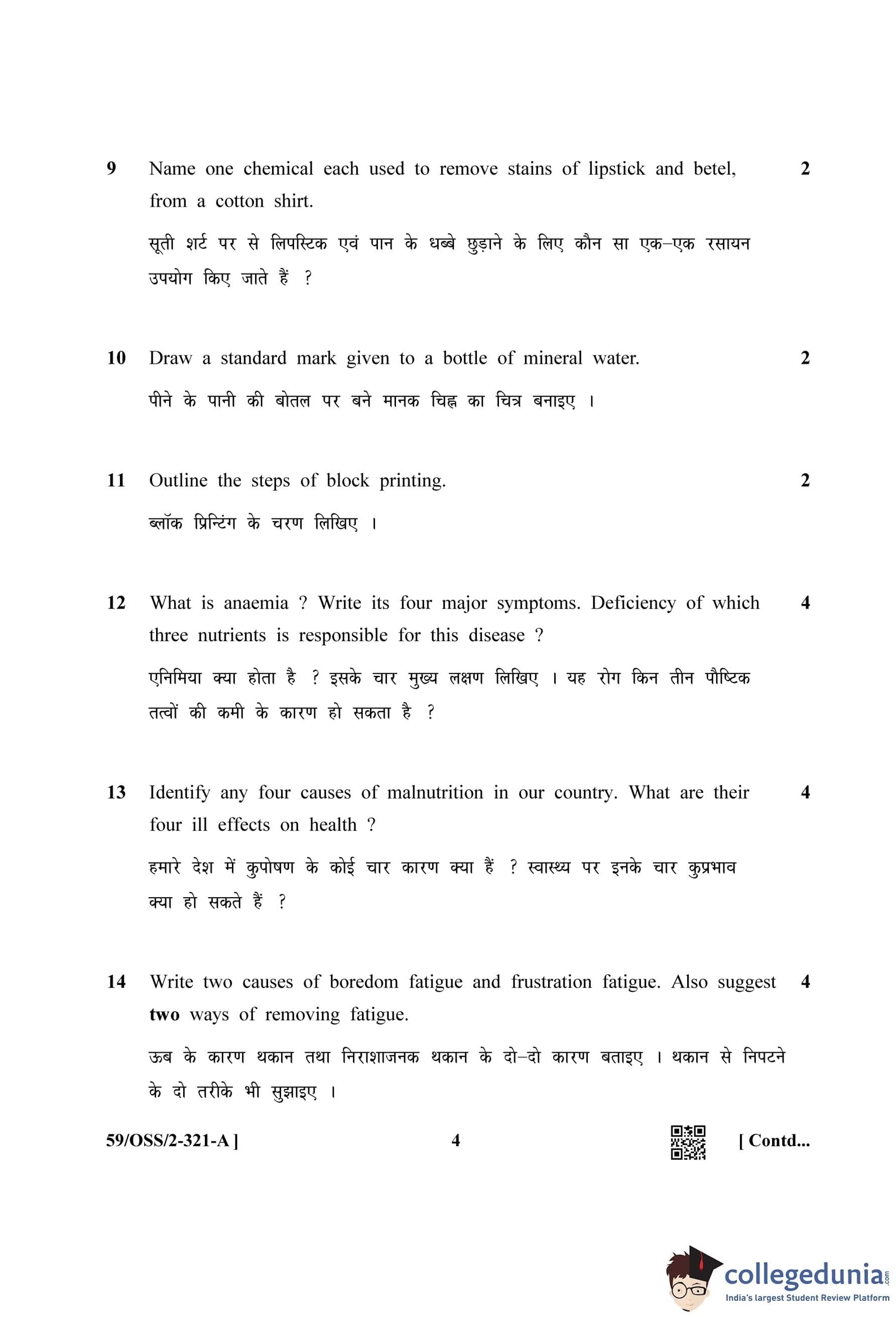 NIOS Class 12 Home Science (Set A) Compartment Question Paper 2019 with Answer Key