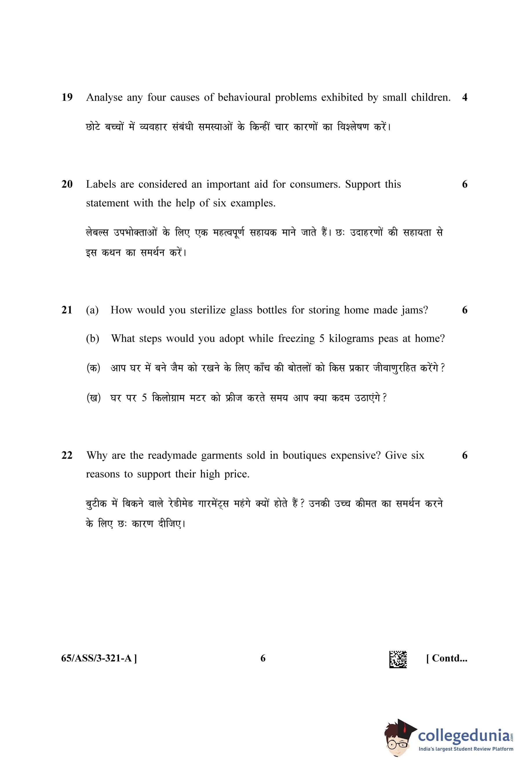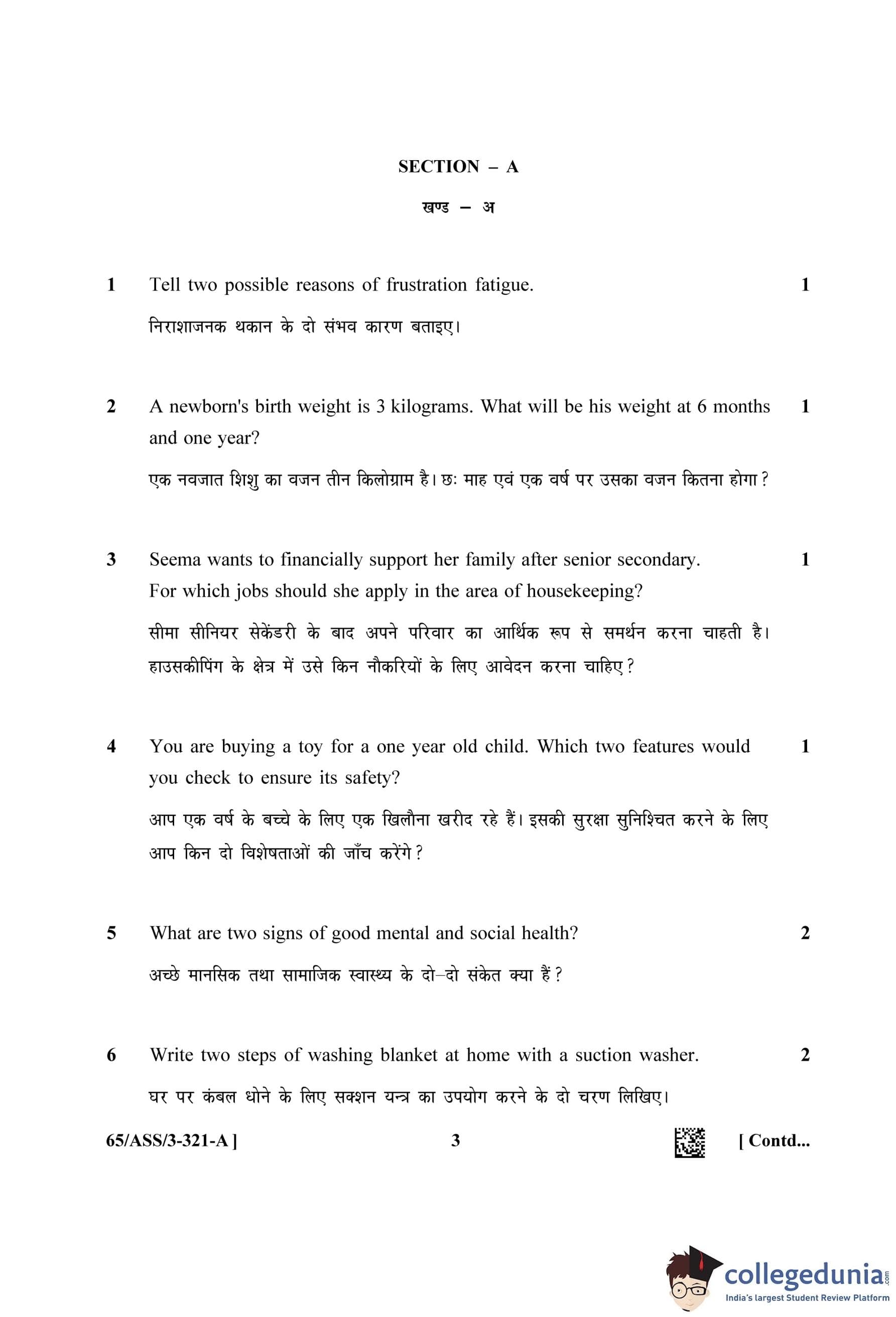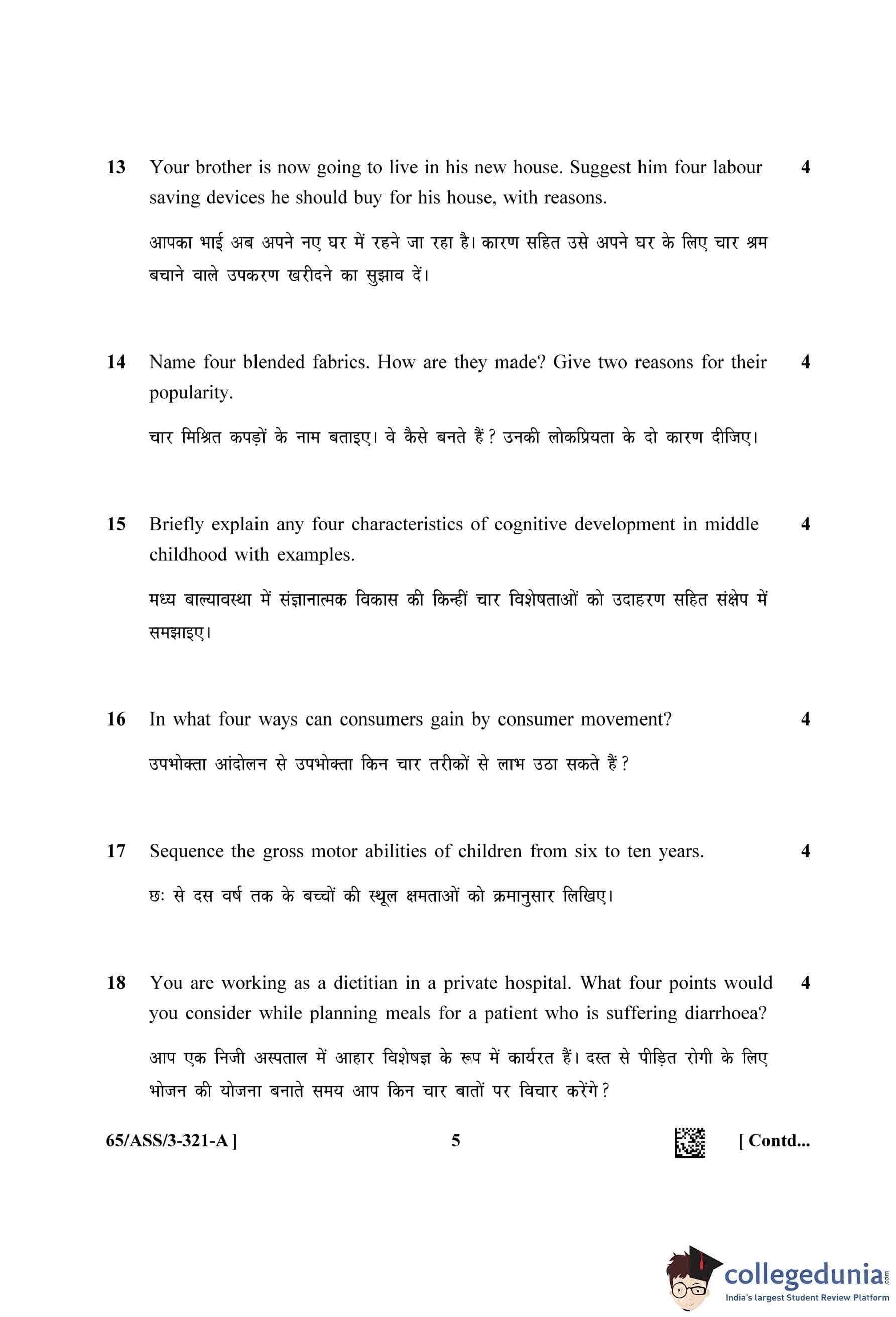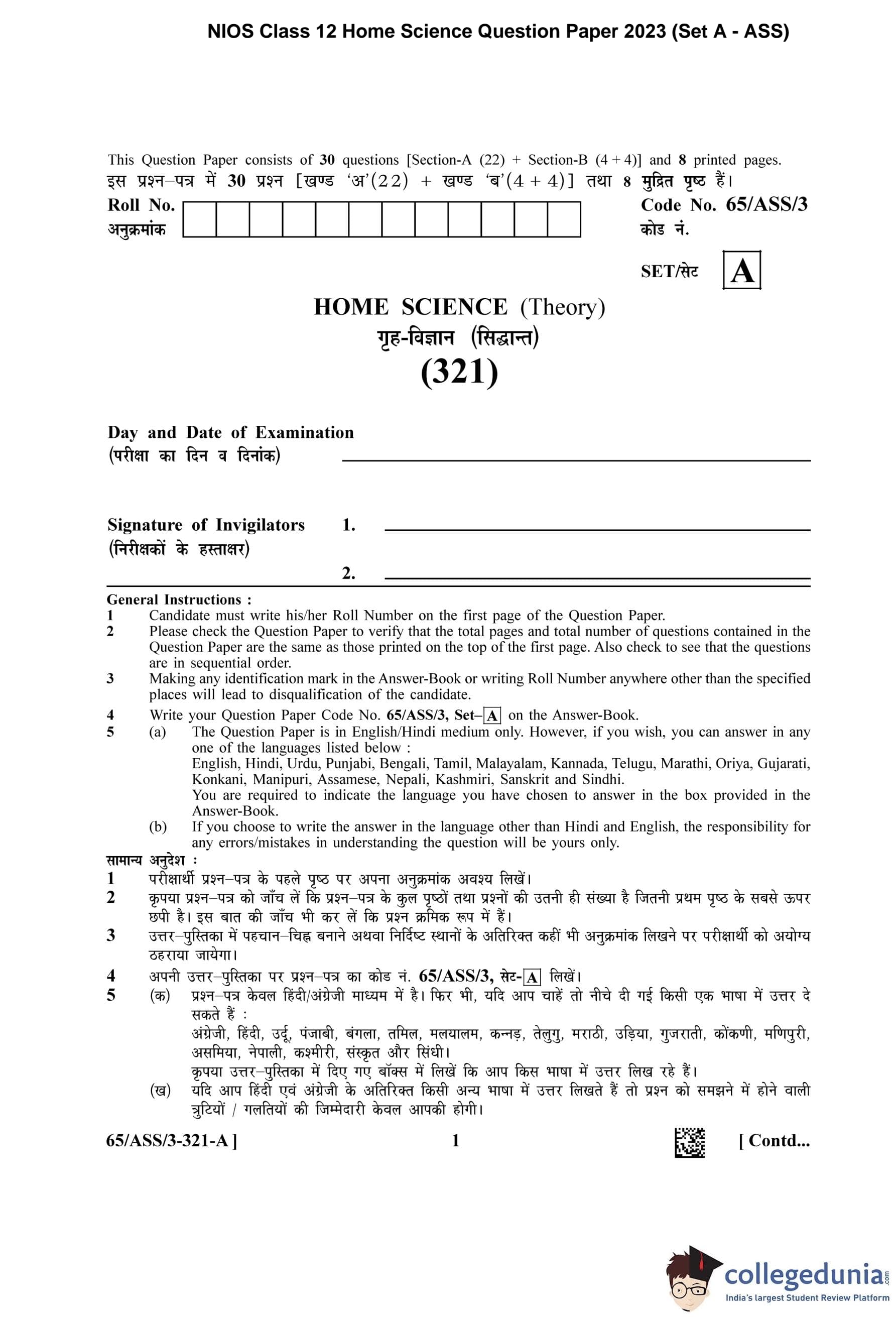 NIOS Class 12 Home Science Question Paper 2023 with Answer Key pdf (Set A - ASS) is available for download here. The exam was conducted by National Institute of Open Schooling on April 17, 2023 in the Afternoon Session 2.30 PM to 5.30 PM. The question paper comprised a total of 30 questions divided among 2 sections.