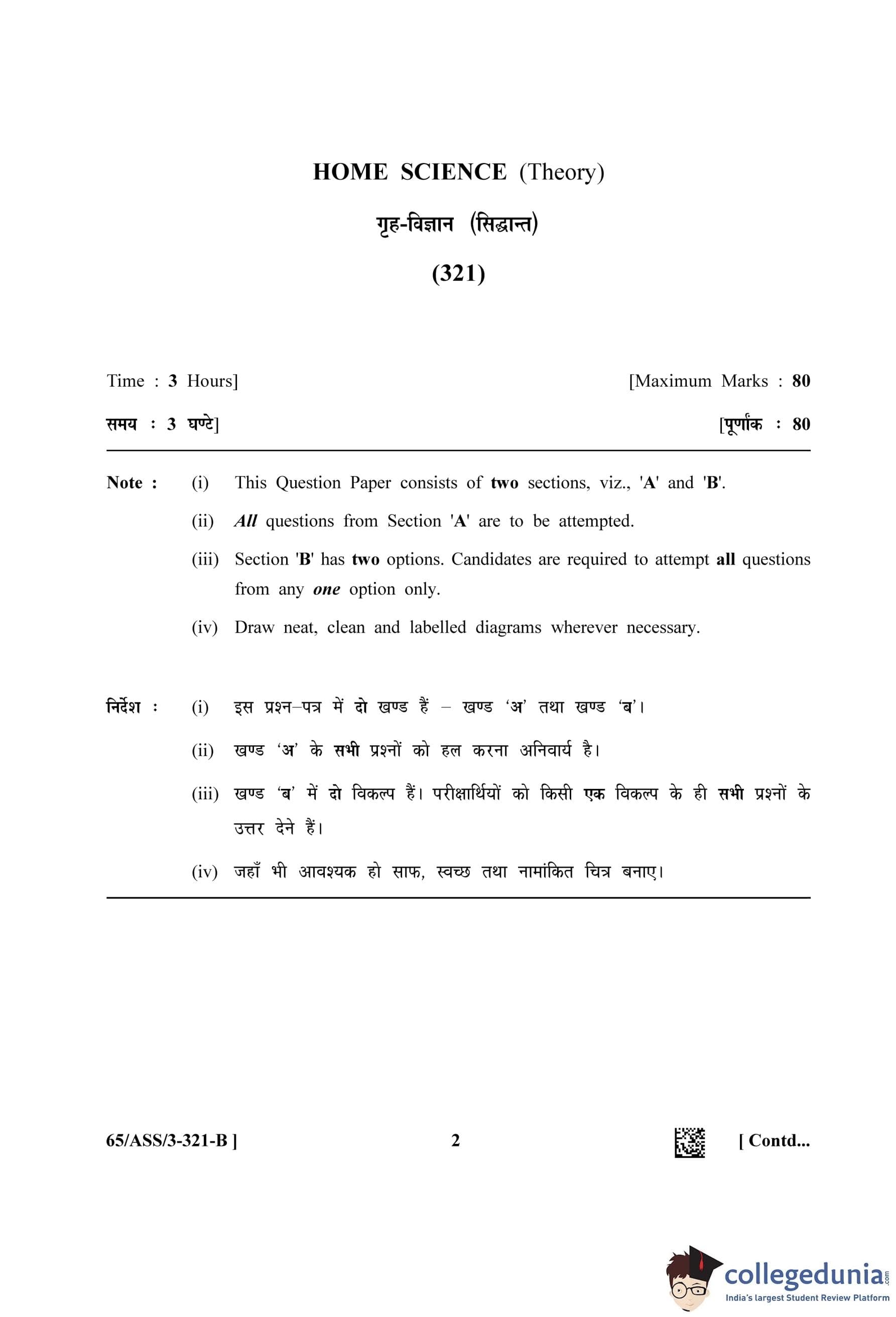 NIOS Class 12 Home Science Question Paper 2023 with Answer Key pdf (Set B - ASS) is available for download here. The exam was conducted by National Institute of Open Schooling on April 17, 2023 in the Afternoon Session 2.30 PM to 5.30 PM. The question paper comprised a total of 30 questions divided among 2 sections.