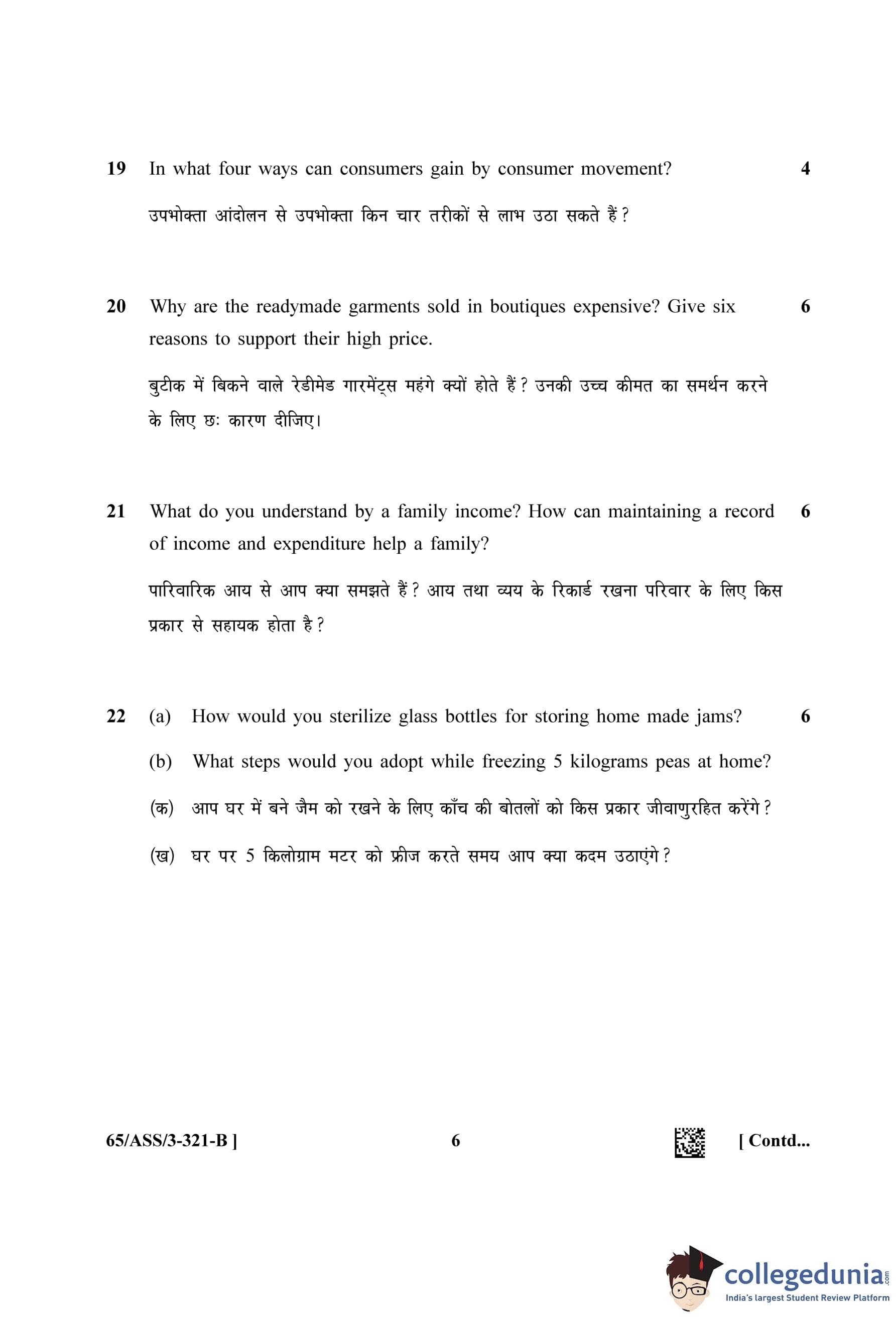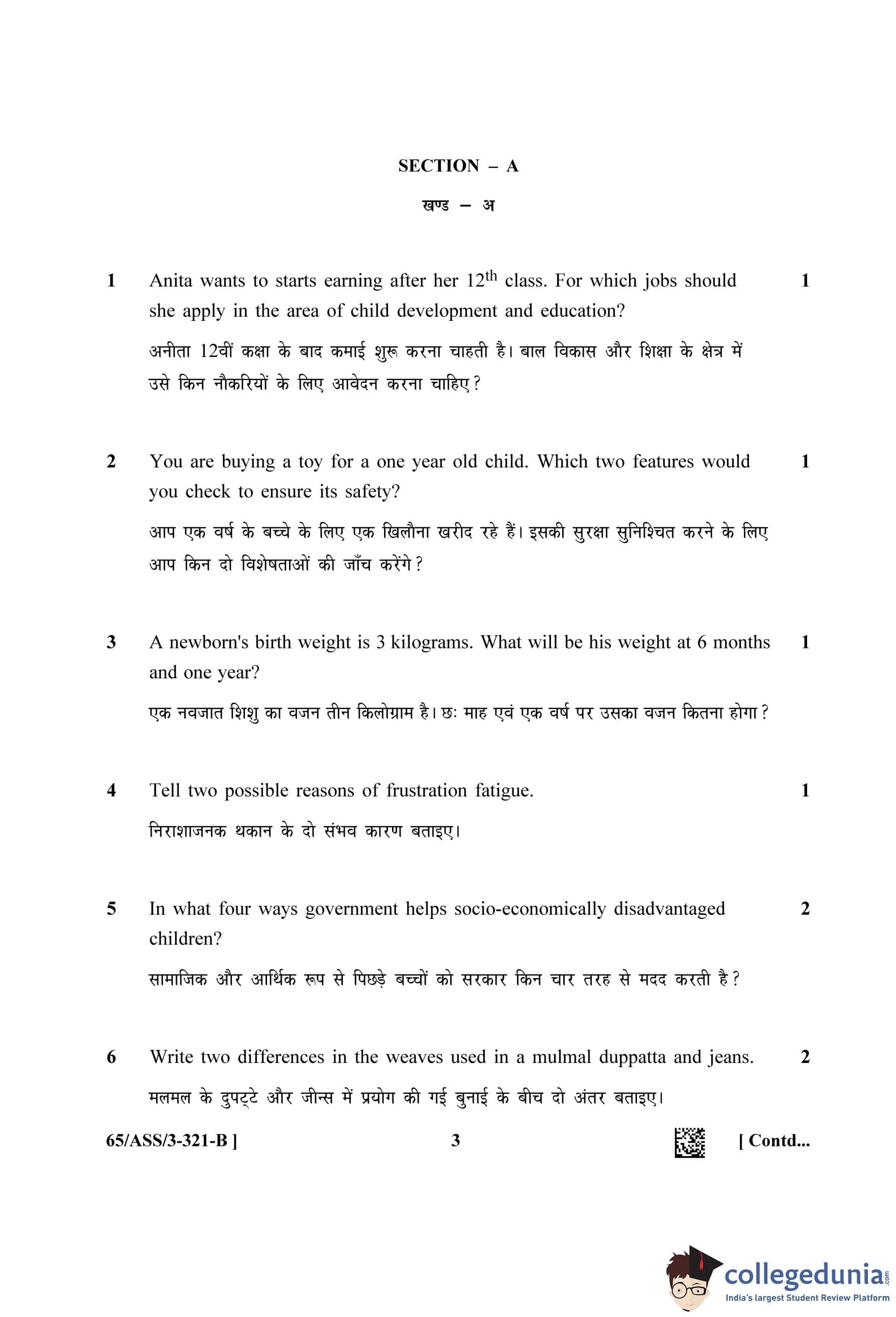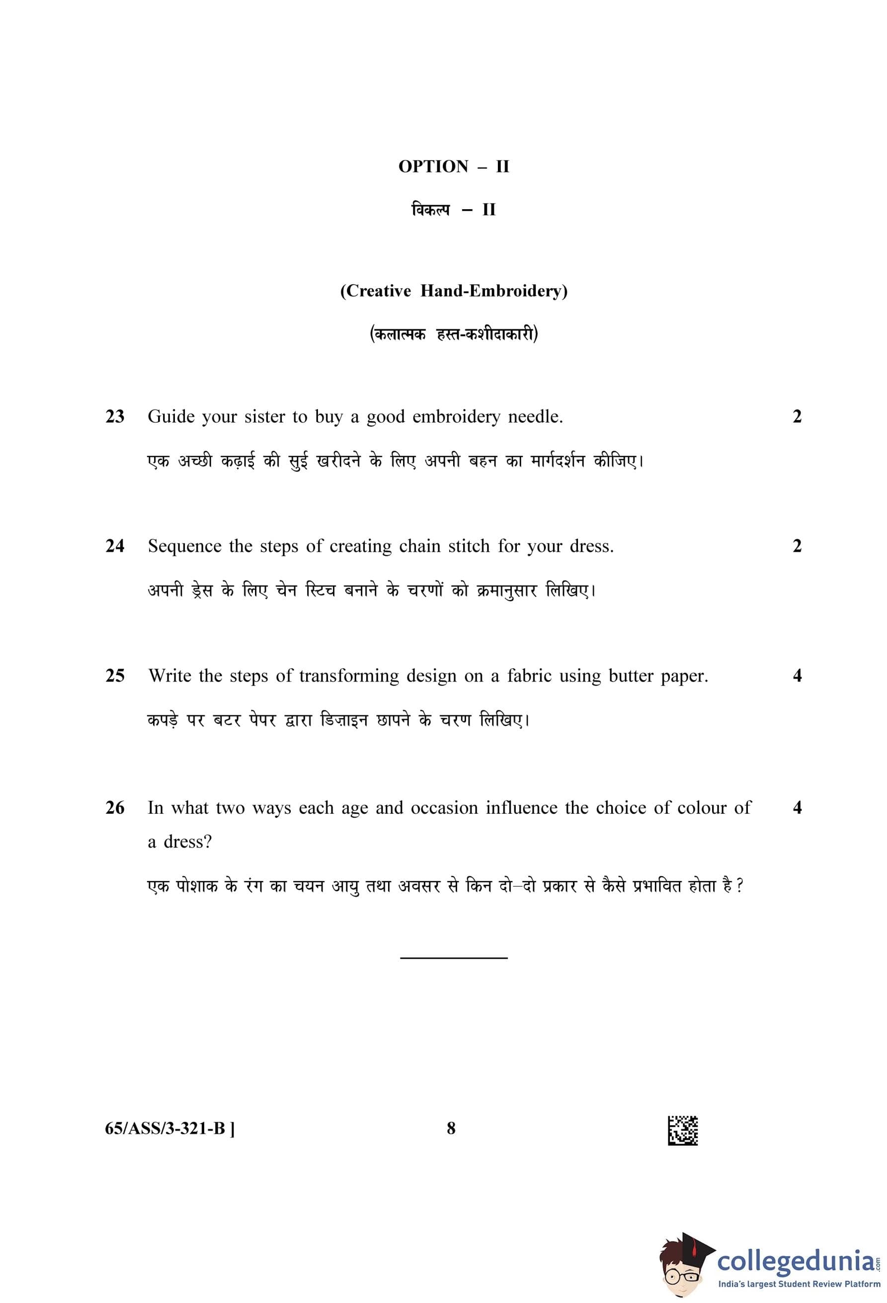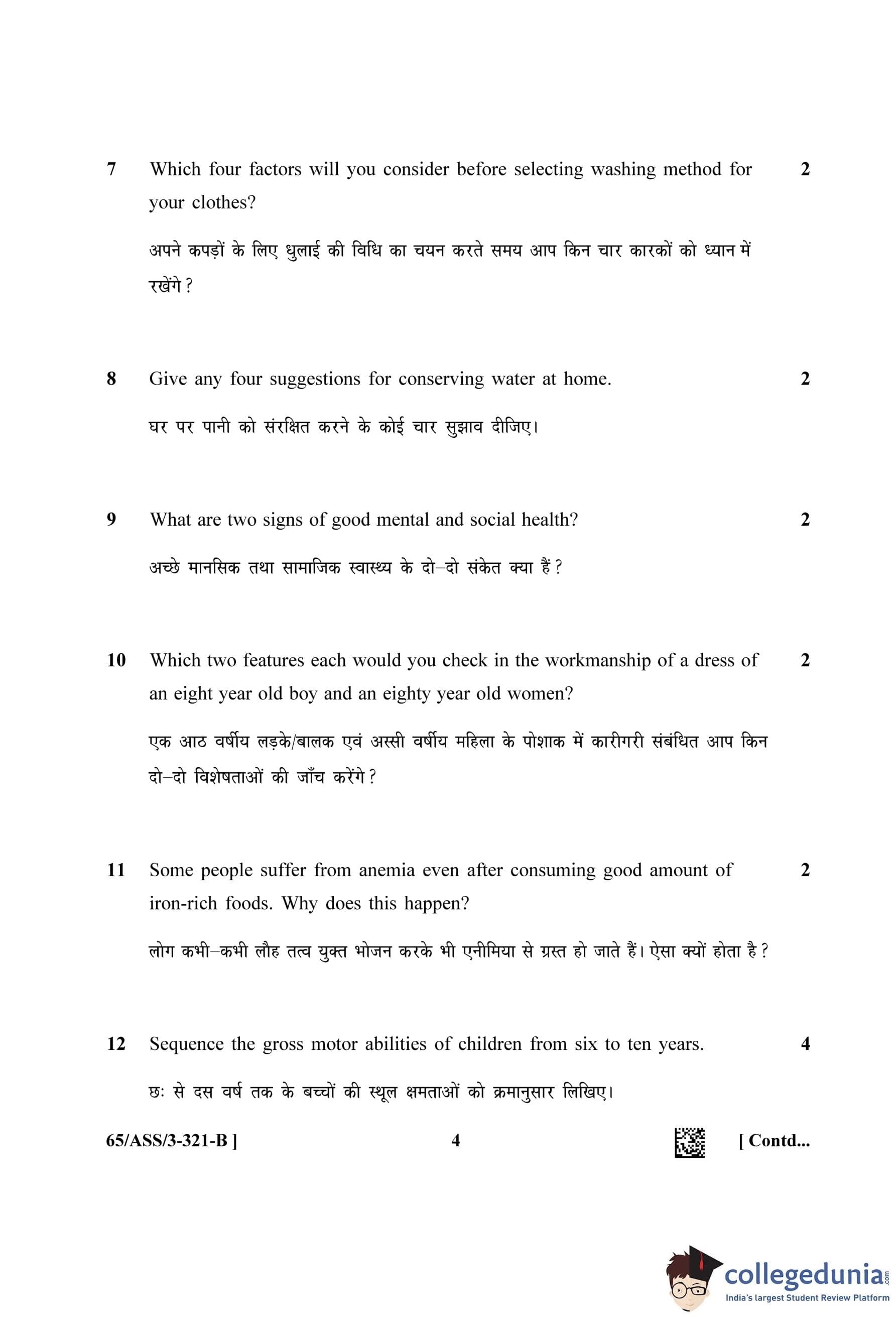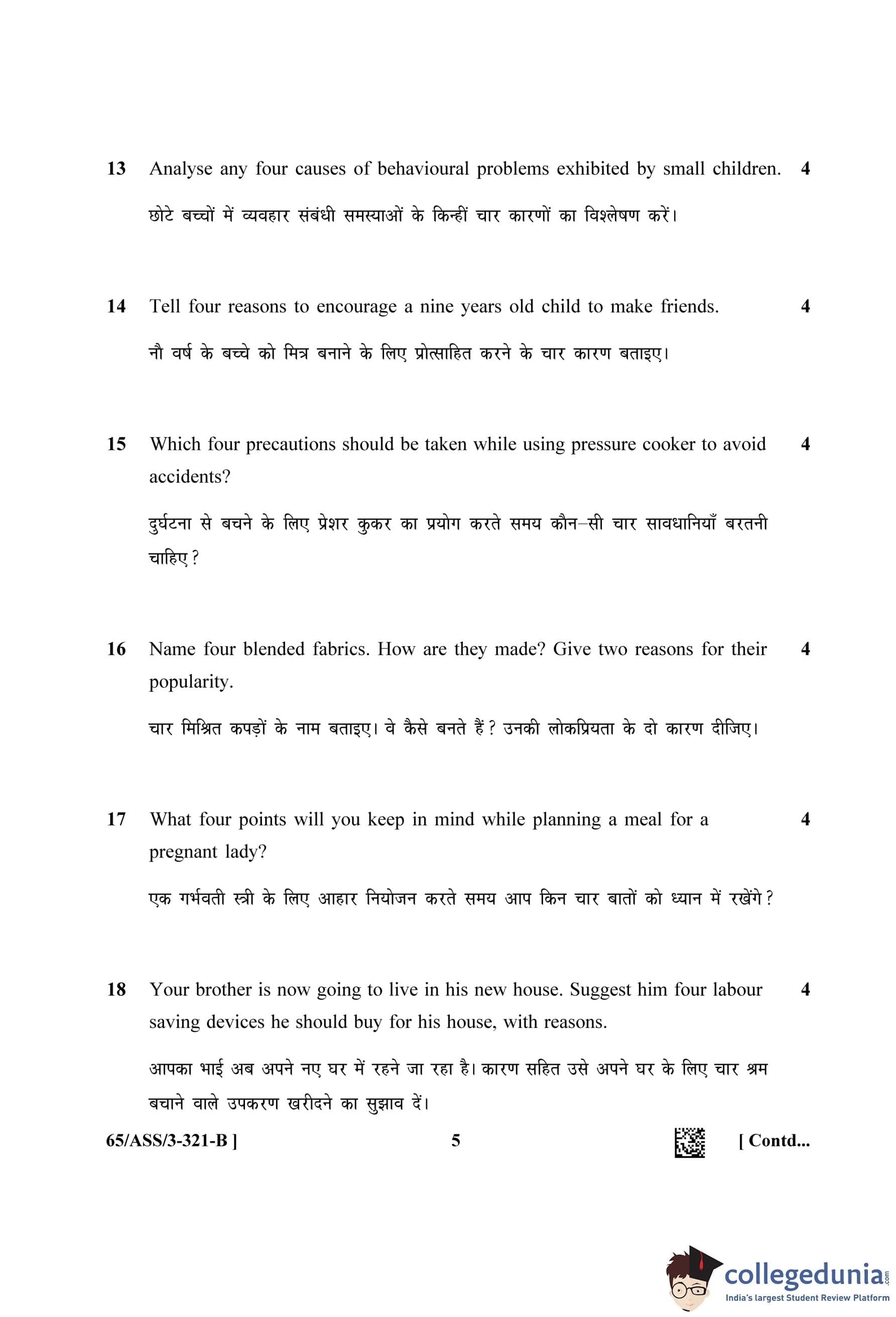NIOS Class 12 Home Science (Set B - ASS) Question Paper 2023 with Answer Key