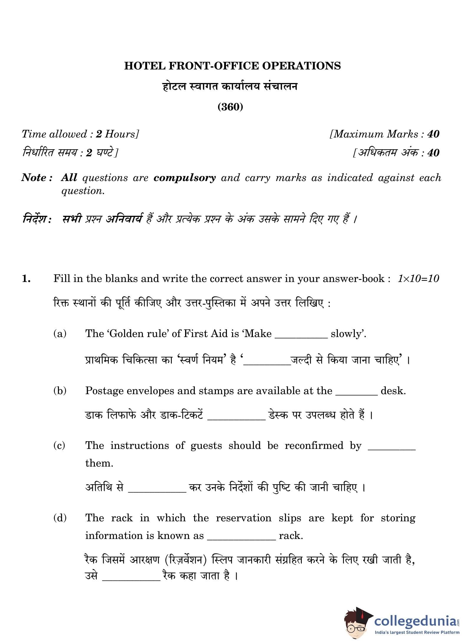 | NIOS Class 12 Hotel Front-Office Operations Question Paper 2022 PDF | NIOS Class 12 Hotel Front-Office Operations Answer Key 2022 PDF |