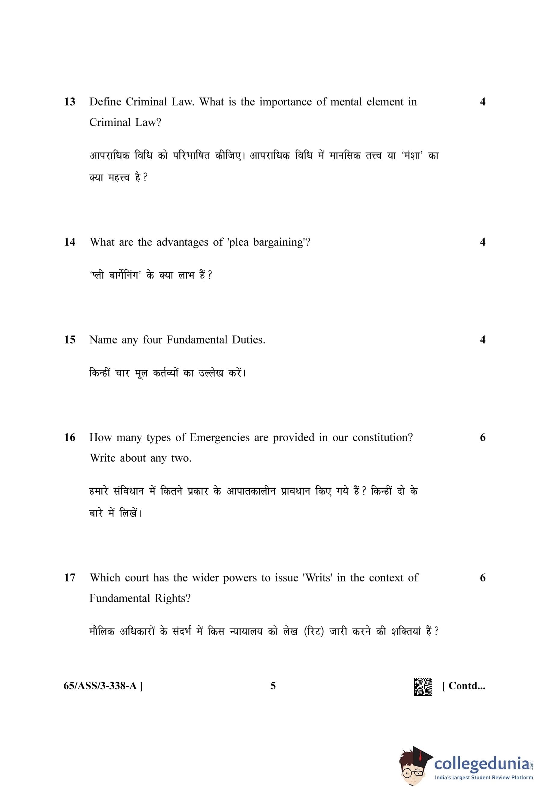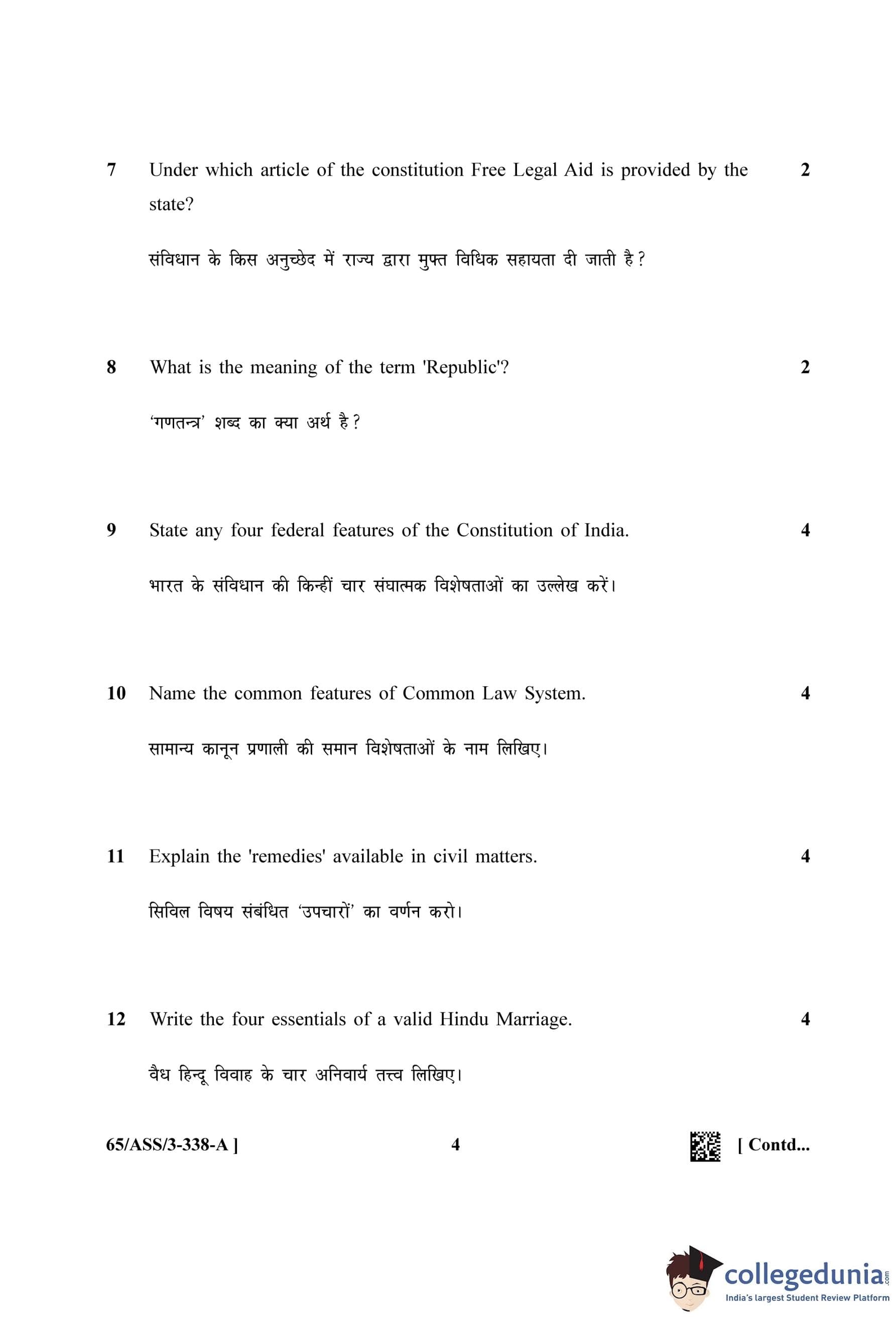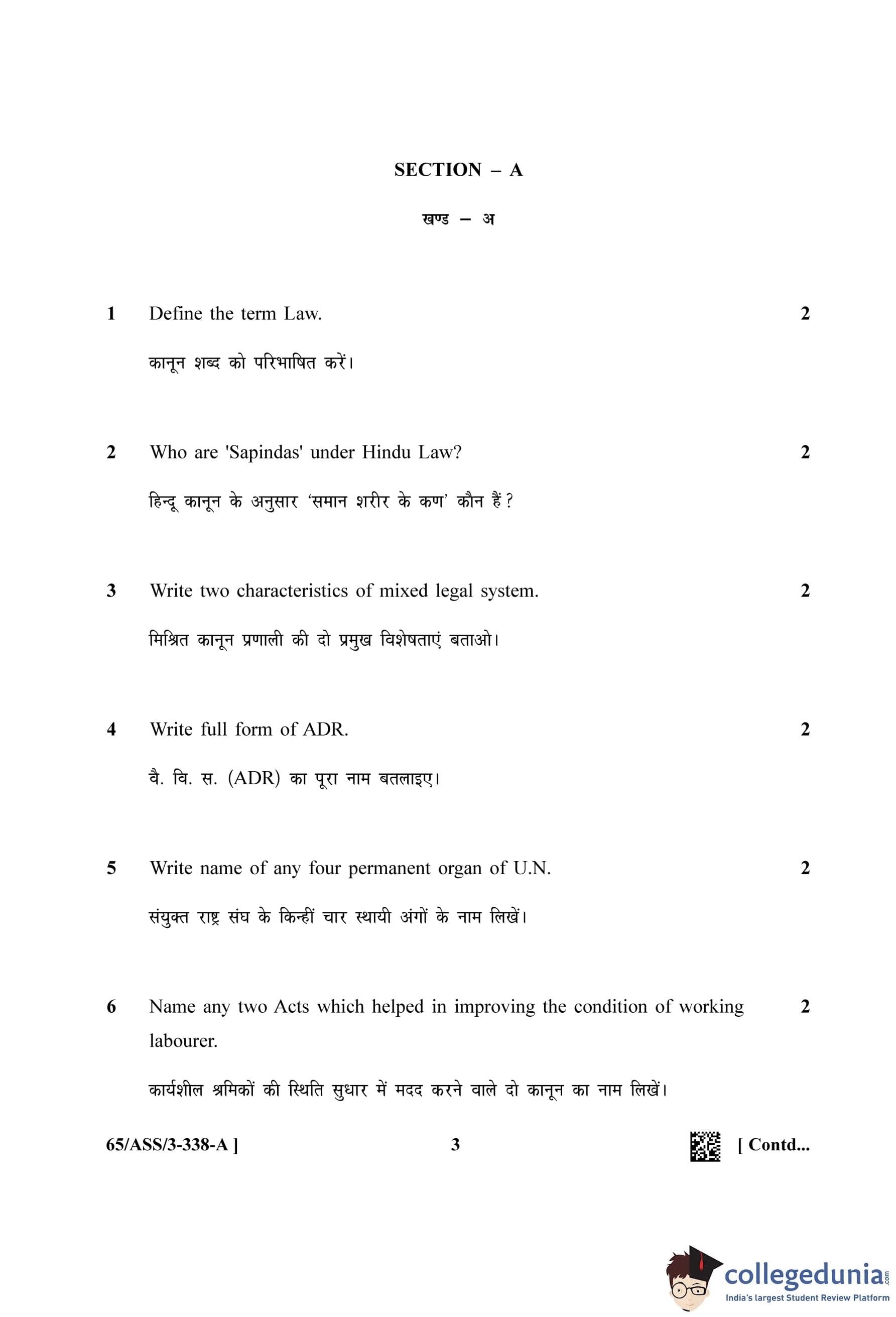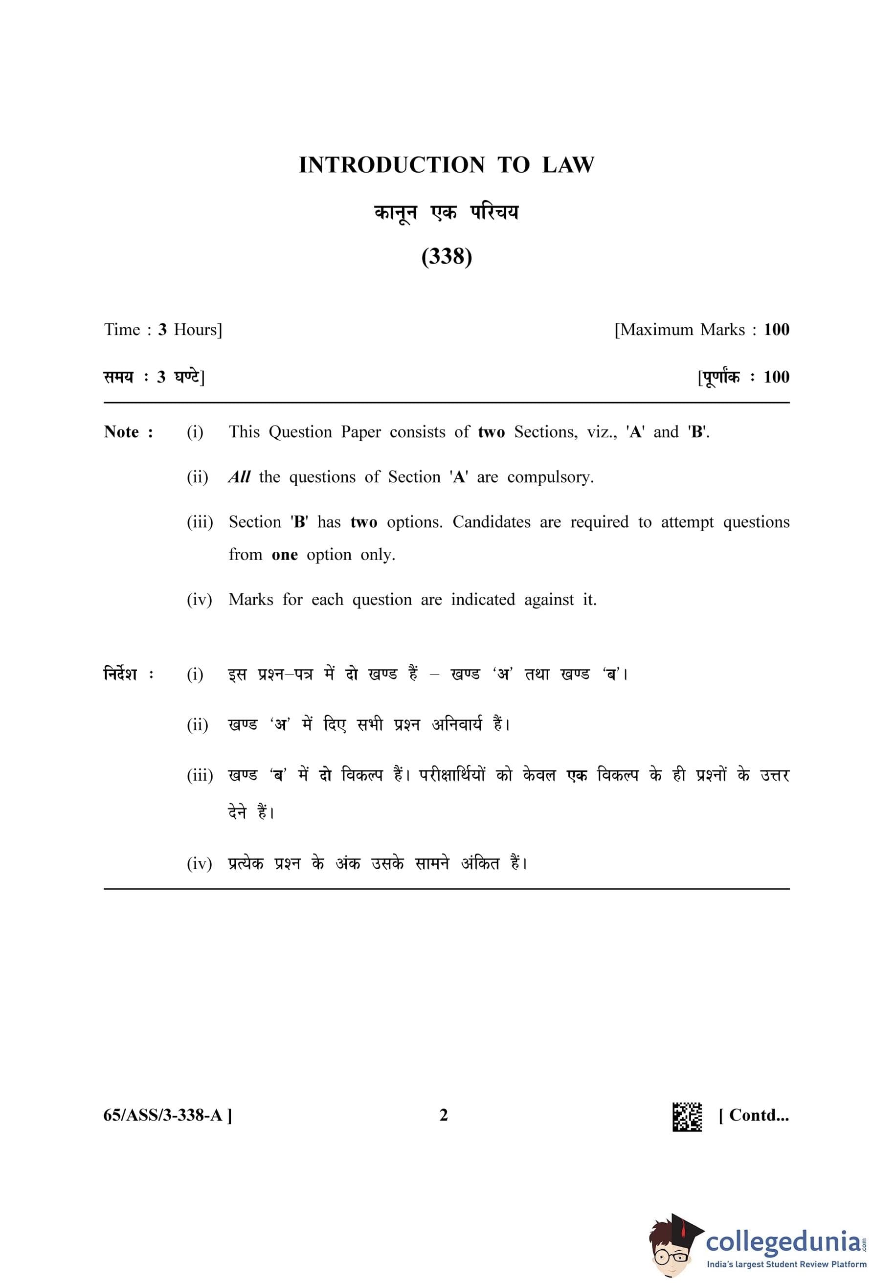 NIOS Class 12 Introduction to Law (Set A - ASS) Question Paper 2023 with Answer Key