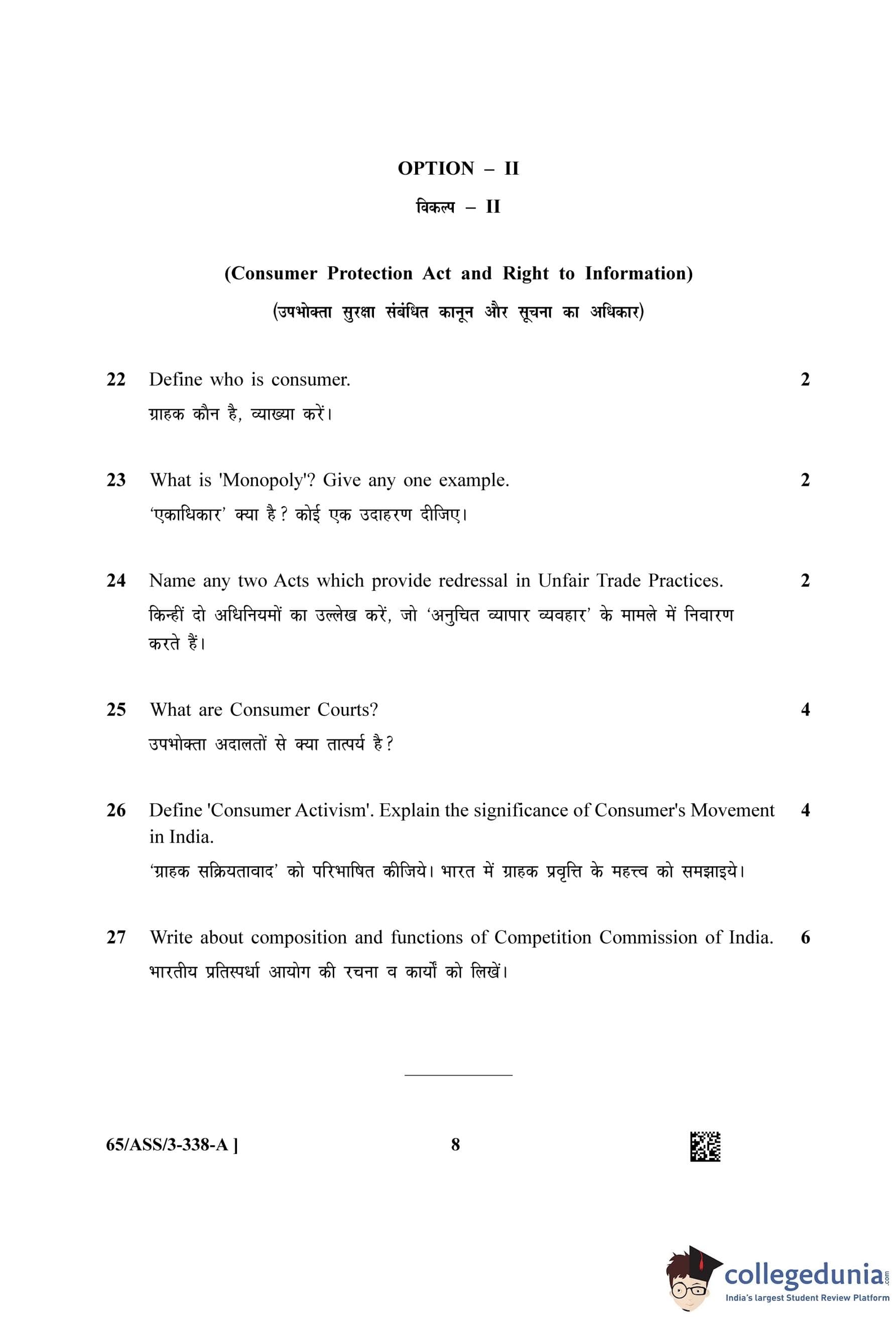 NIOS Class 12 Introduction to Law Question Paper 2023 with Answer Key pdf (Set A - ASS) is available for download here. The exam was conducted by National Institute of Open Schooling on April 26, 2023 in the Afternoon Session 2.30 PM to 5.30 PM. The question paper comprised a total of 33 questions divided among 2 sections.