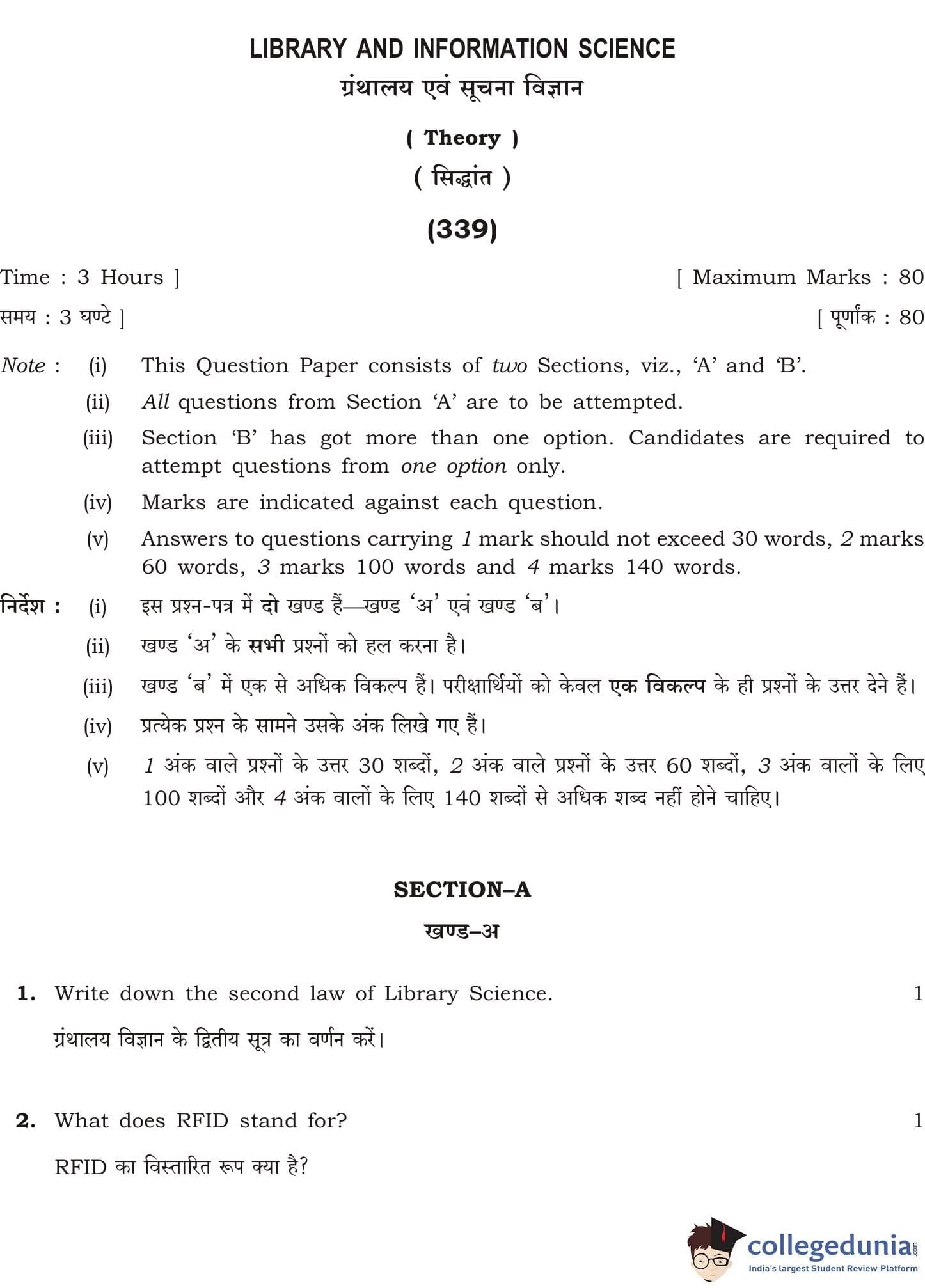 NIOS Class 12 Library and Information Science Compartment Question Paper 2016 with Answer Key pdf is available for download here. The exam was conducted by National Institute of Open Schooling on October 24, 2016 in the Morning Session 11 AM to 2 PM. The question paper comprised a total of 35 questions divided among 2 sections.