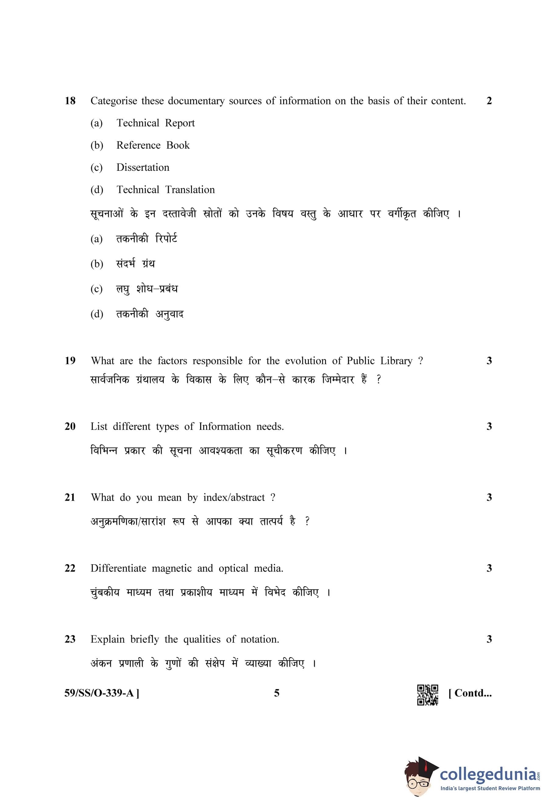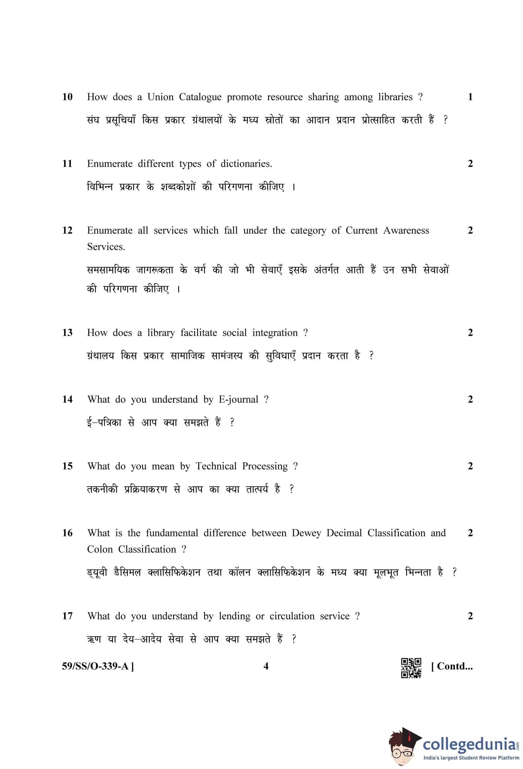 NIOS Class 12 Library and Information Science Compartment Question Paper 2019 with Answer Key
