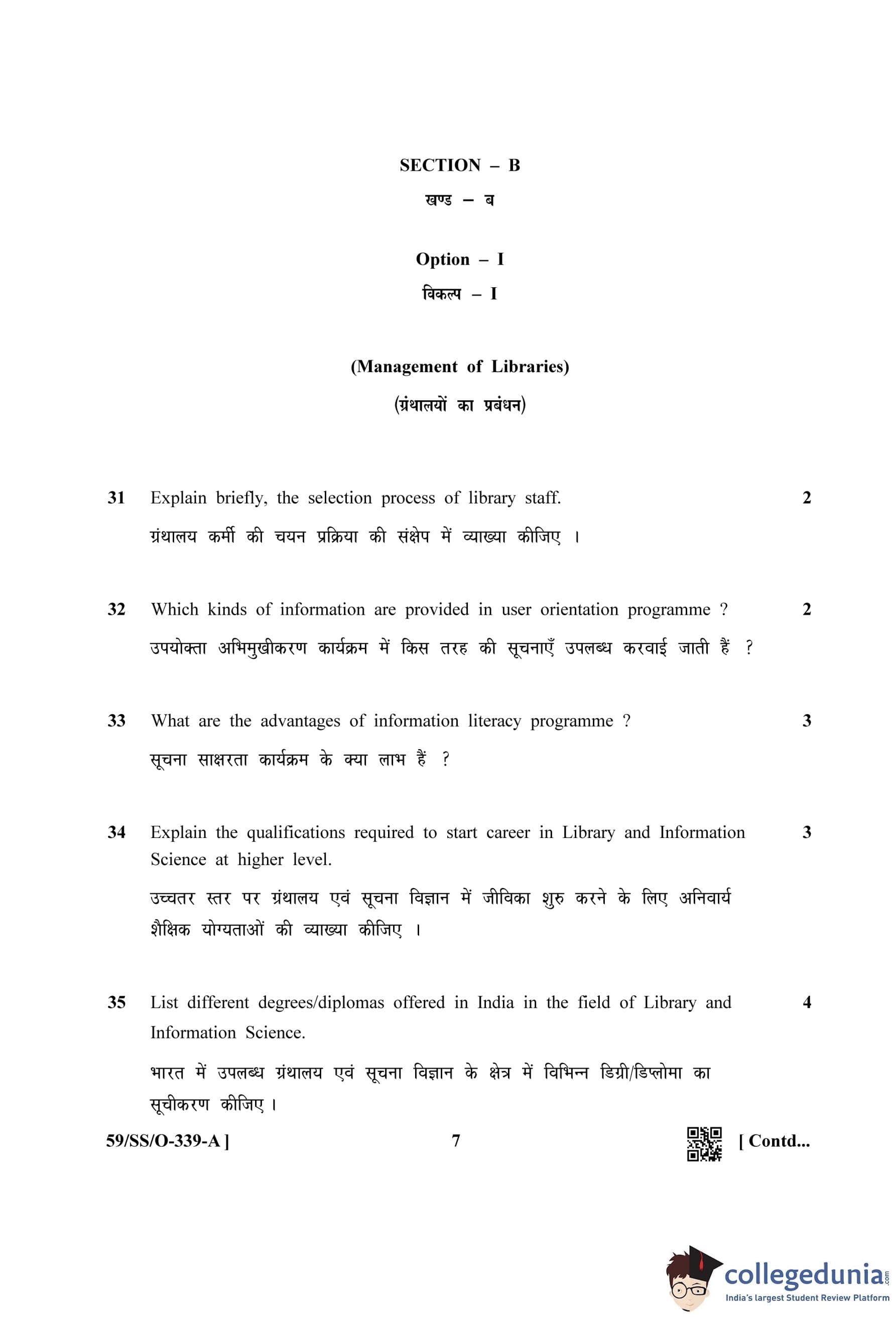 NIOS Class 12 Library and Information Science Compartment Question Paper 2019 with Answer Key pdf is available for download here. The exam was conducted by National Institute of Open Schooling on October 19, 2019 in the Afternoon Session 2:30 PM to 5:30 PM. The question paper comprised a total of 35 questions divided among 2 sections.