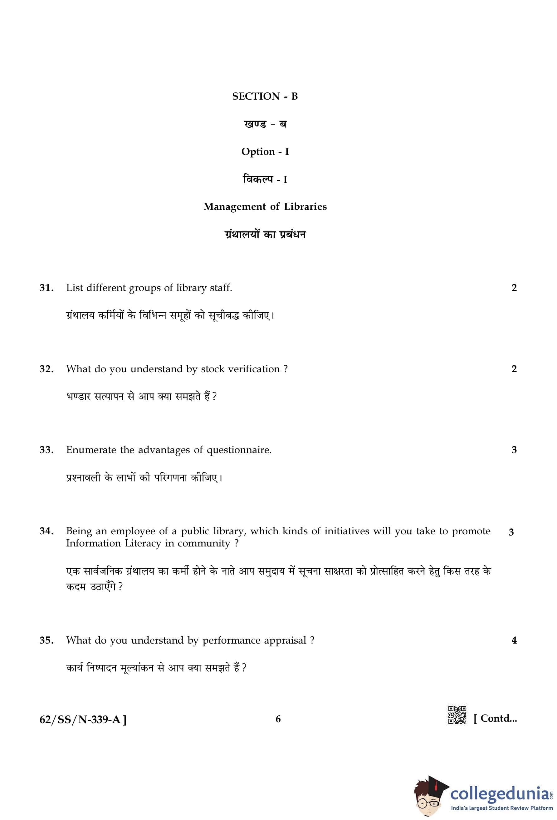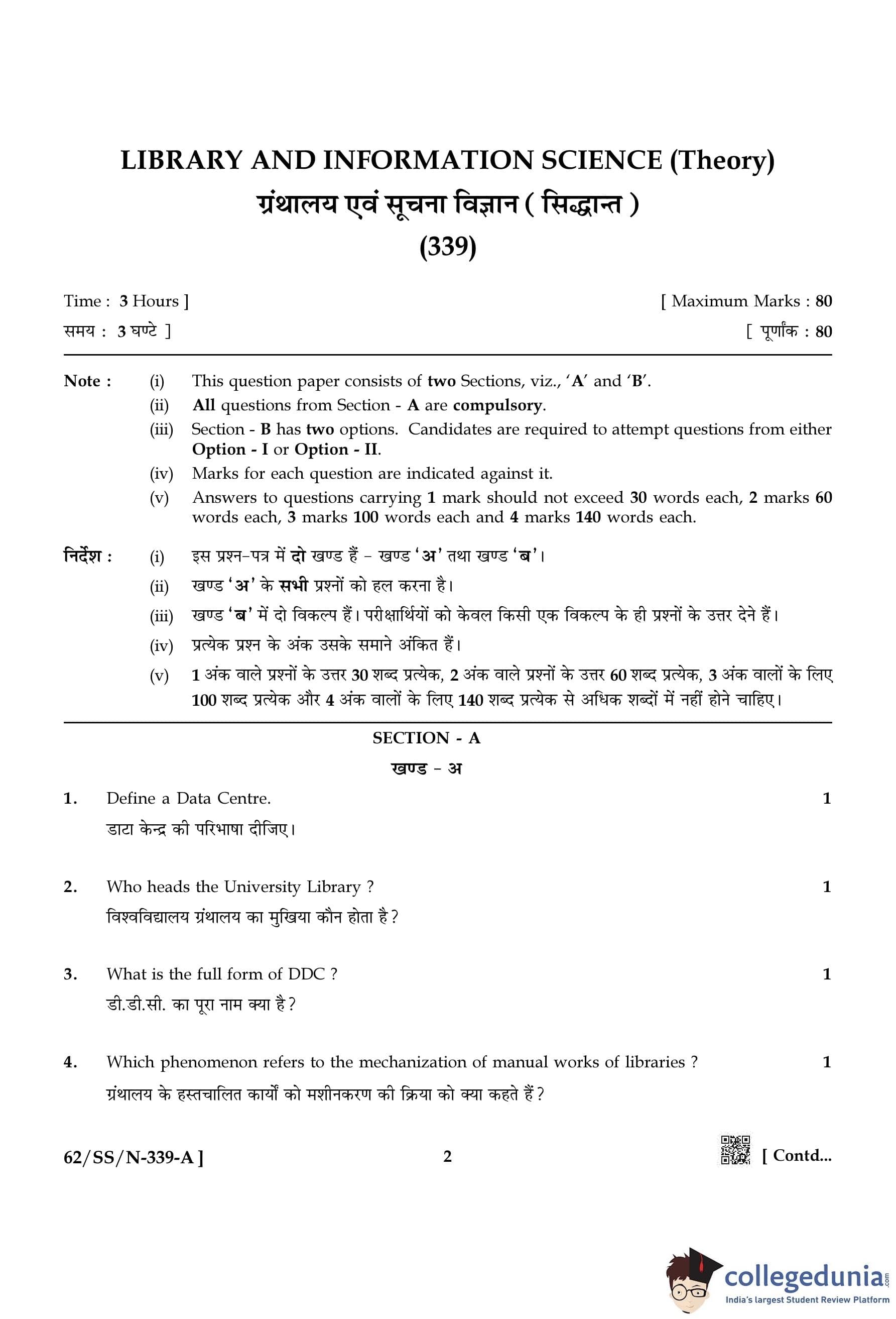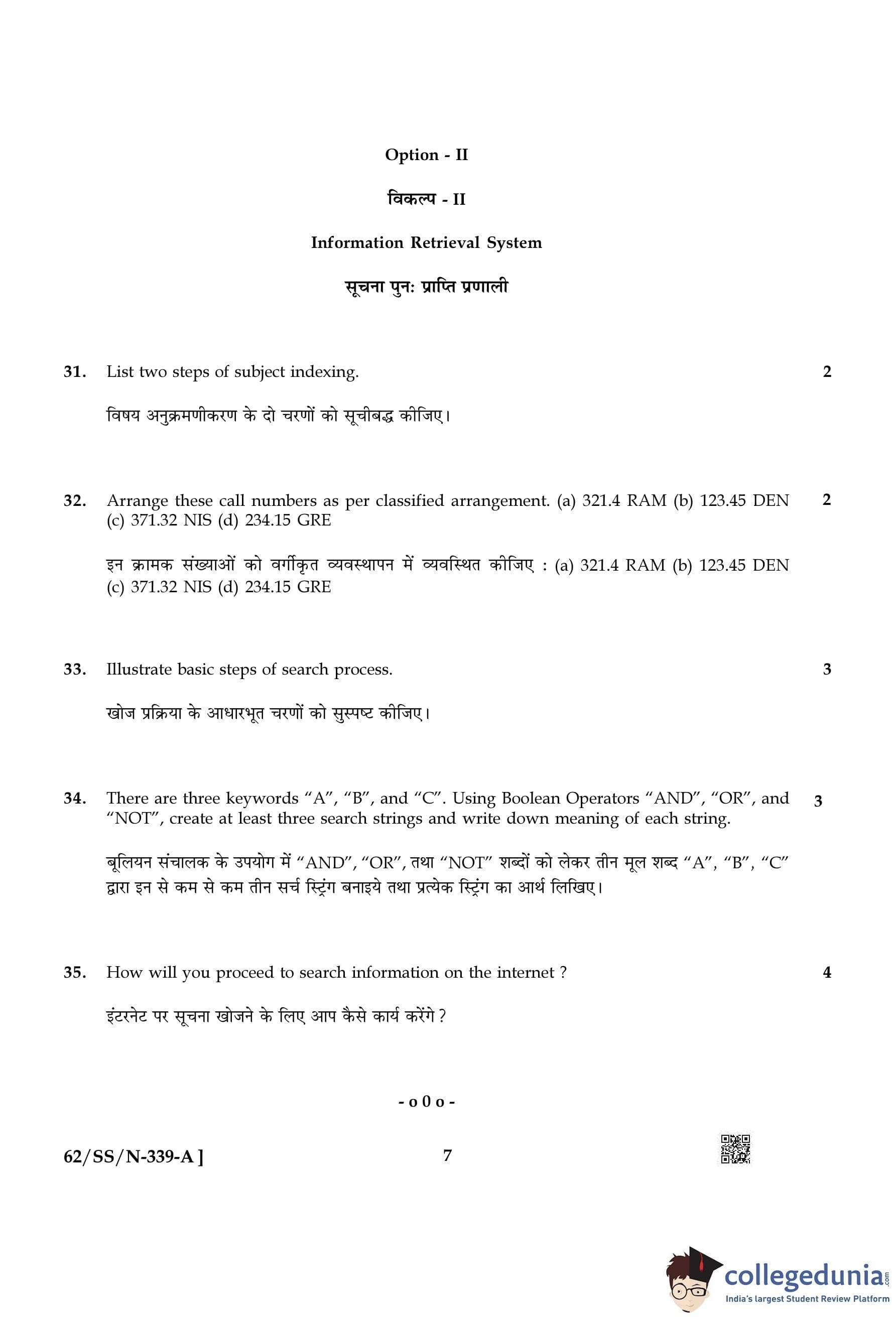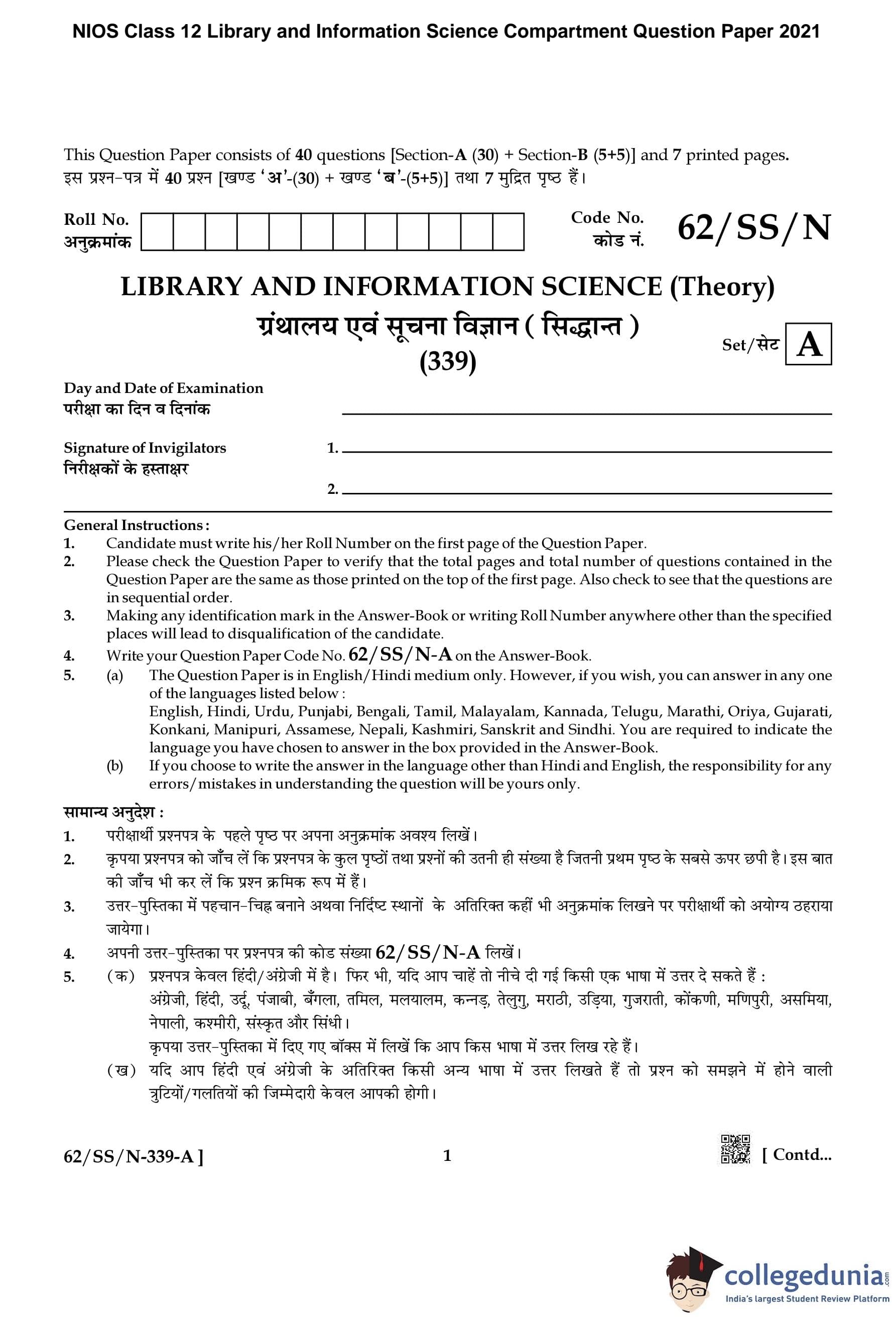 NIOS Class 12 Library and Information Science Compartment Question Paper 2021 with Answer Key pdf is available for download here. The exam was conducted by National Institute of Open Schooling on December 1, 2021 in the Afternoon Session 2:30 PM to 5:30 PM. The question paper comprised a total of 35 questions divided among 2 sections.