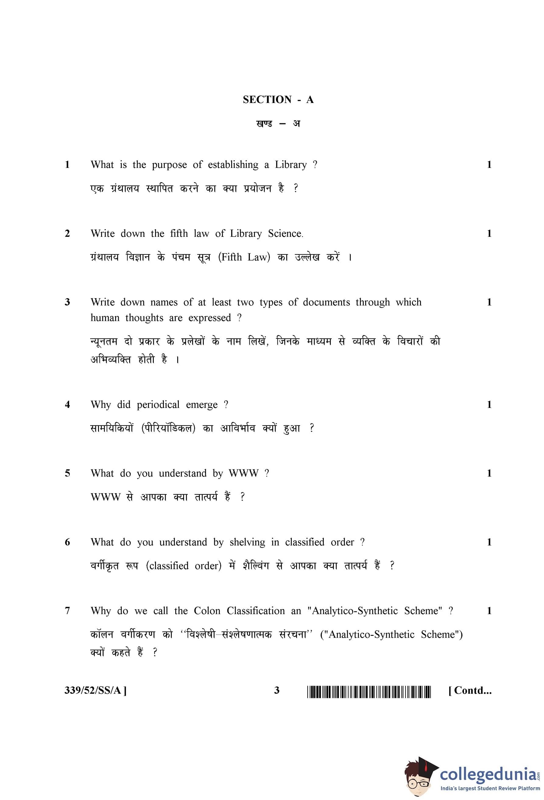 NIOS Class 12 Library and Information Science Question Paper 2016 with Answer Key