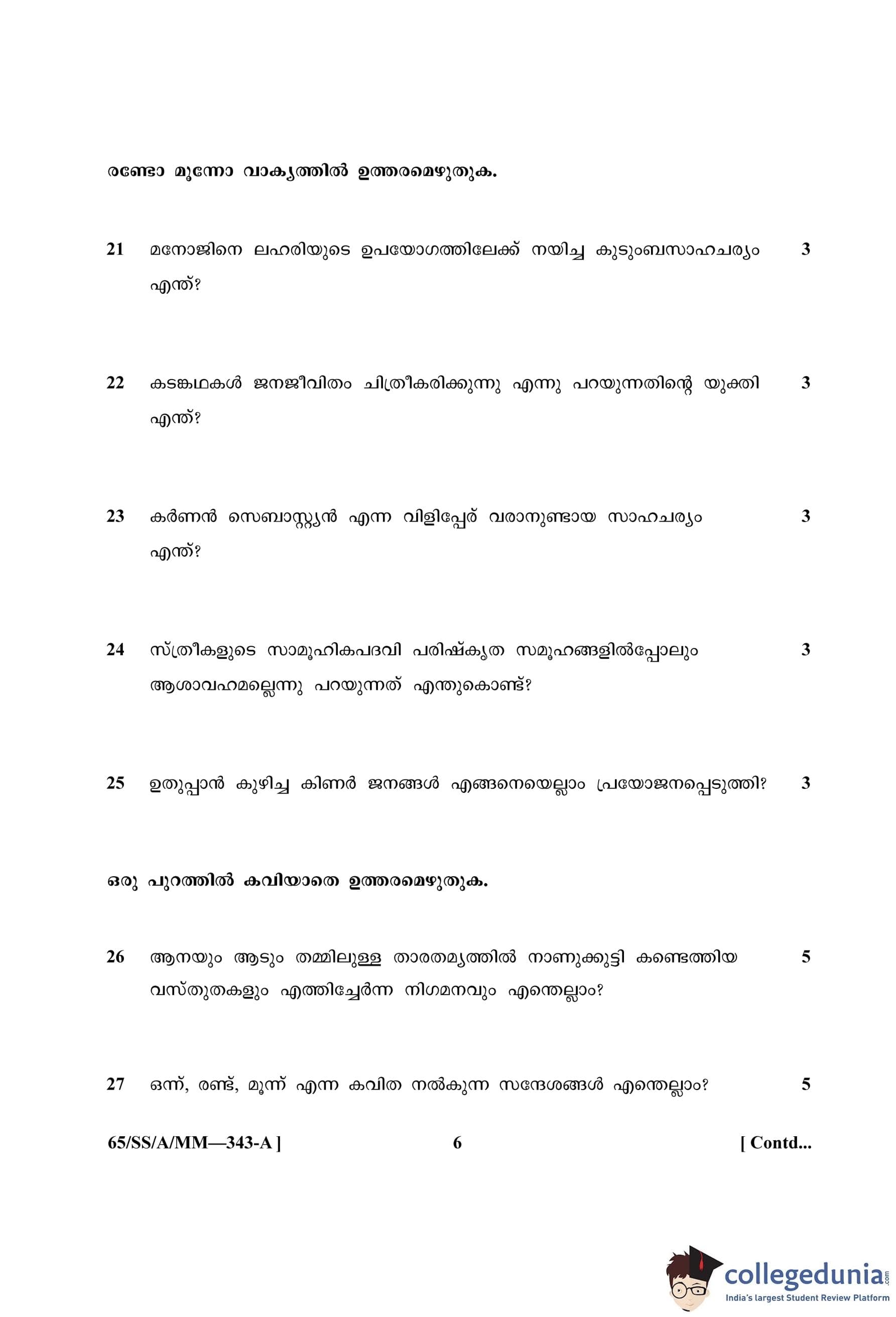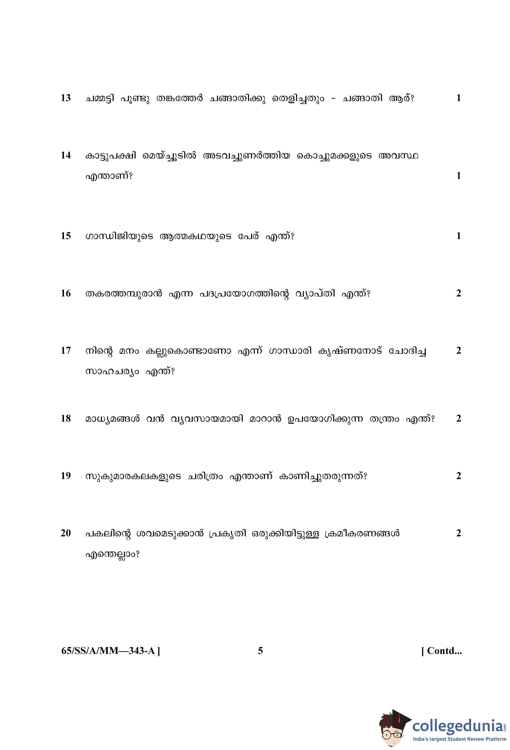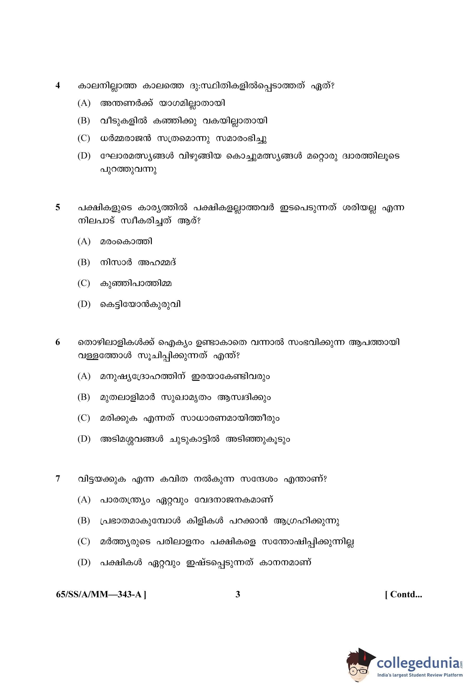 NIOS Class 12 Malayalam (Set A) Question Paper 2023 with Answer Key