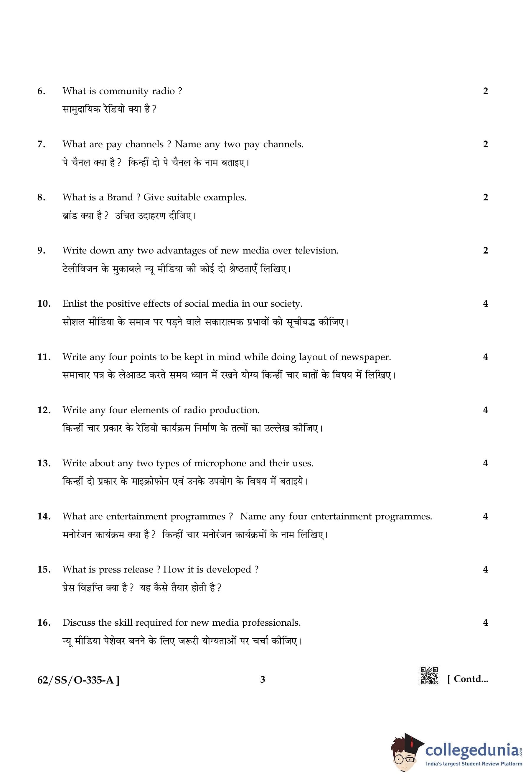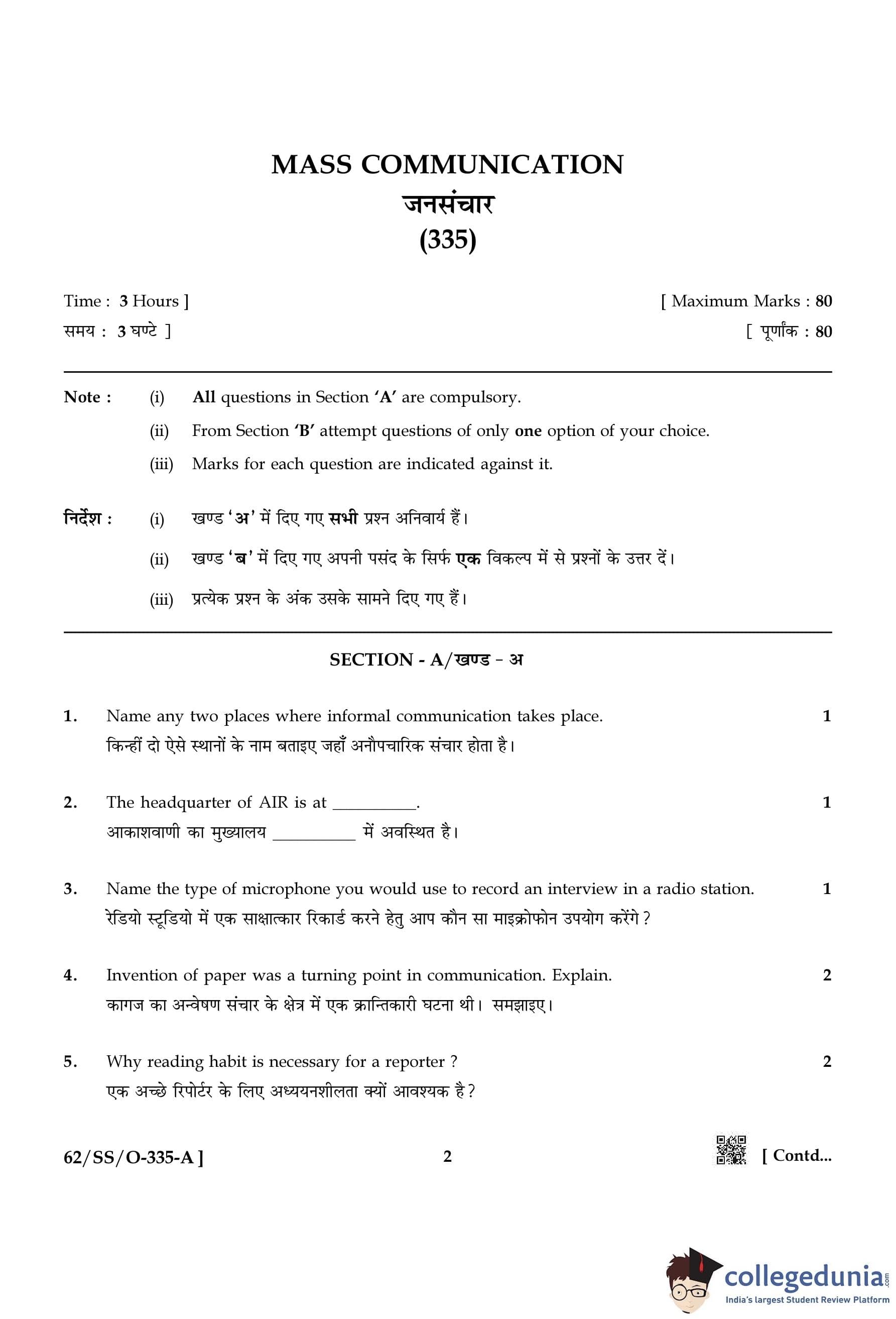 NIOS Class 12 Mass Communication Compartment Question Paper 2021 with Answer Key pdf is available for download here. The exam was conducted by National Institute of Open Schooling on December 6, 2021 in the Afternoon Session 2:30 PM to 5:30 PM. The question paper comprised a total of 25 questions divided among 2 sections.