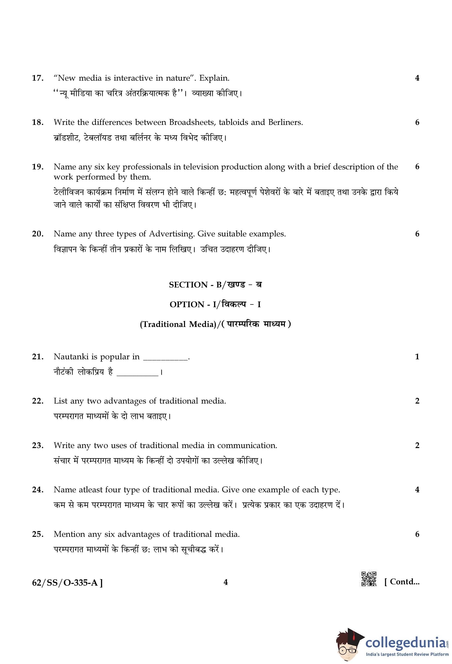NIOS Class 12 Mass Communication Compartment Question Paper 2021 with Answer Key