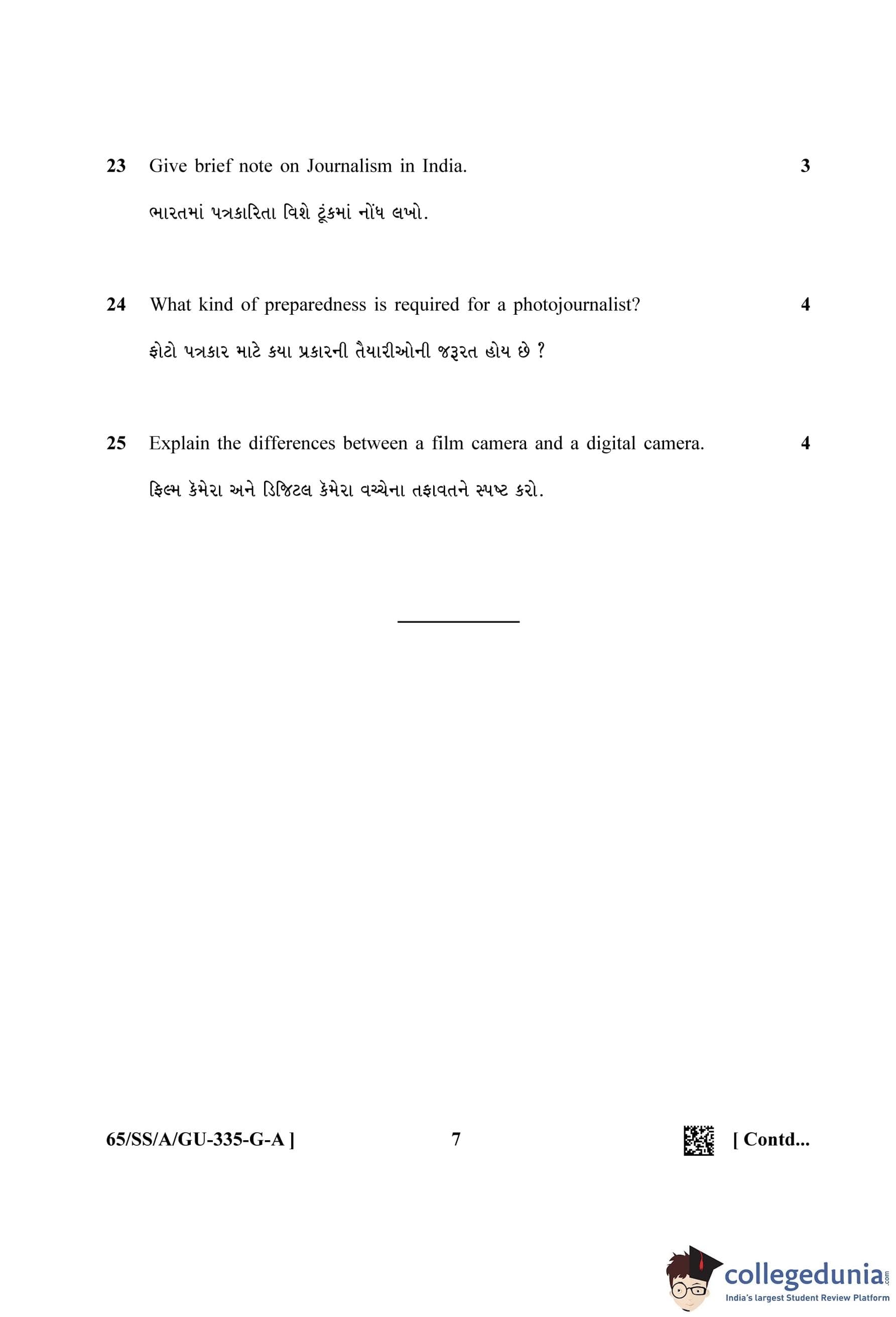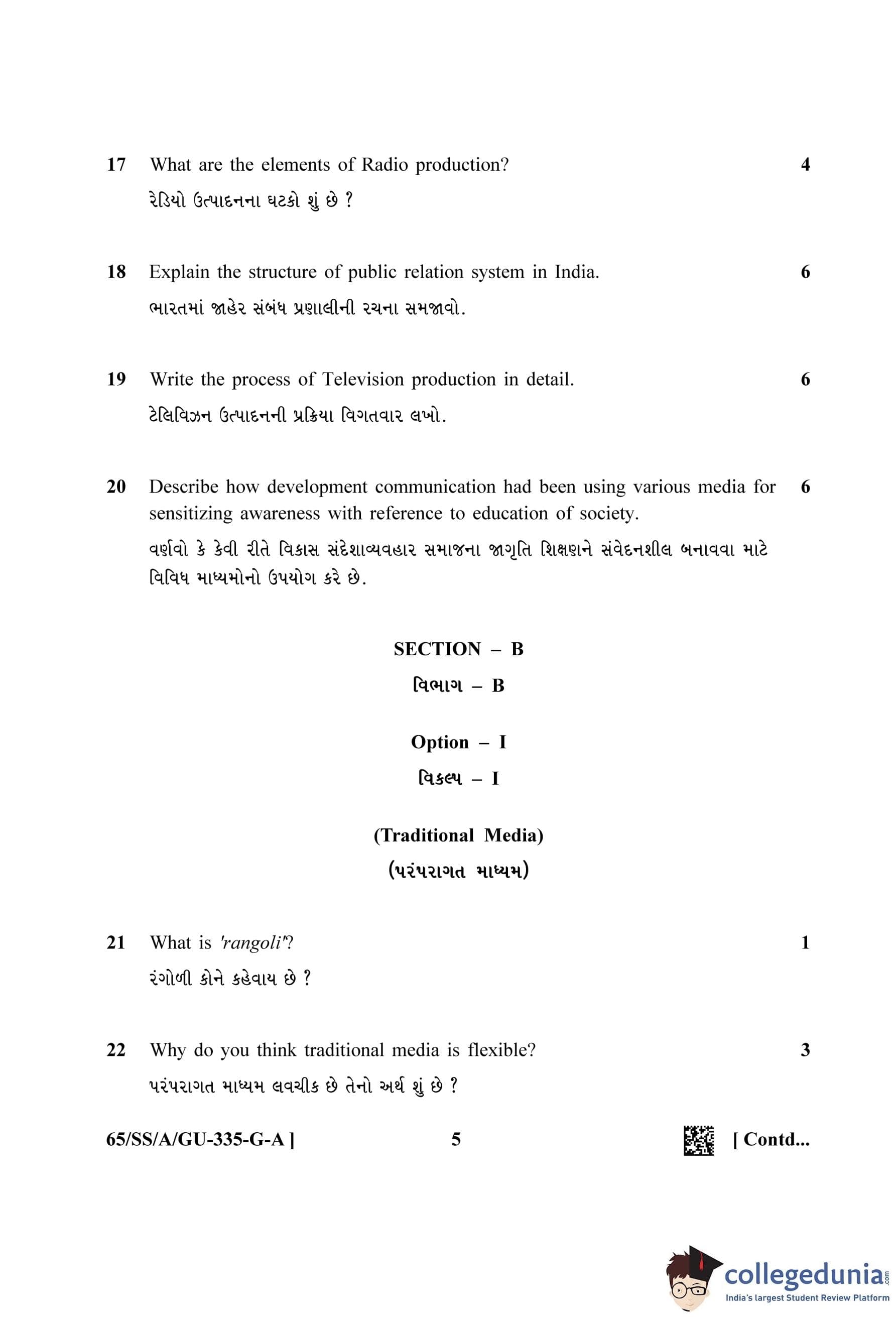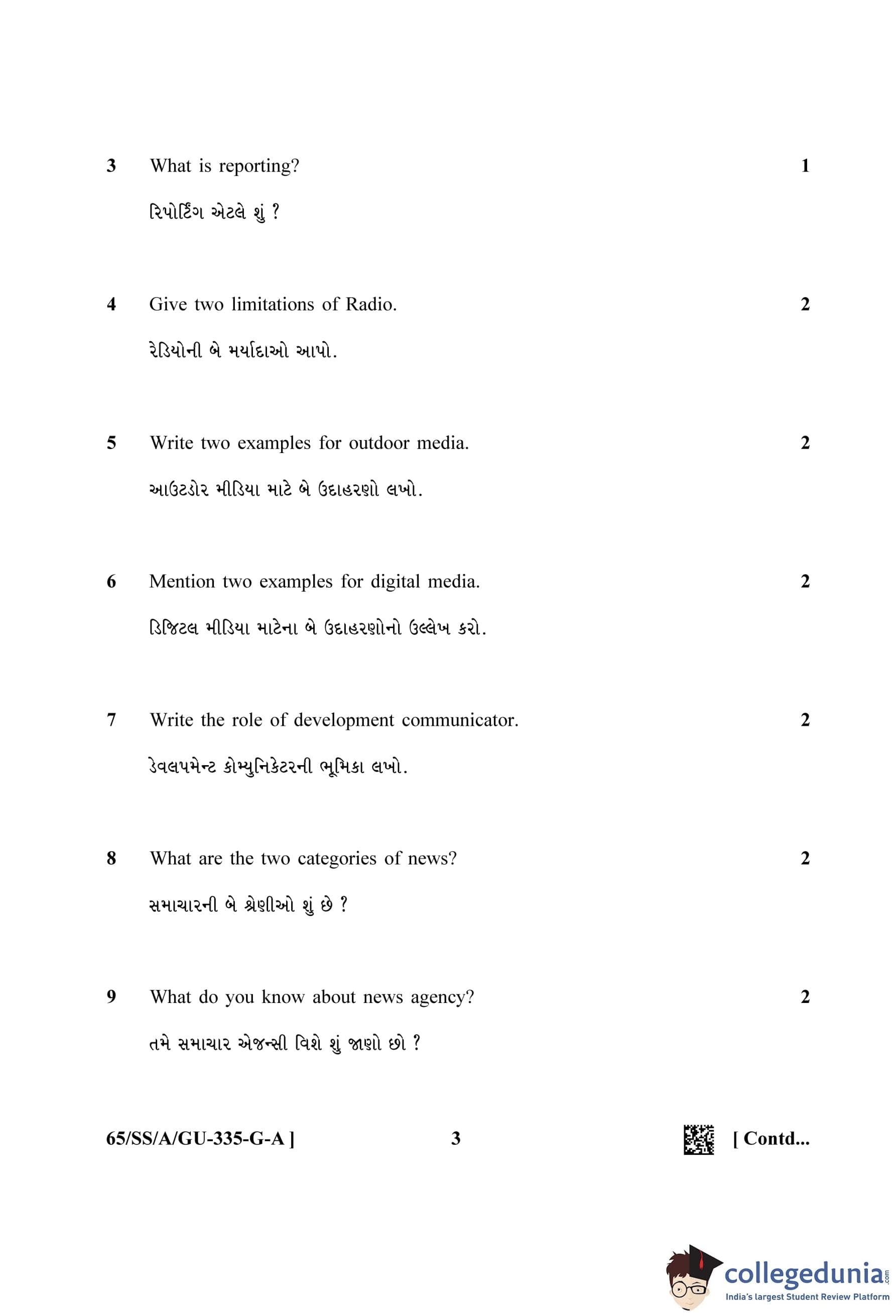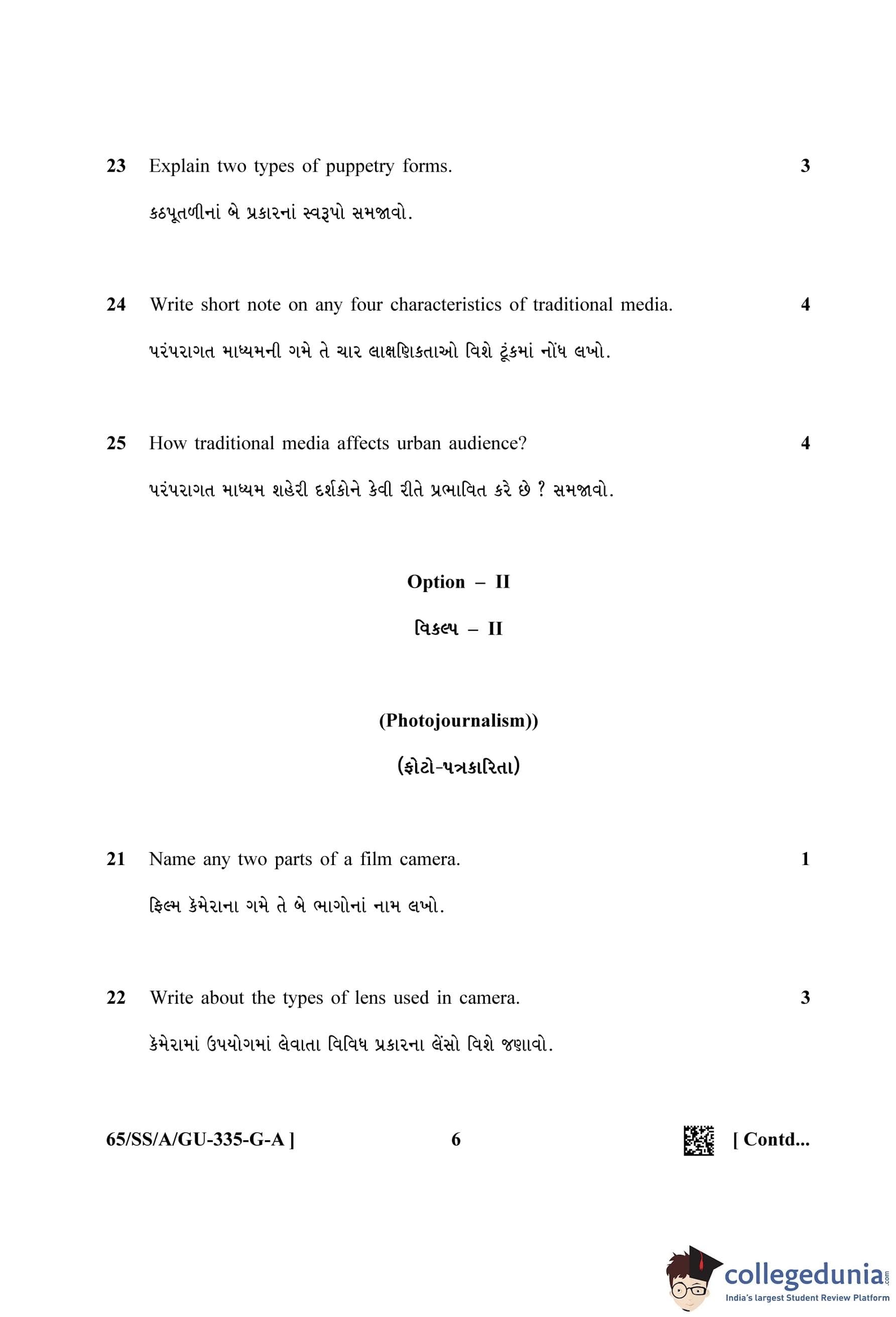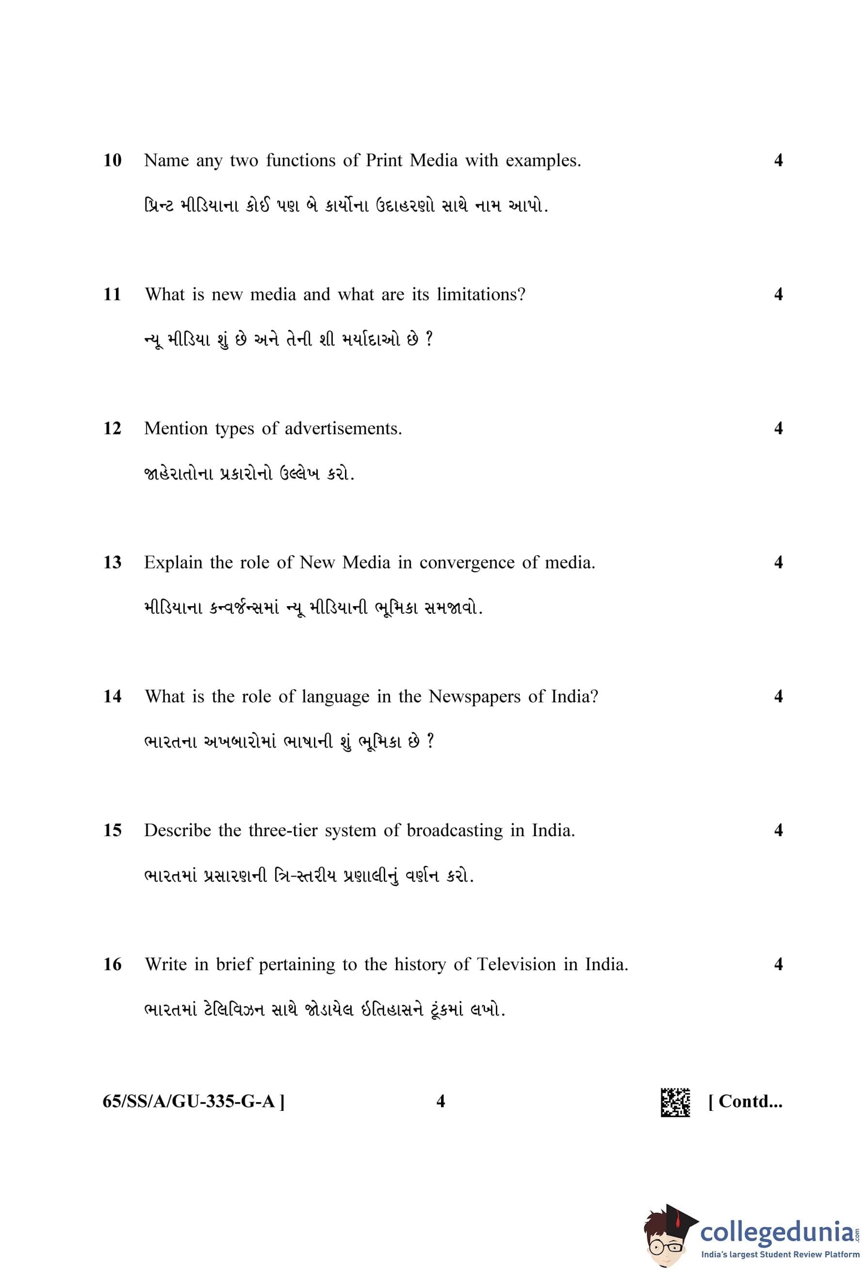 NIOS Class 12 Mass Communication Gujarati (Set A) Question Paper 2023 with Answer Key