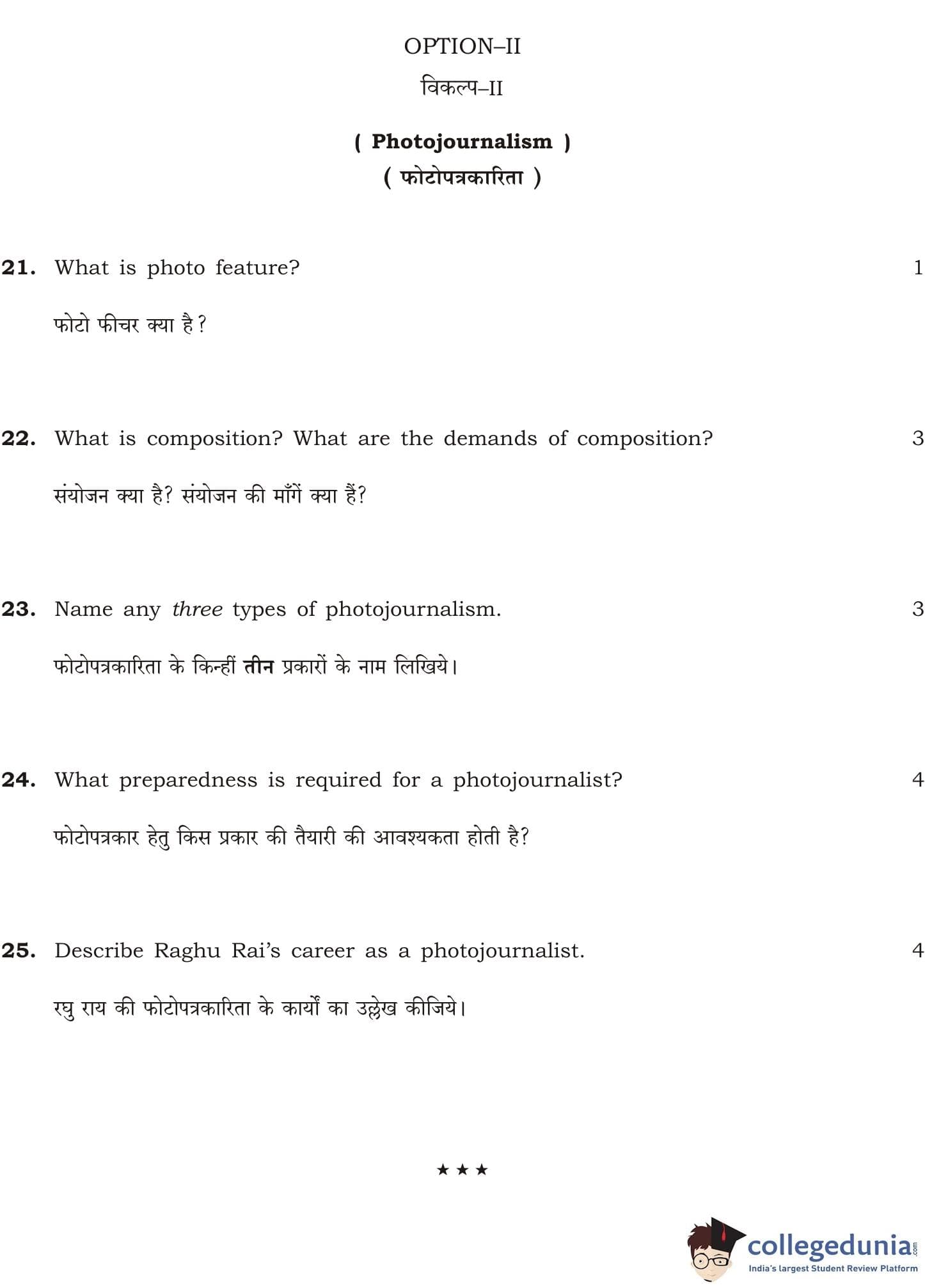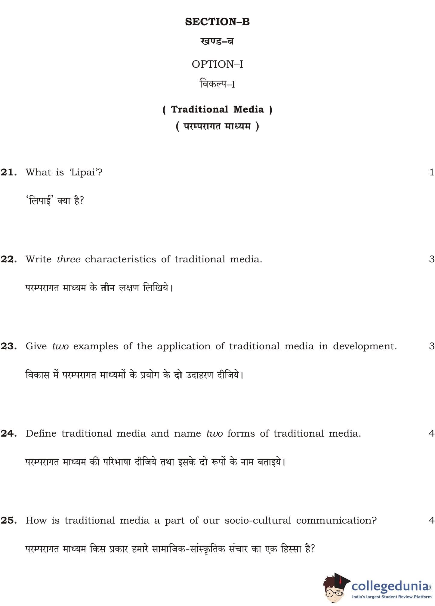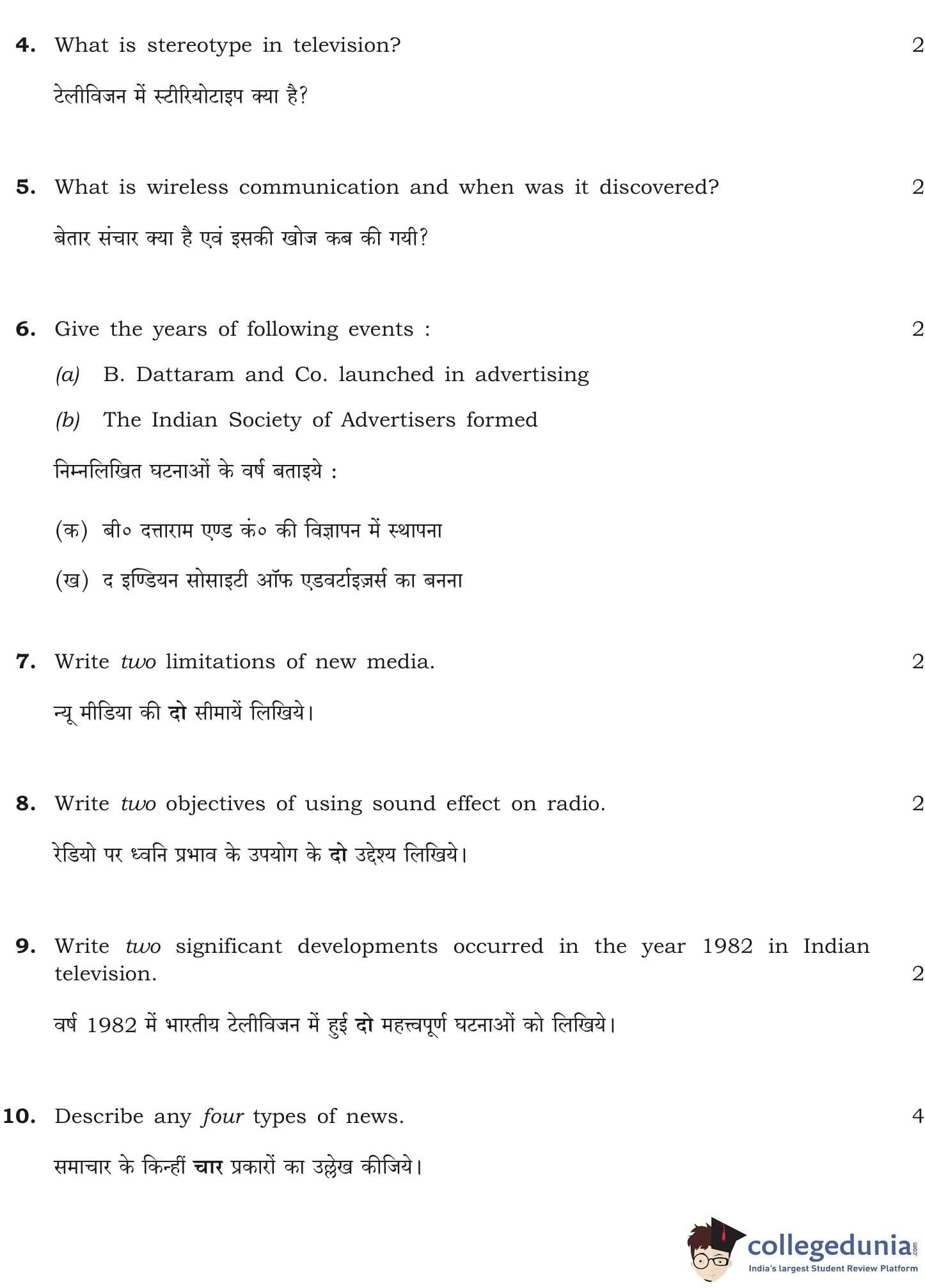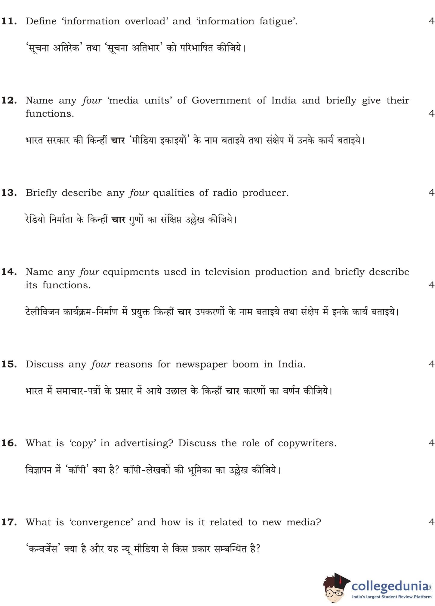NIOS Class 12 Mass Communication Question Paper 2015 with Answer Key