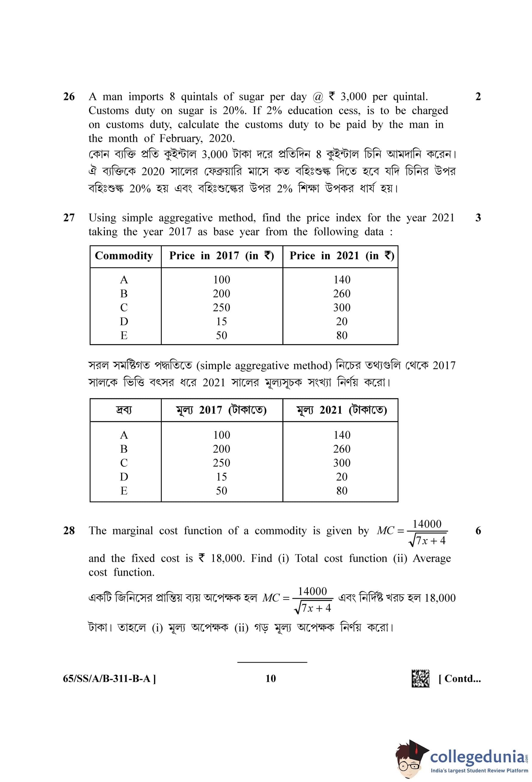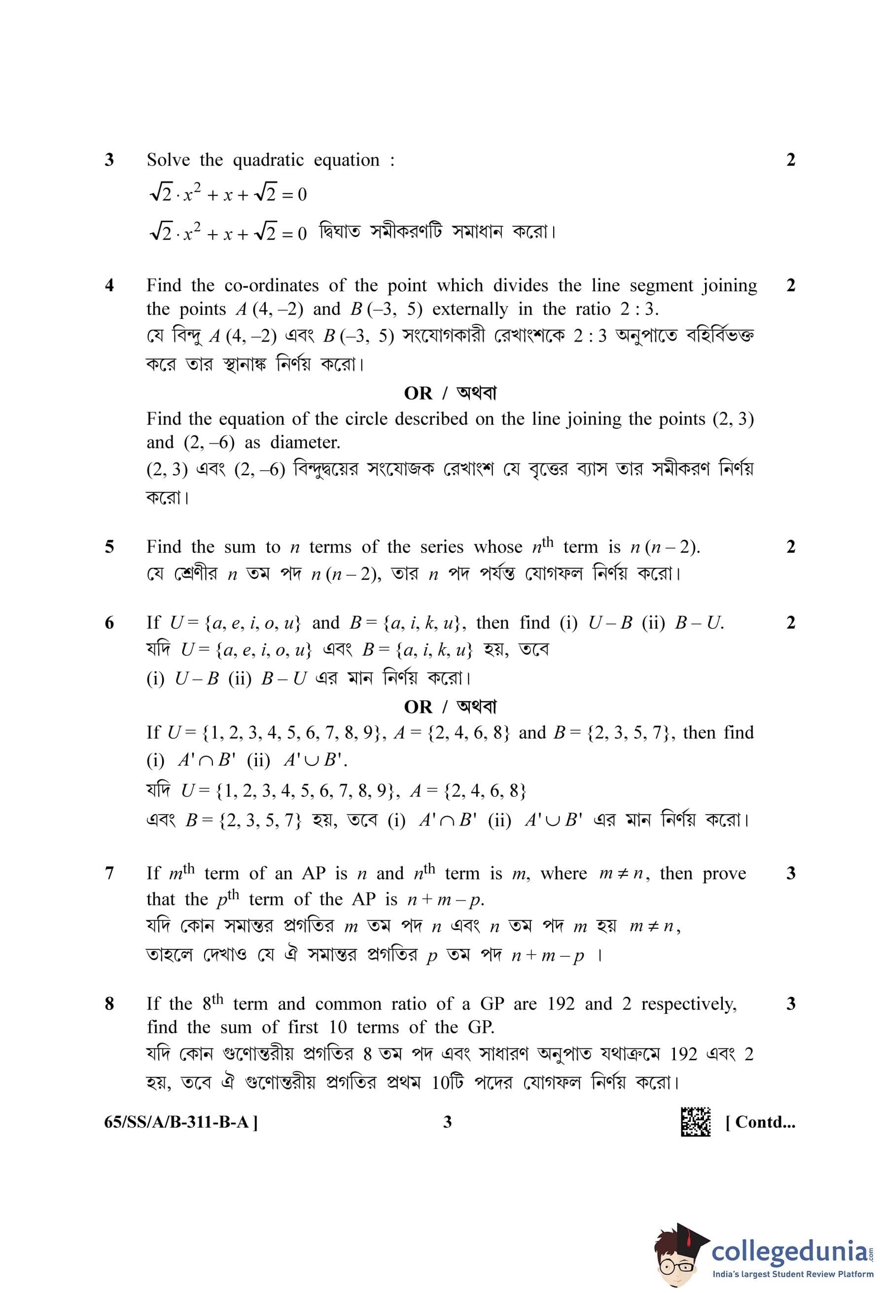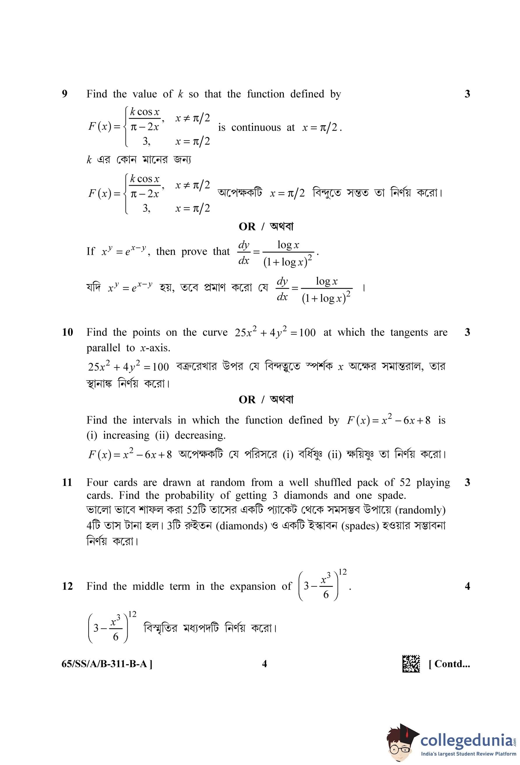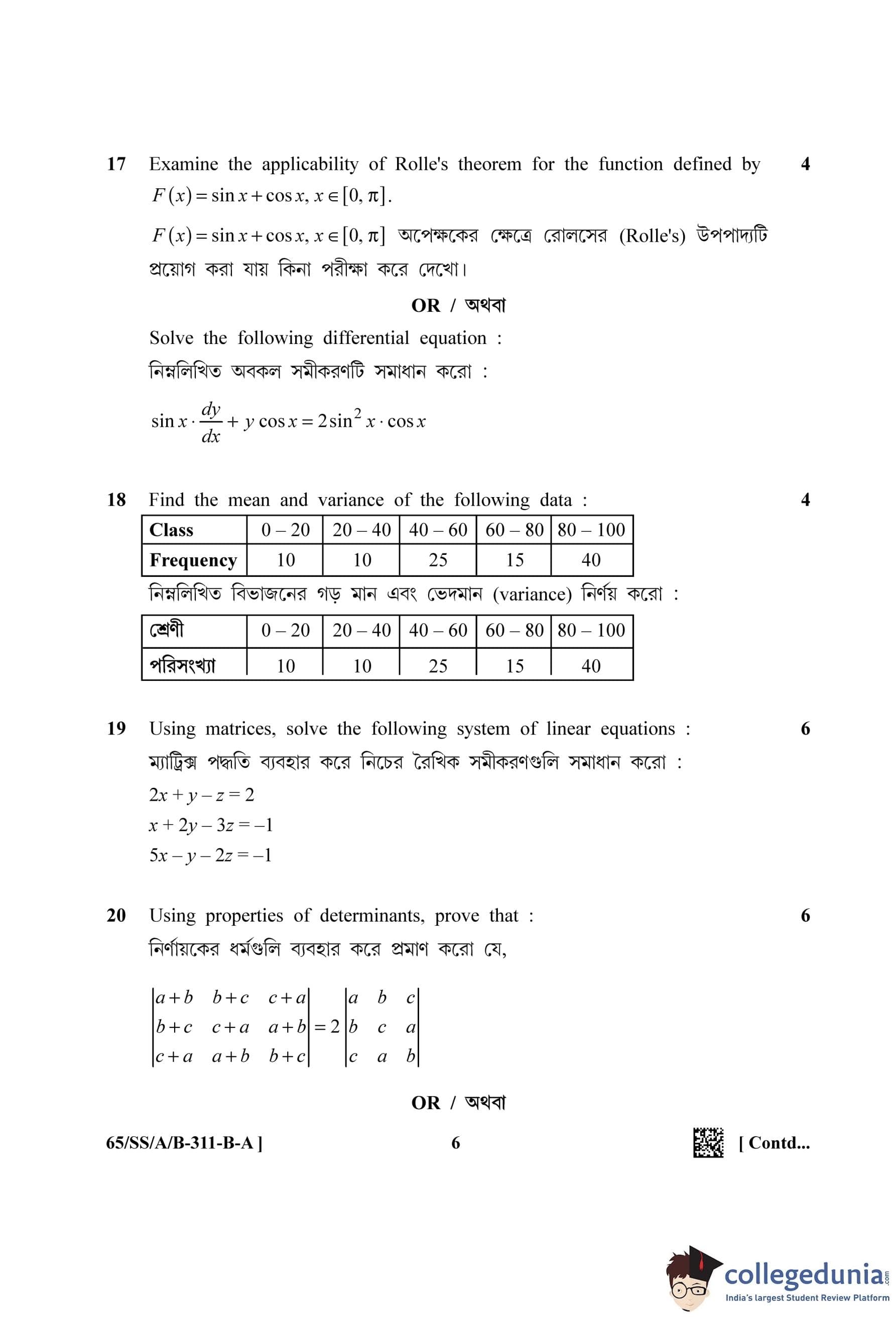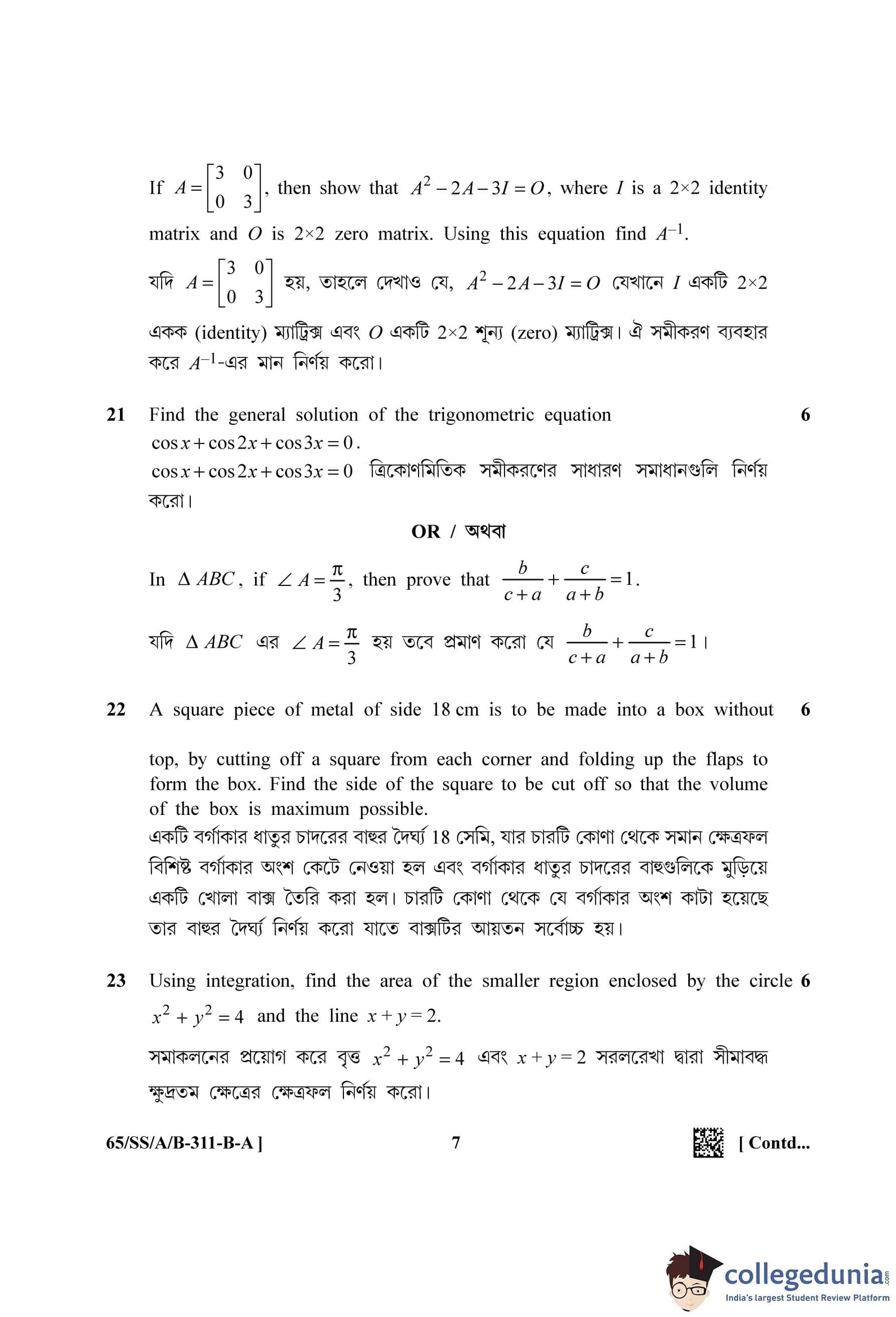 NIOS Class 12 Mathematics Bengali (Set A) Question Paper 2023 with Answer Key