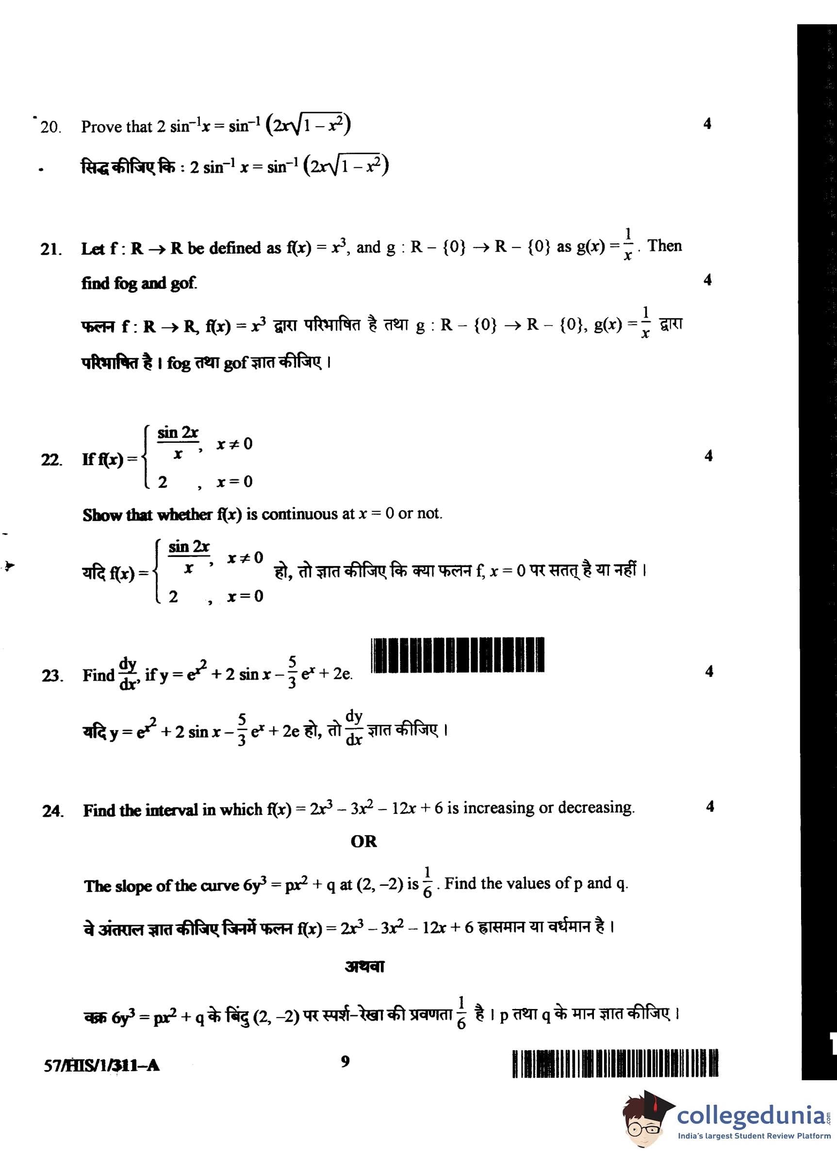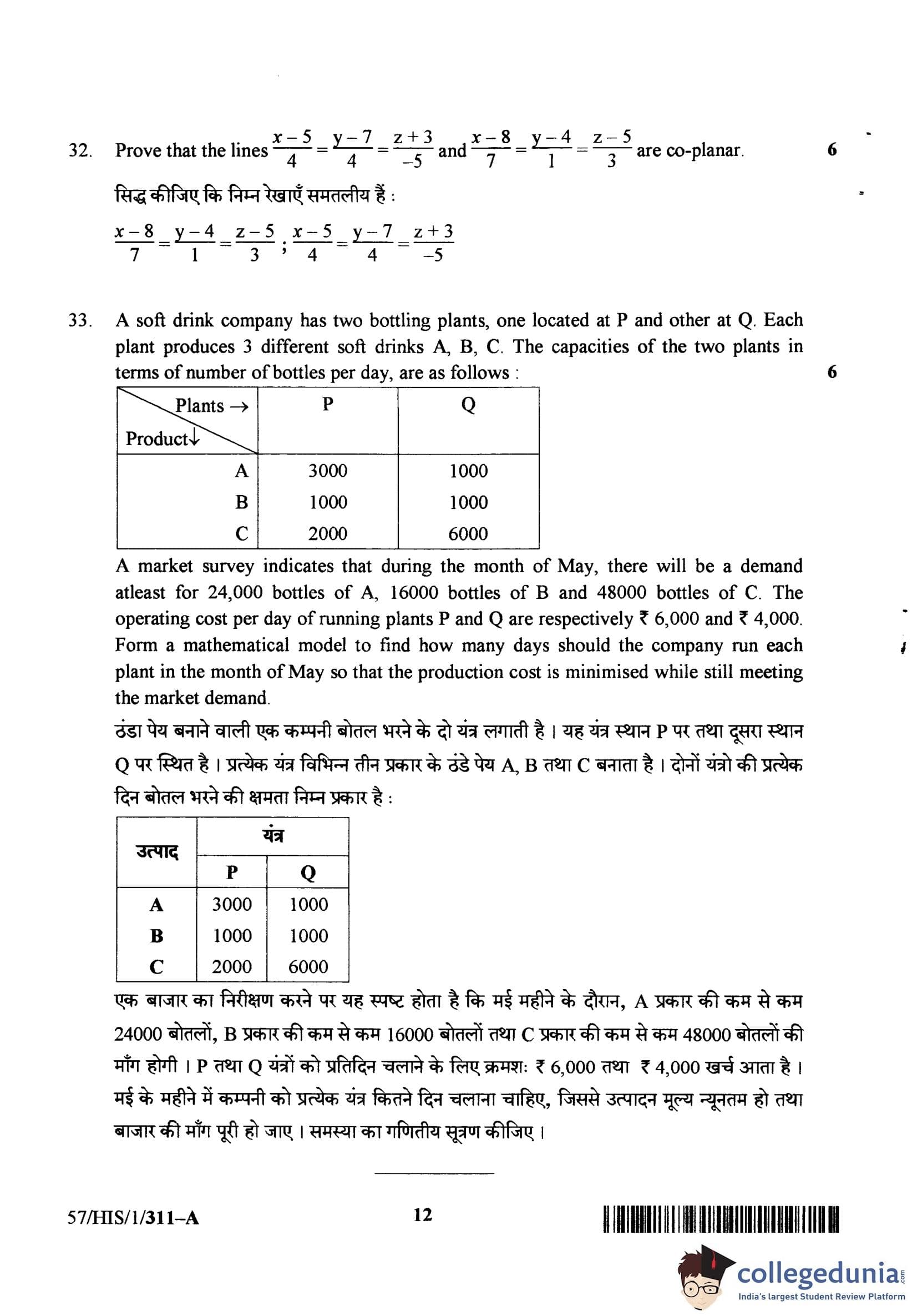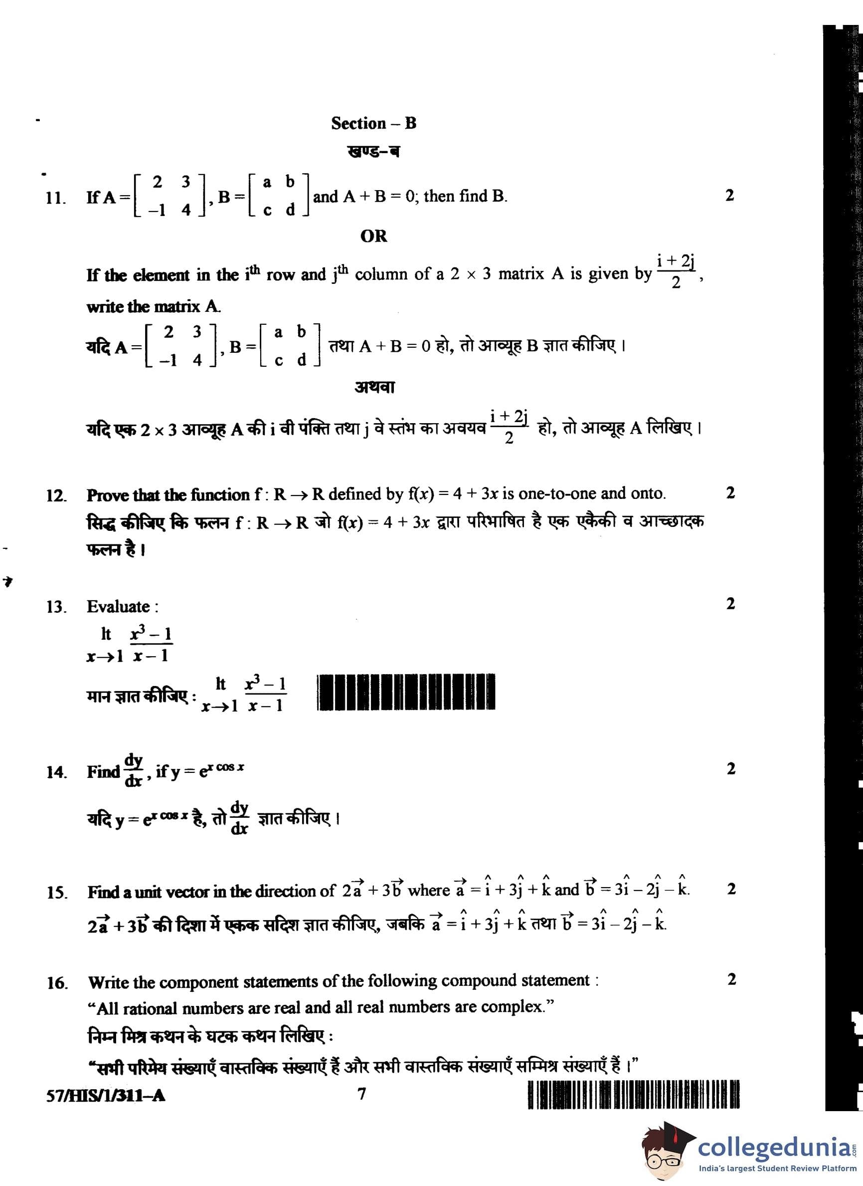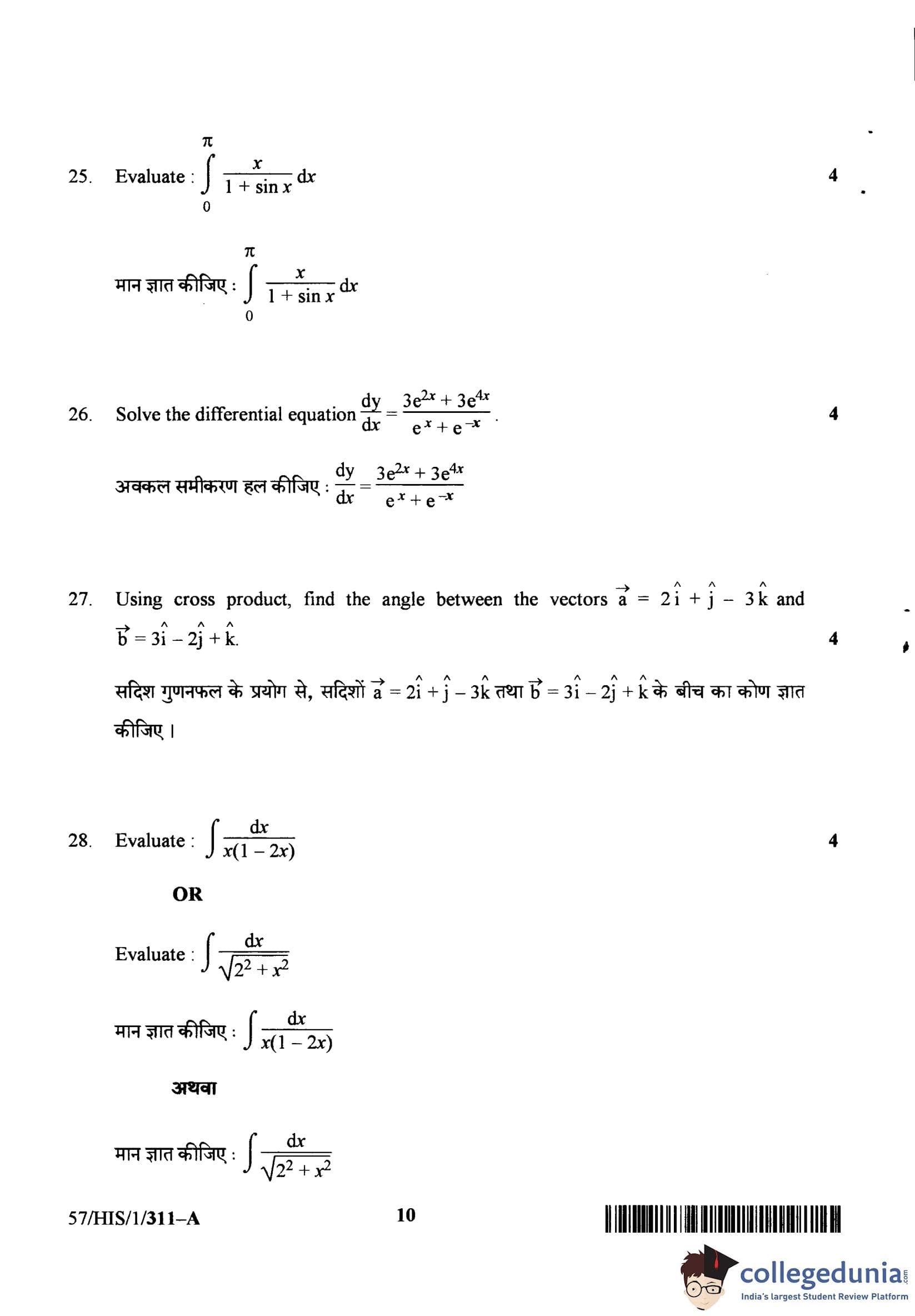NIOS Class 12 Mathematics Compartment Question Paper 2018 with Answer Key