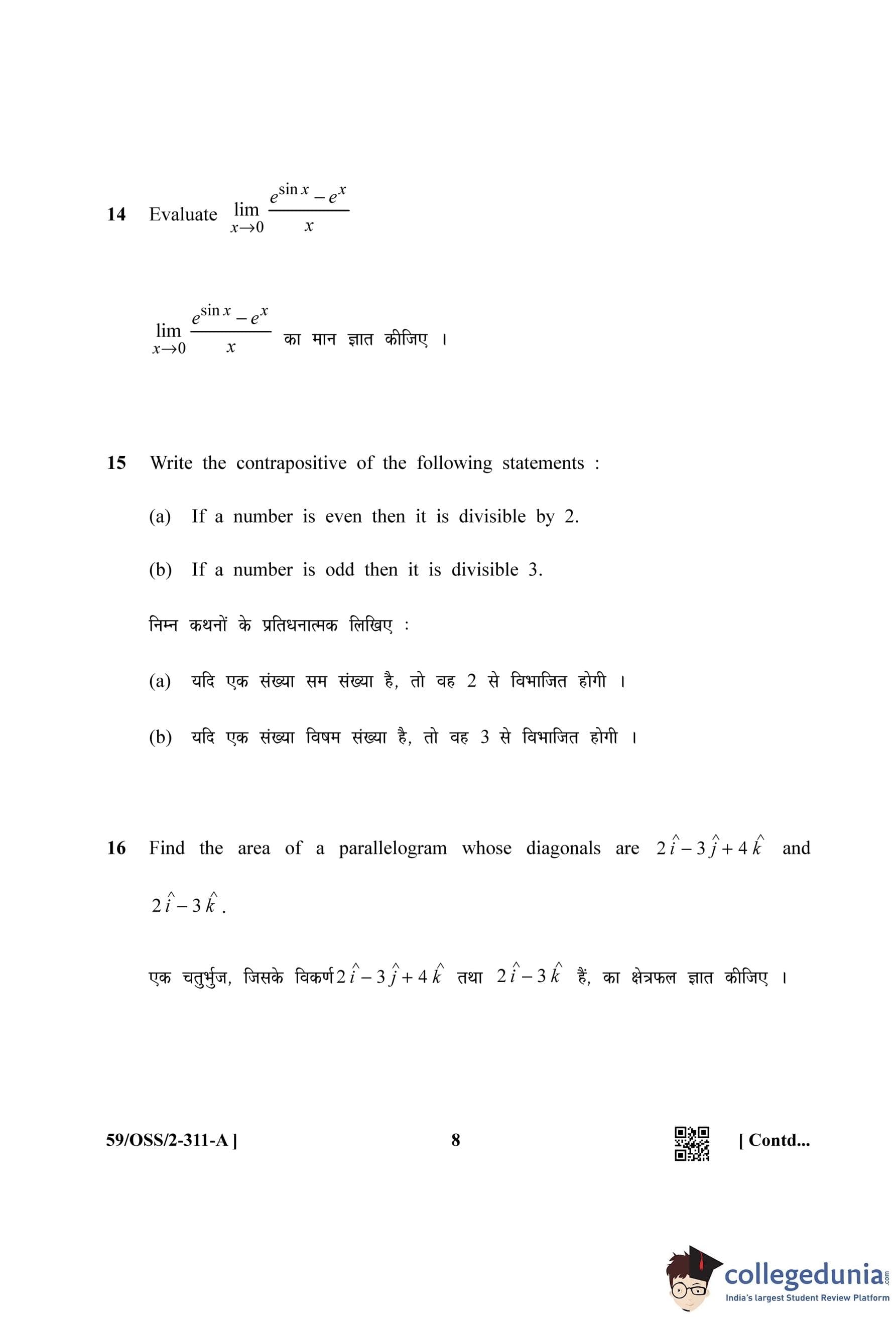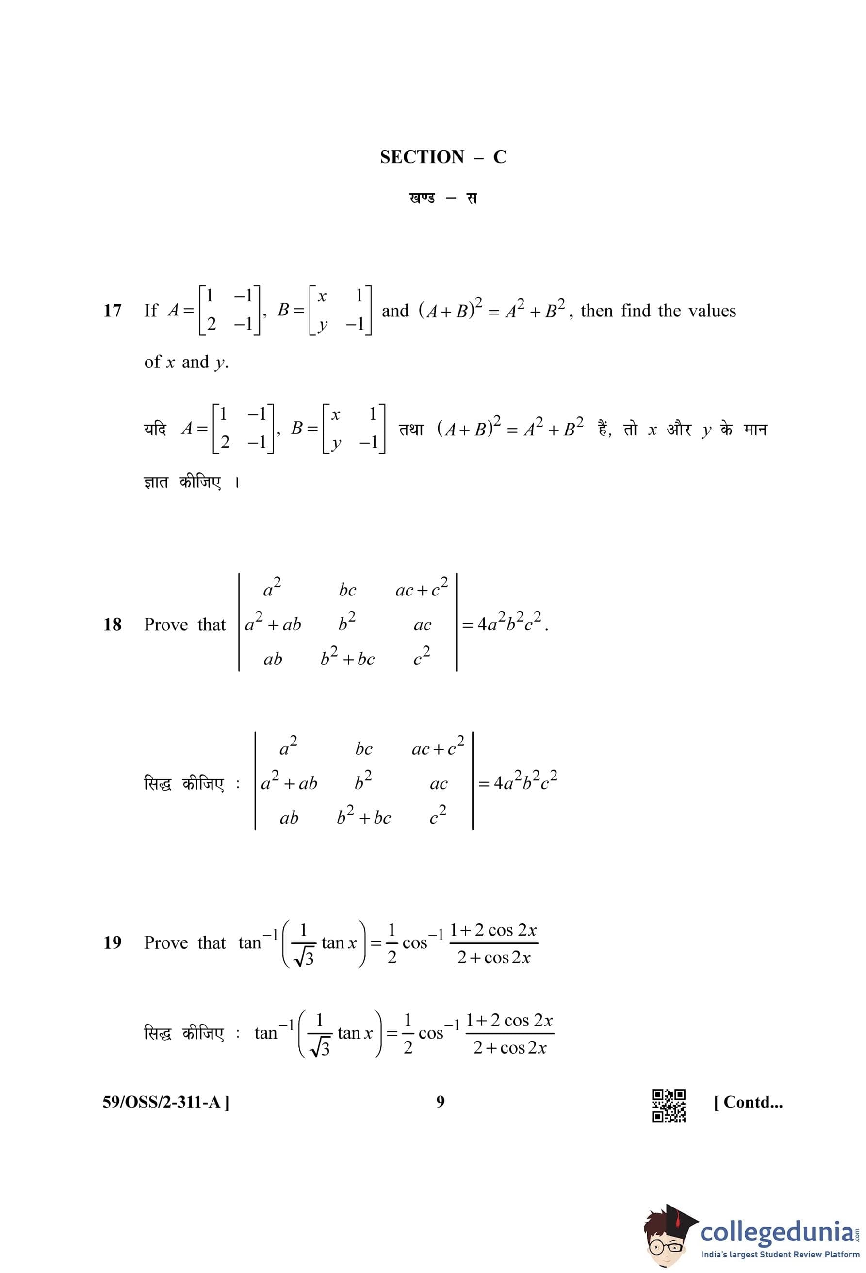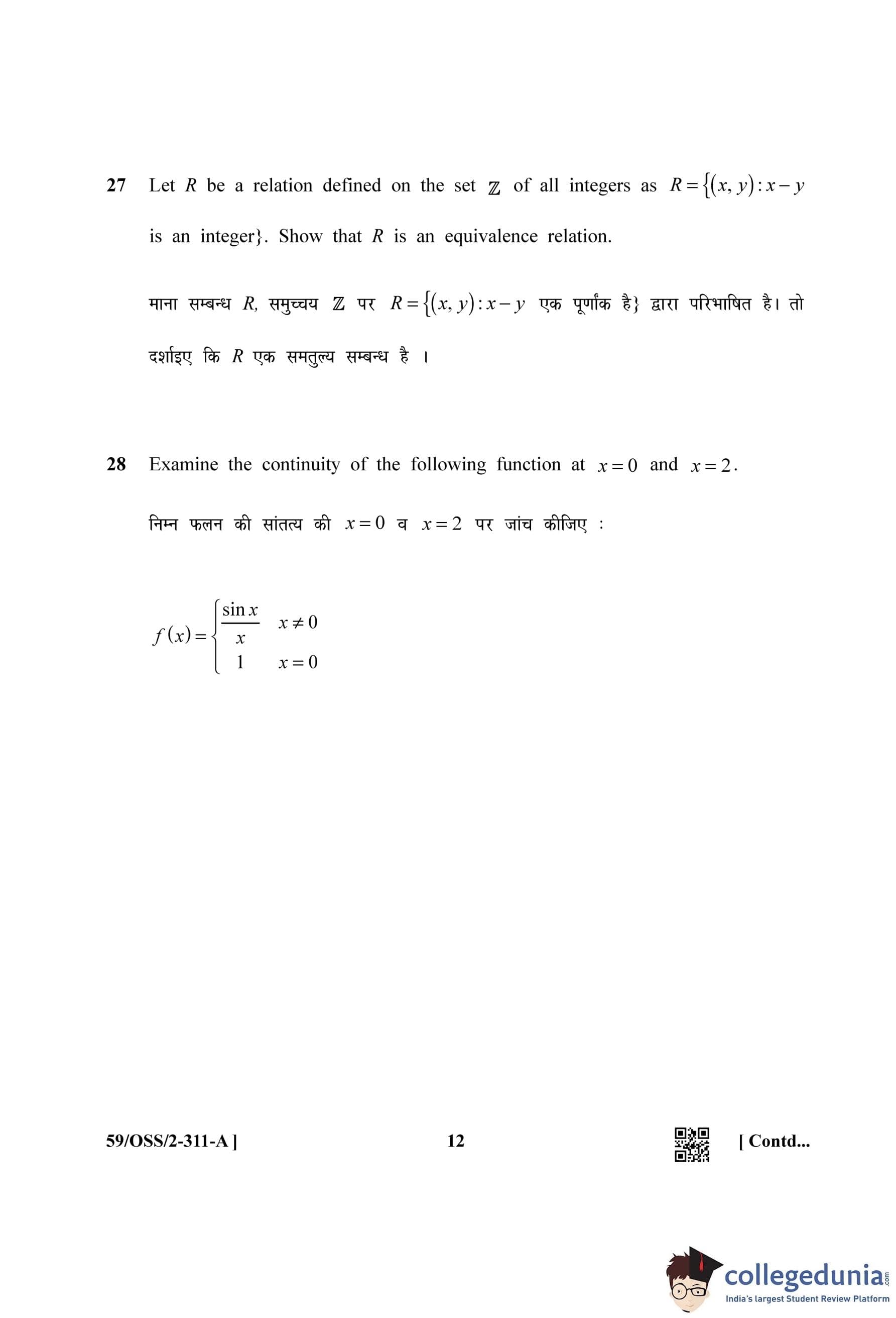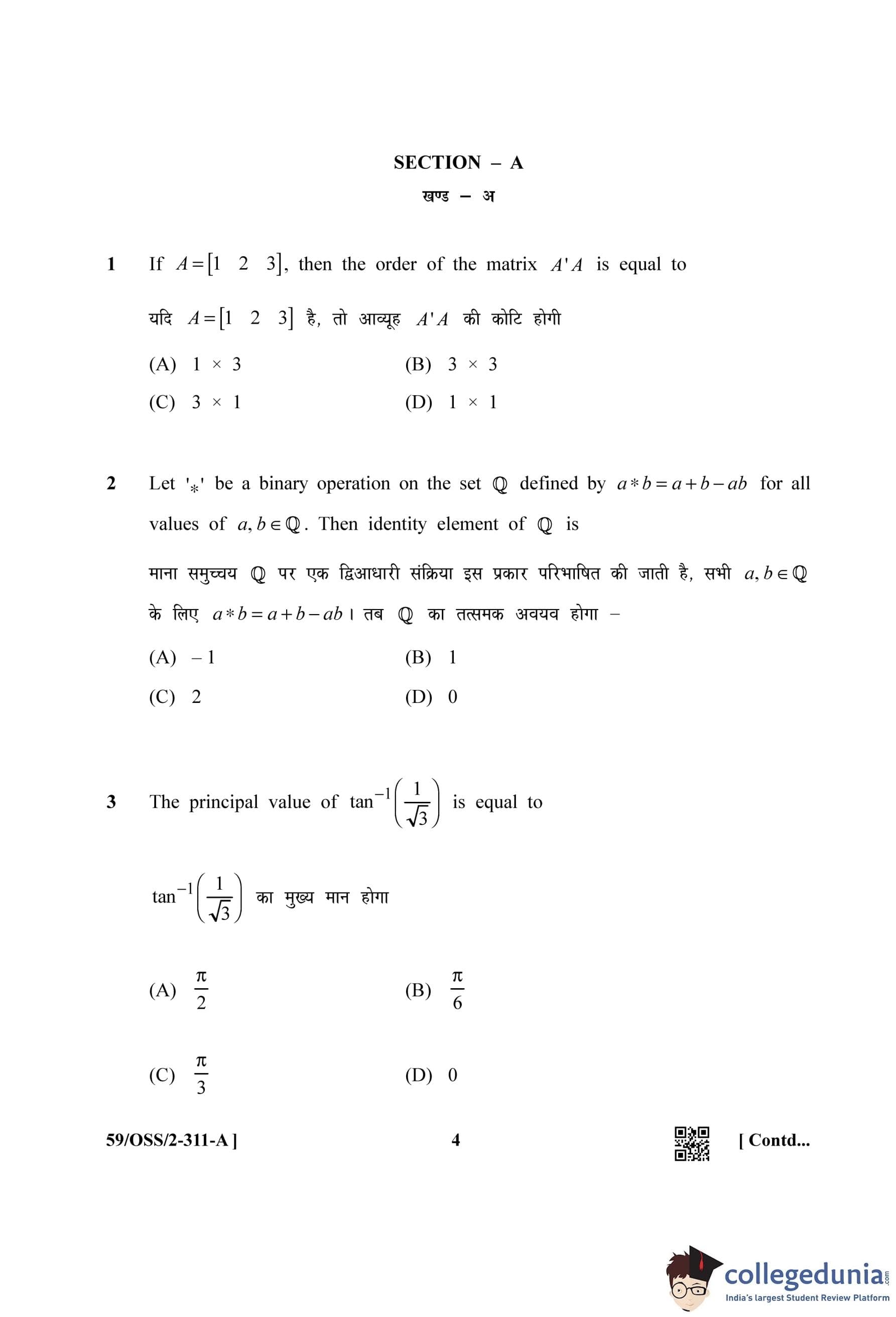 NIOS Class 12 Mathematics (Set A) Compartment Question Paper 2019 with Answer Key