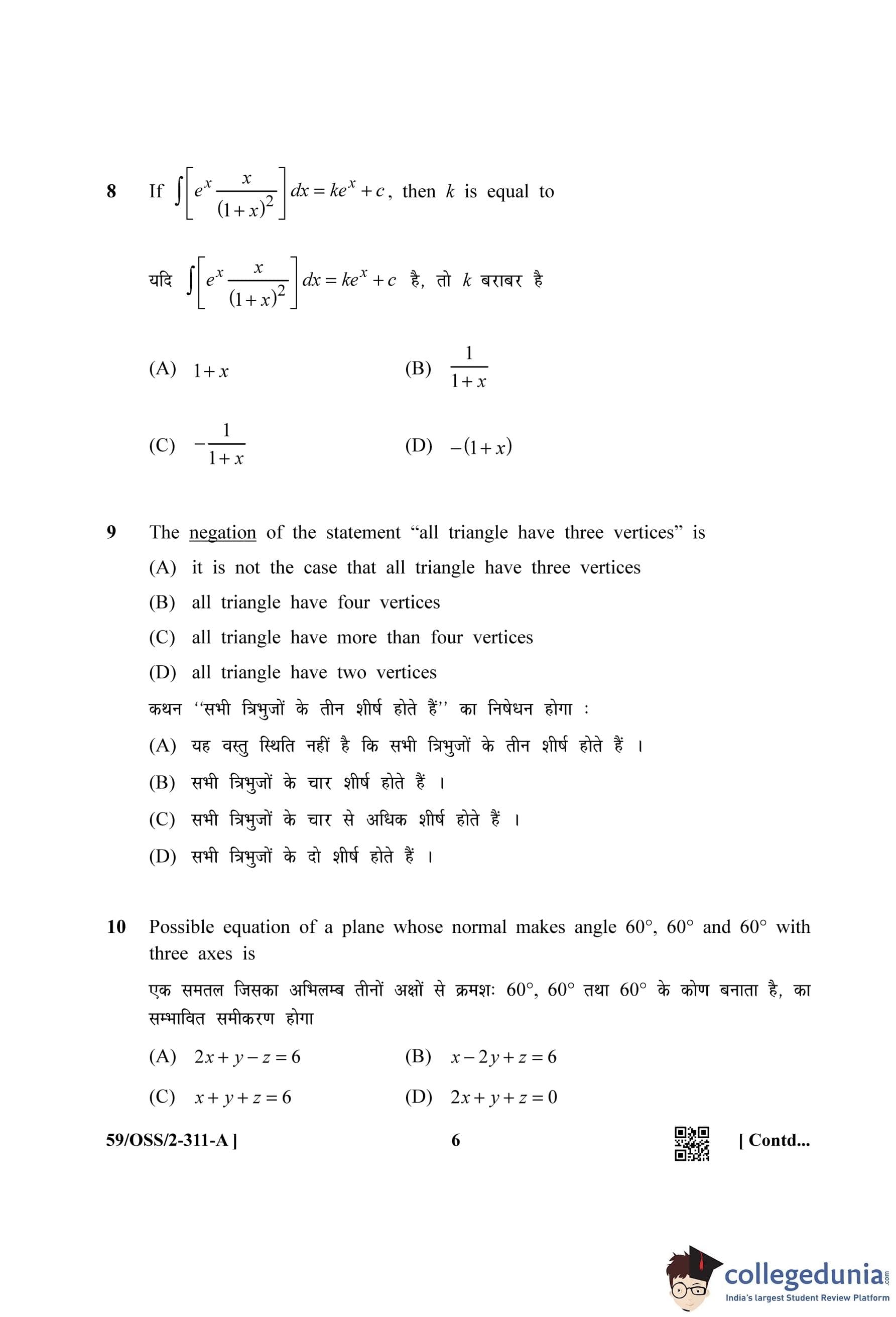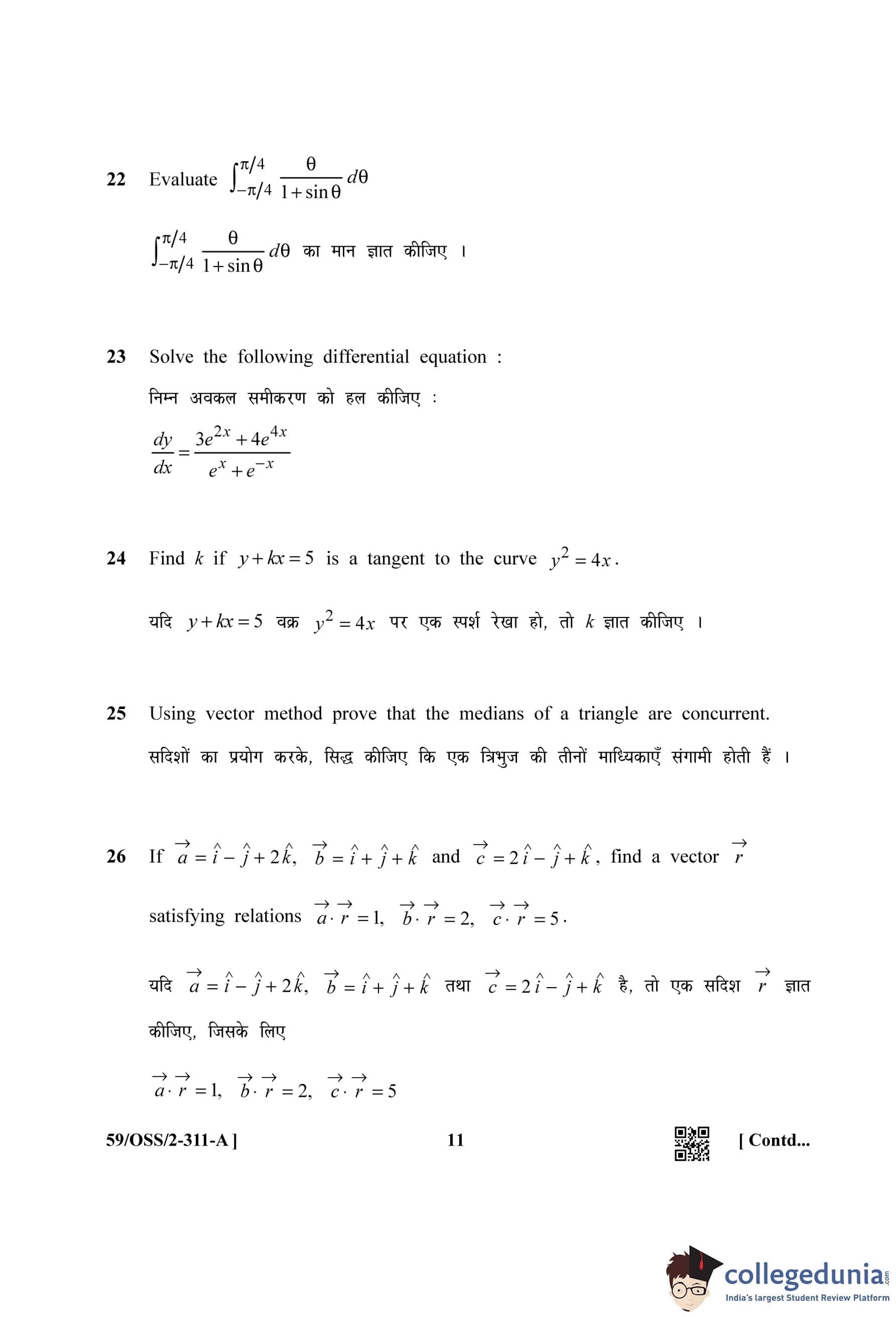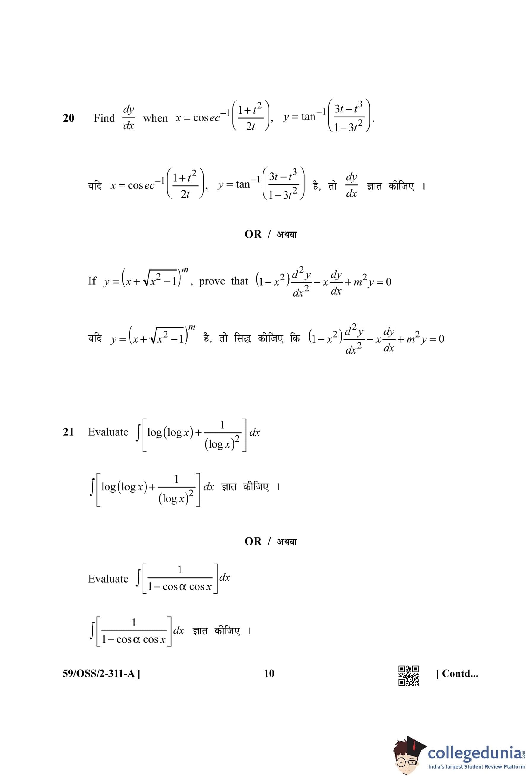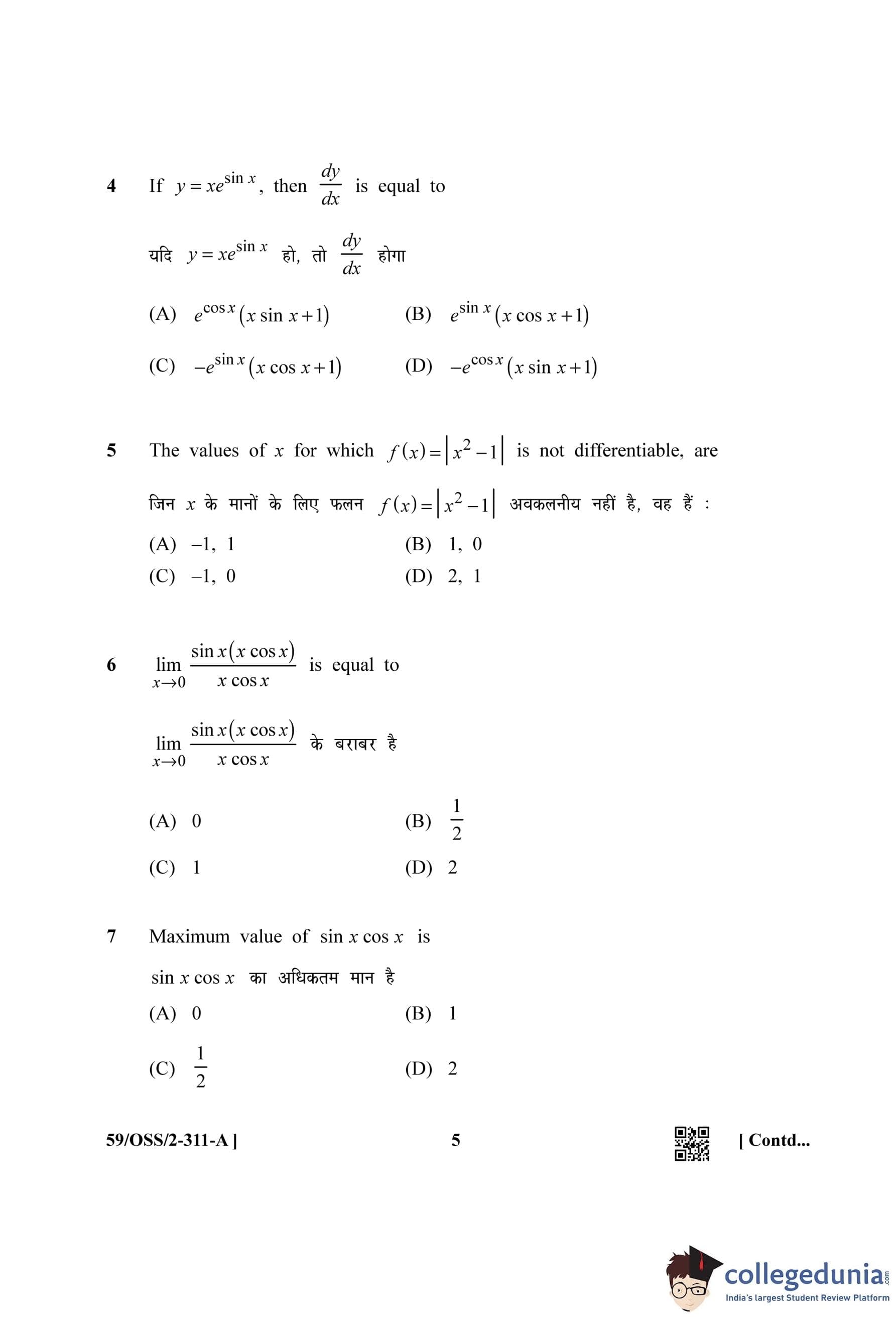 NIOS Class 12 Mathematics (Set A) Compartment Question Paper 2019 with Answer Key