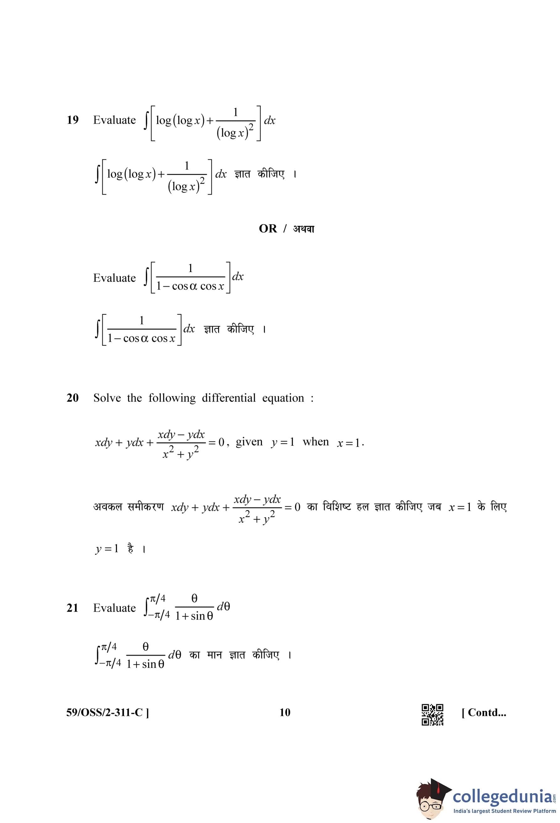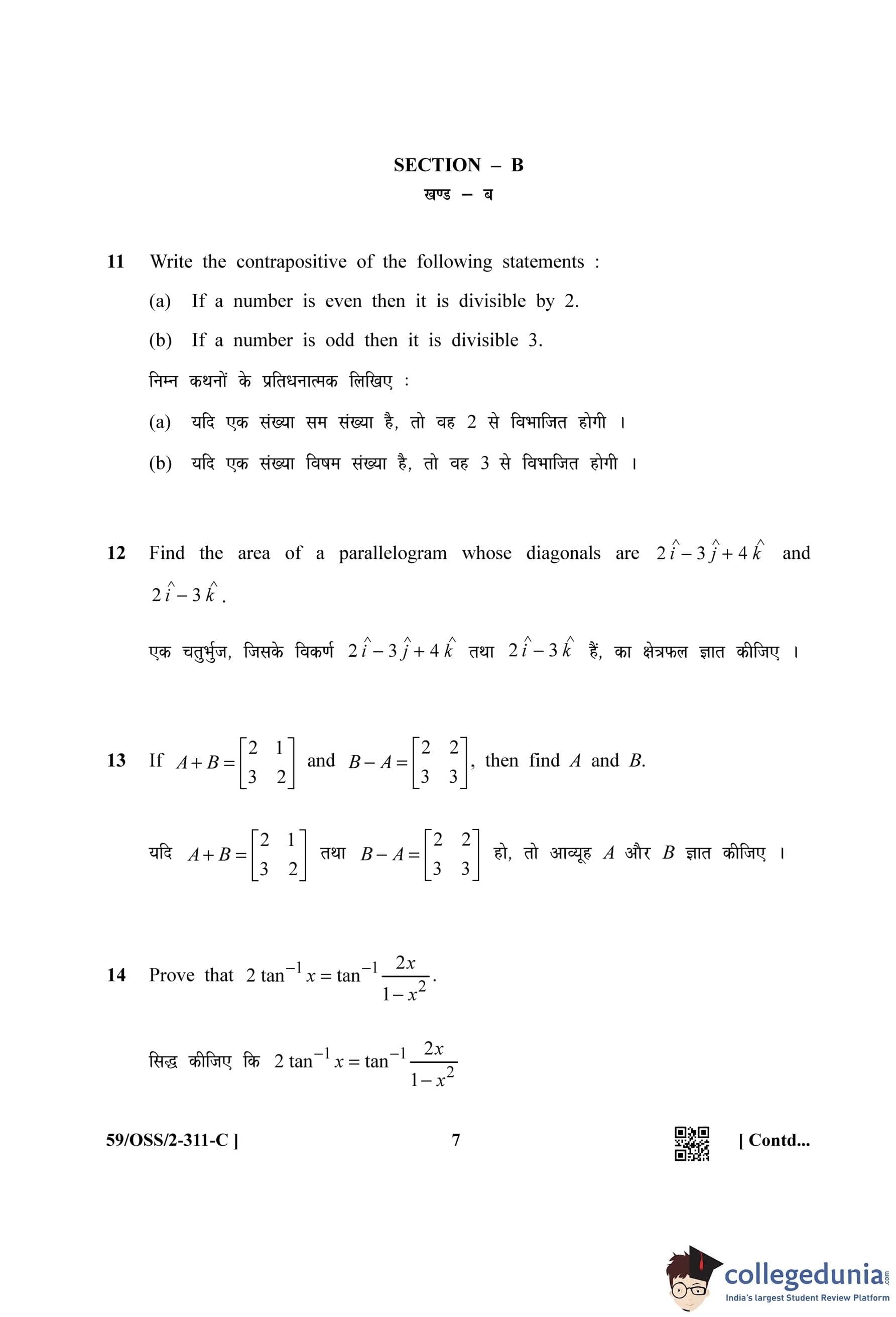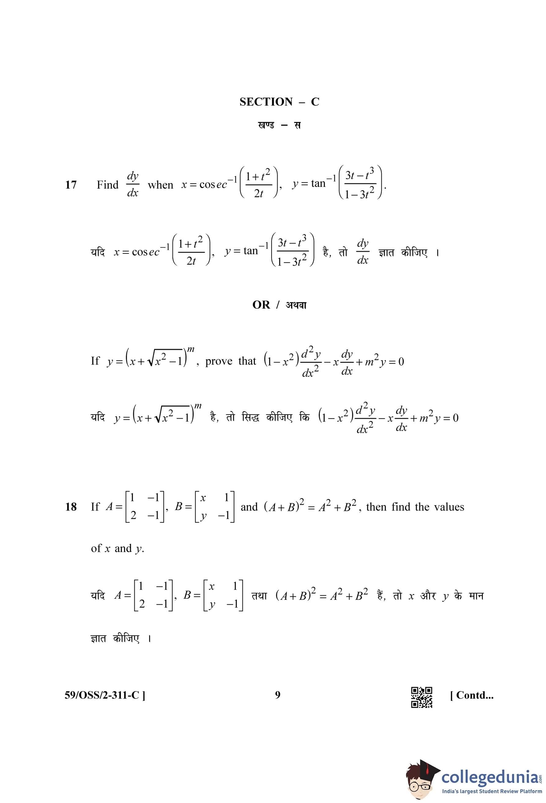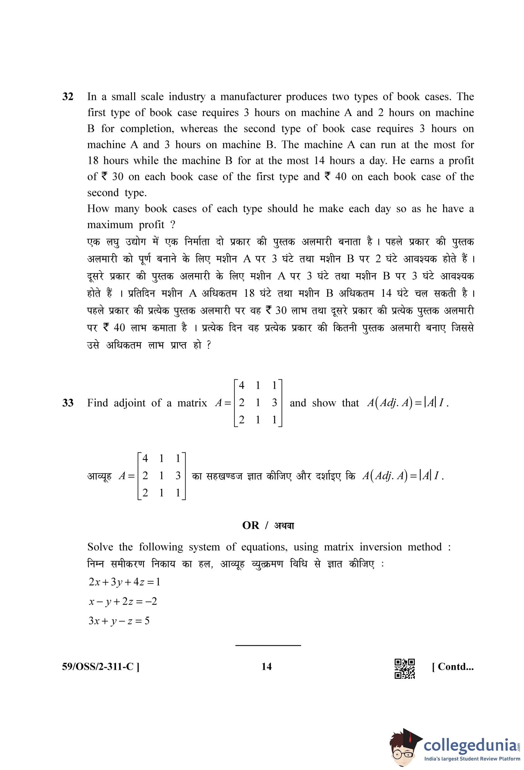 NIOS Class 12 Mathematics (Set C) Compartment Question Paper 2019 with Answer Key