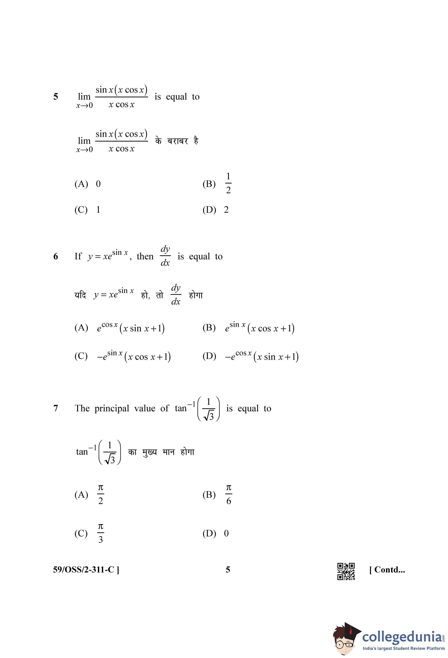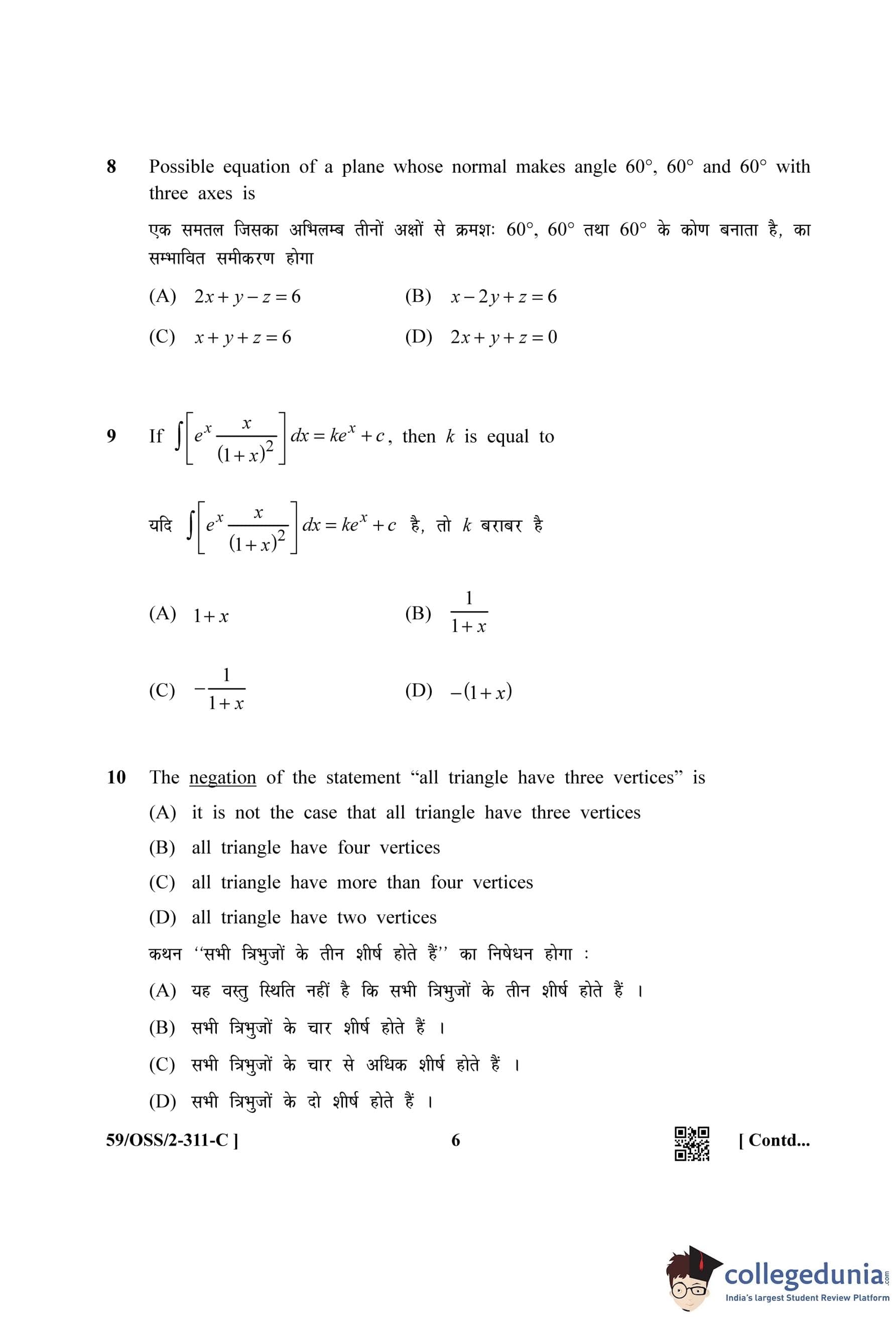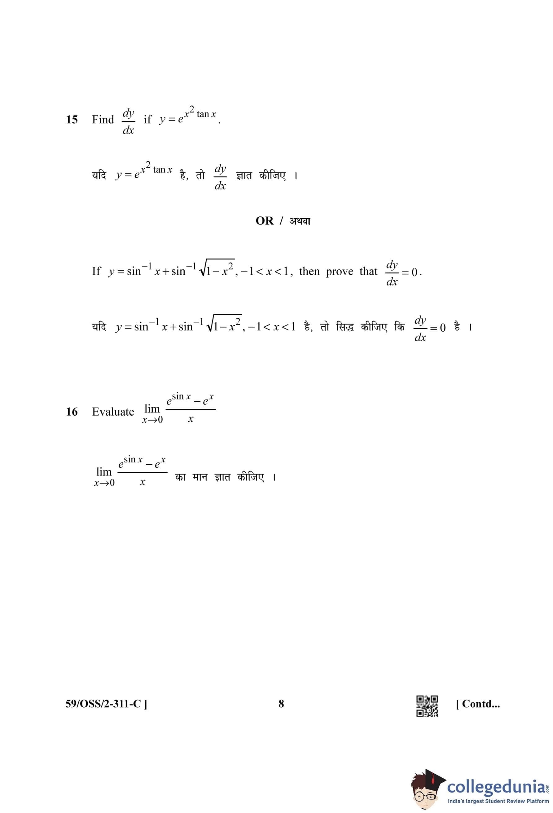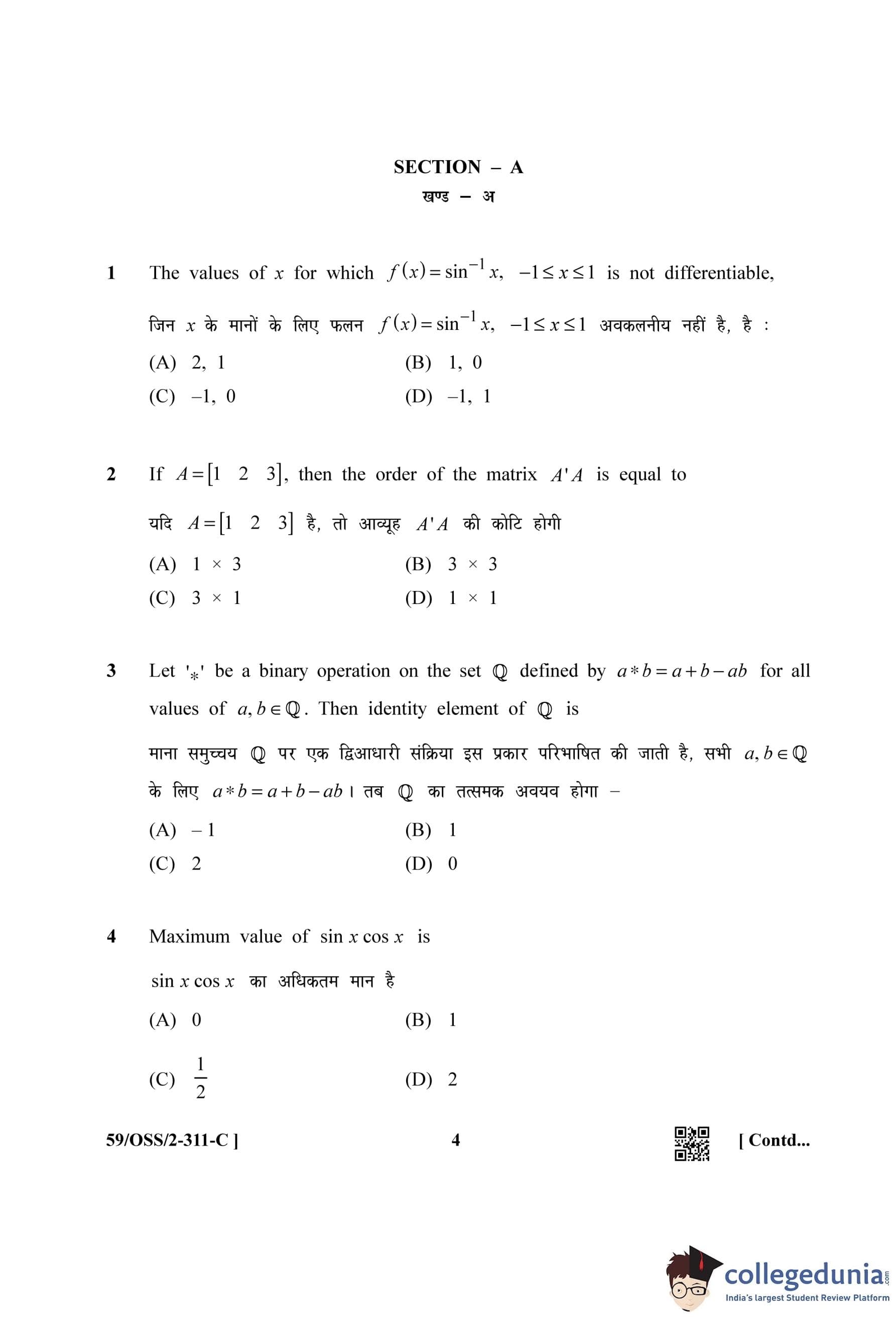 NIOS Class 12 Mathematics (Set C) Compartment Question Paper 2019 with Answer Key