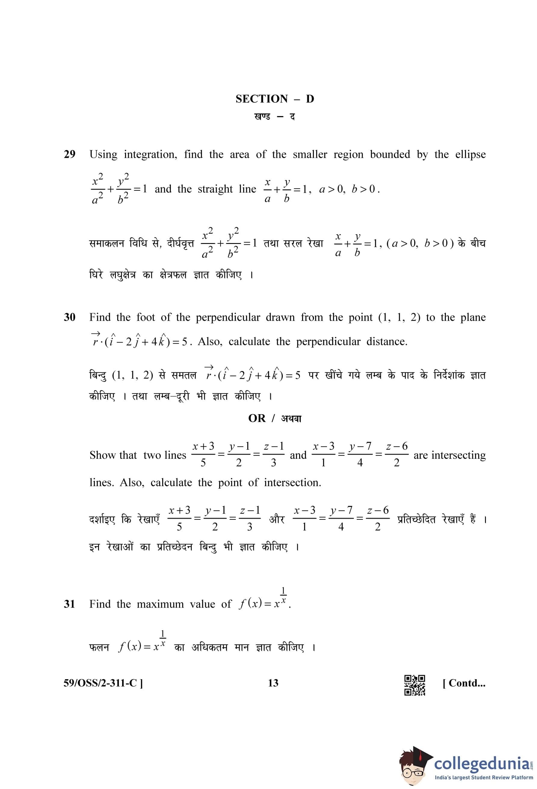 NIOS Class 12 Mathematics Compartment Question Paper 2019 with Answer Key pdf (Set C) is available for download here. The exam was conducted by National Institute of Open Schooling on October 23, 2019 in the Afternoon Session 2:30 PM to 5:30 PM. The question paper comprised a total of 33 questions divided among 4 sections.