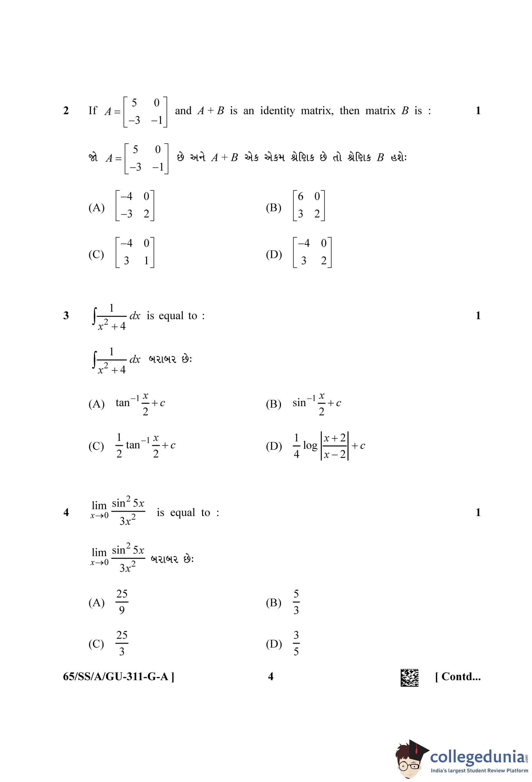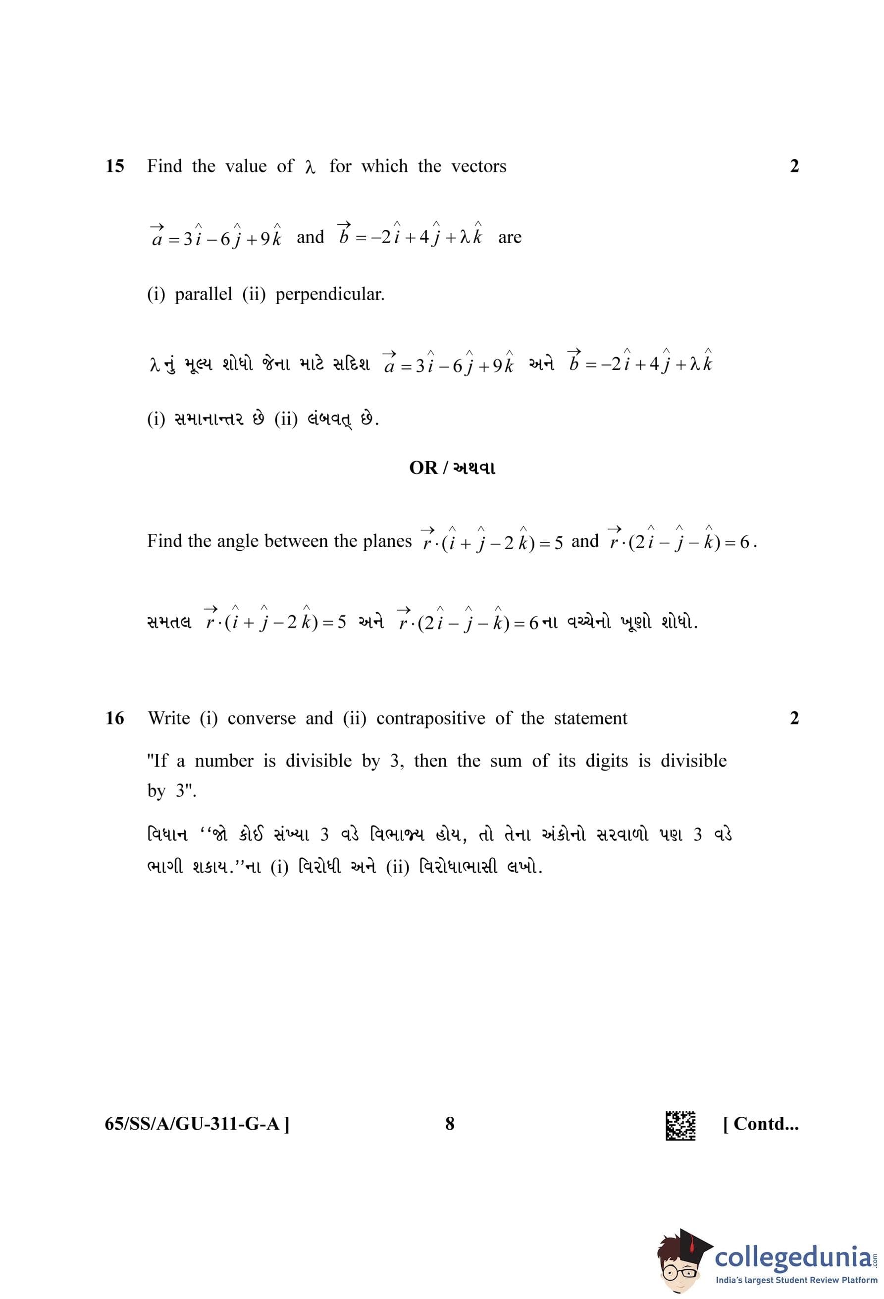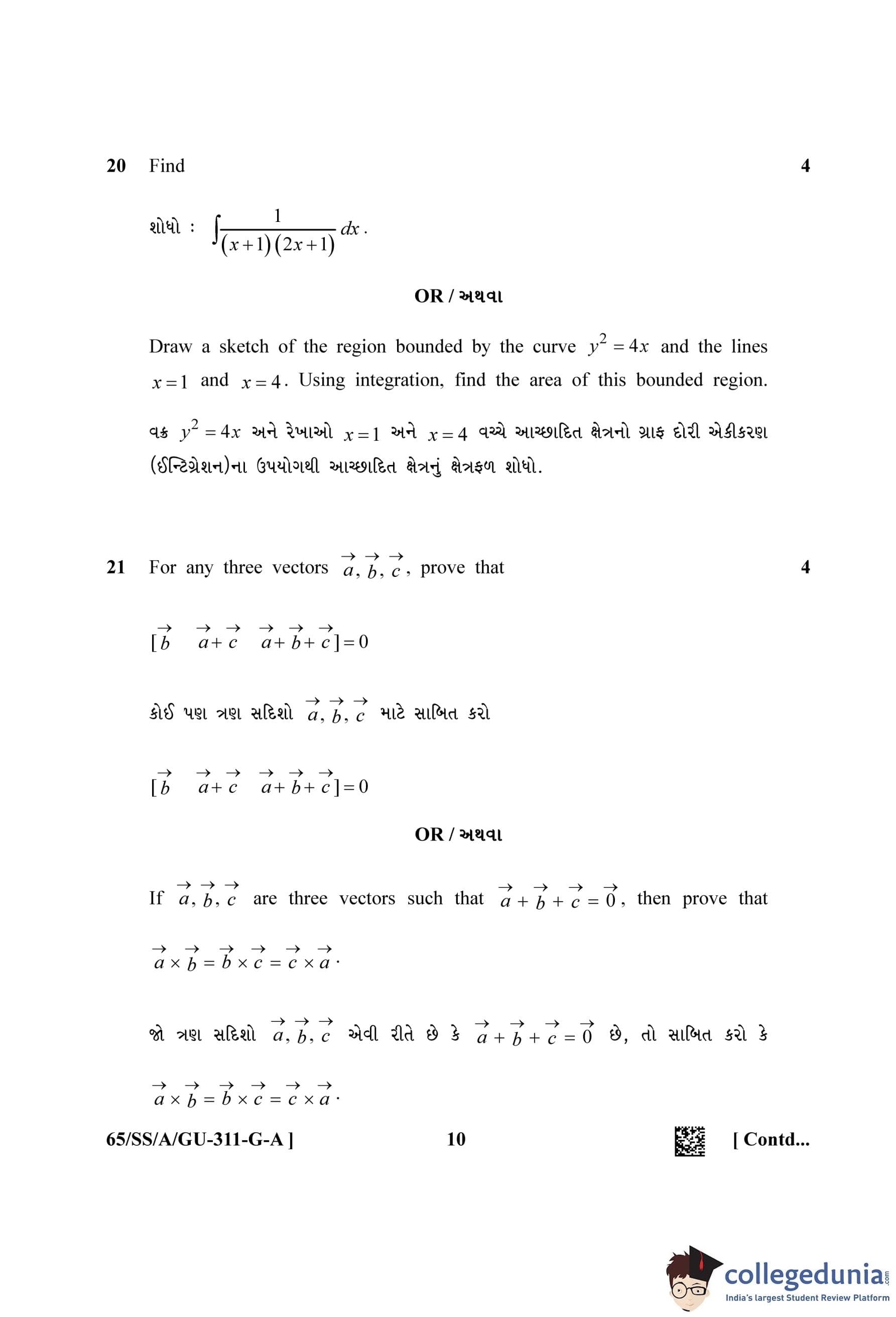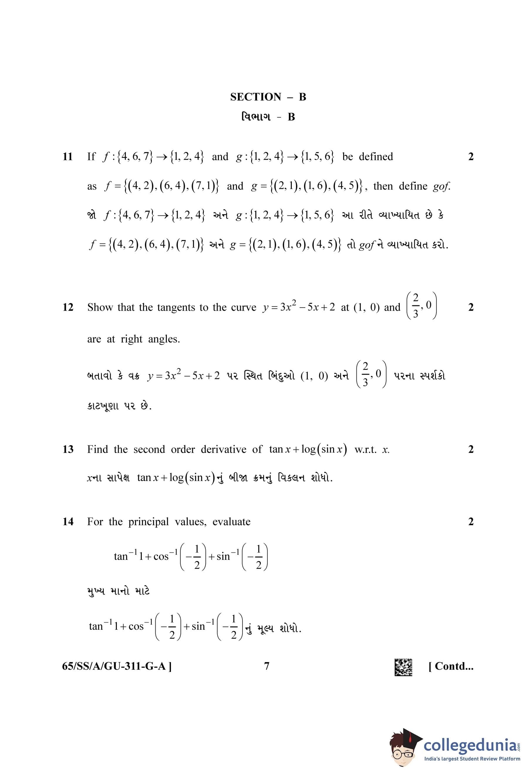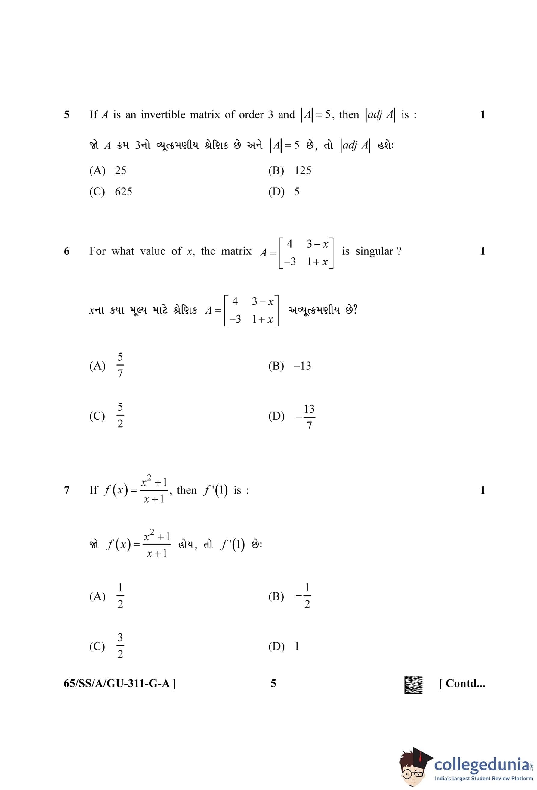 NIOS Class 12 Mathematics Gujarati (Set A) Question Paper 2023 with Answer Key