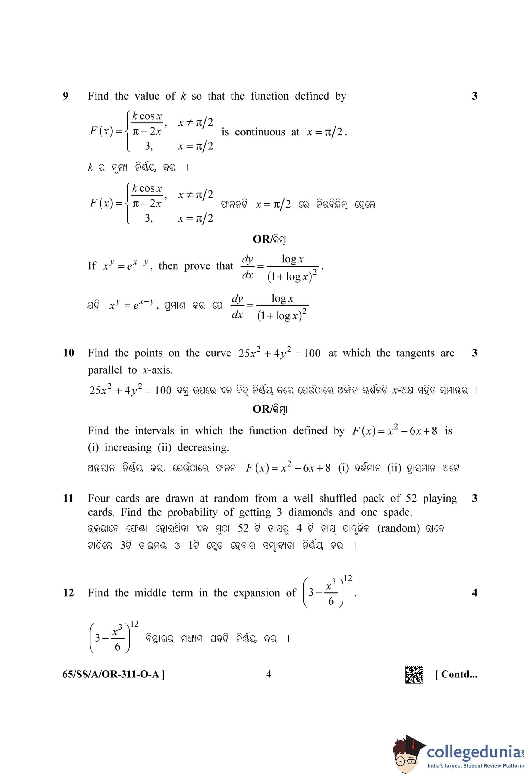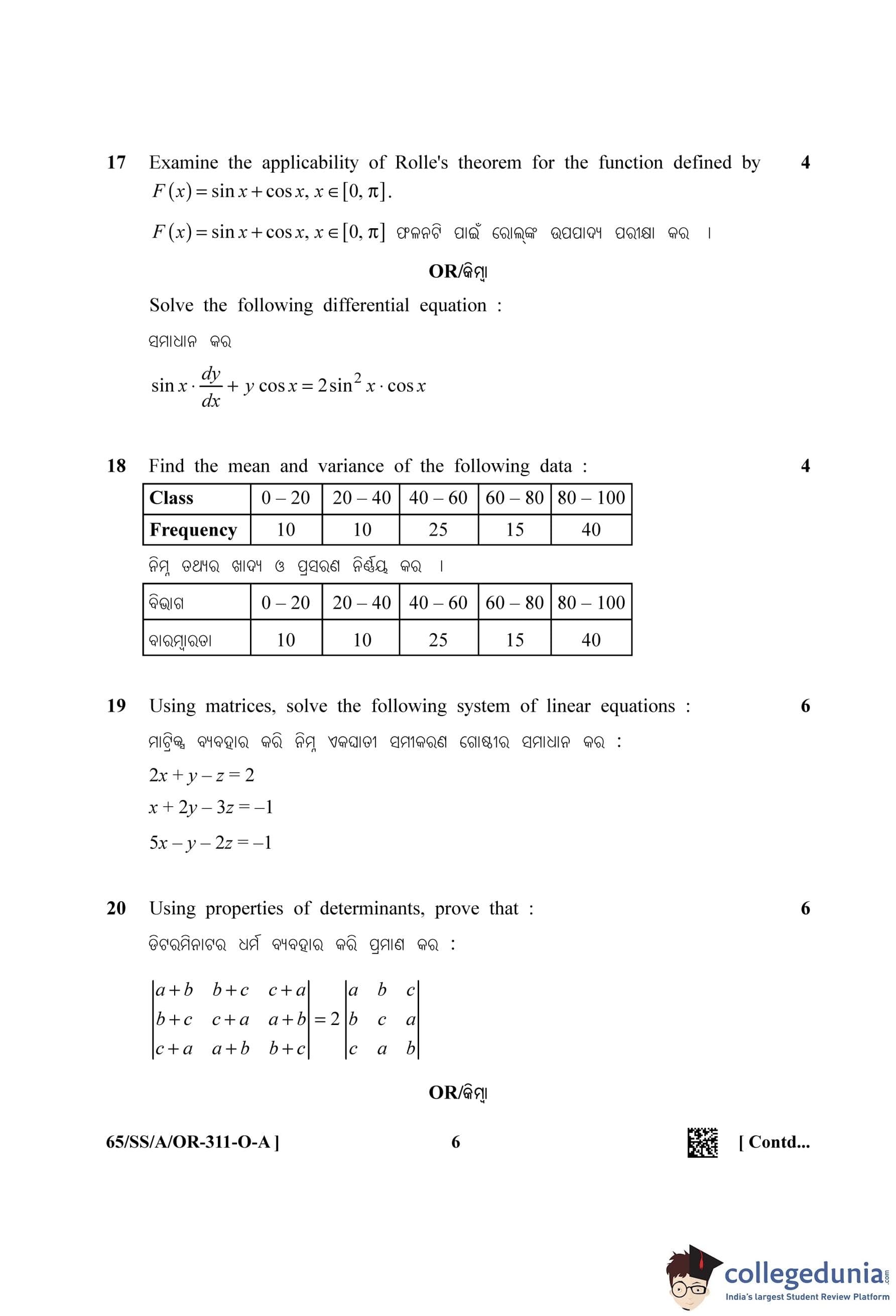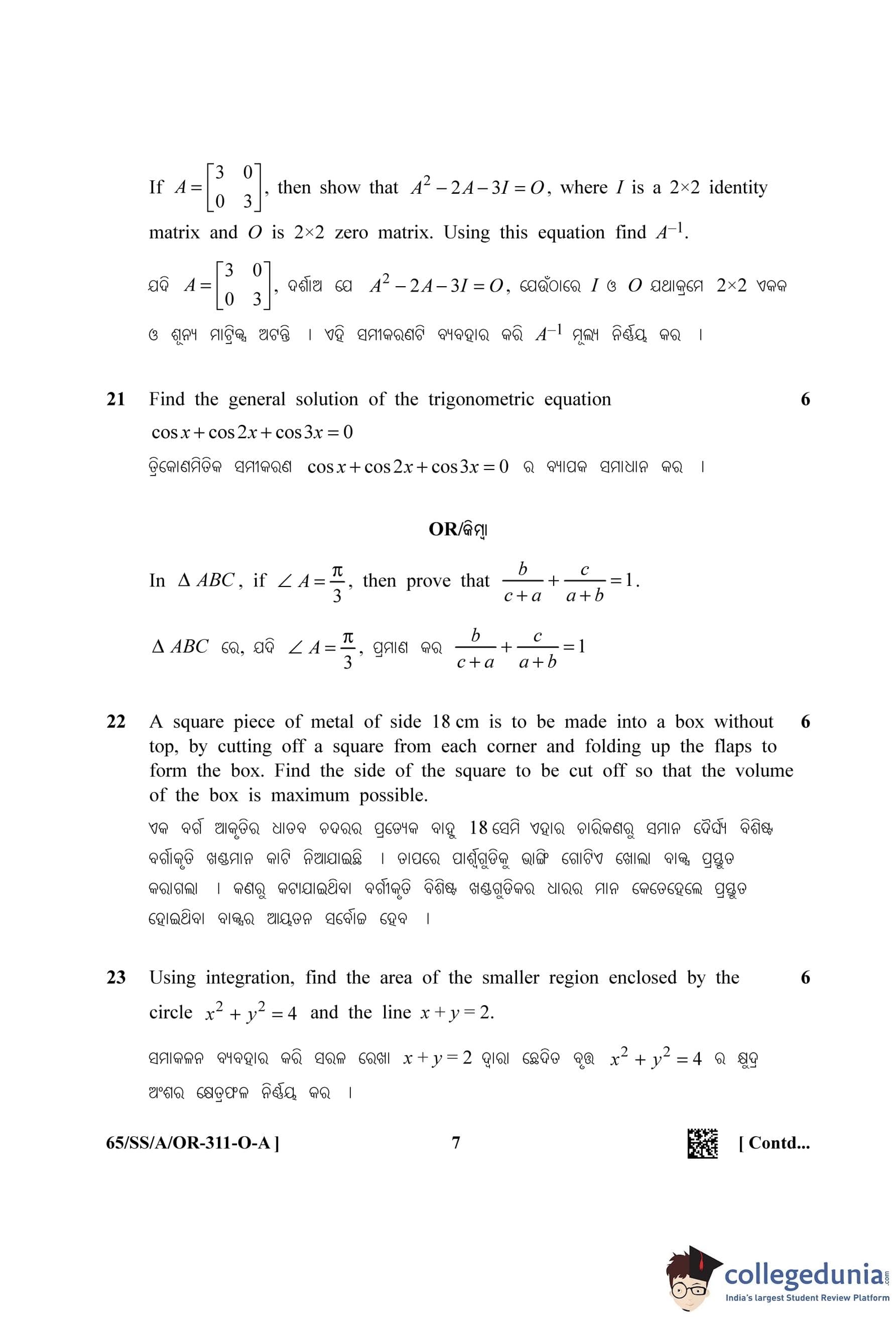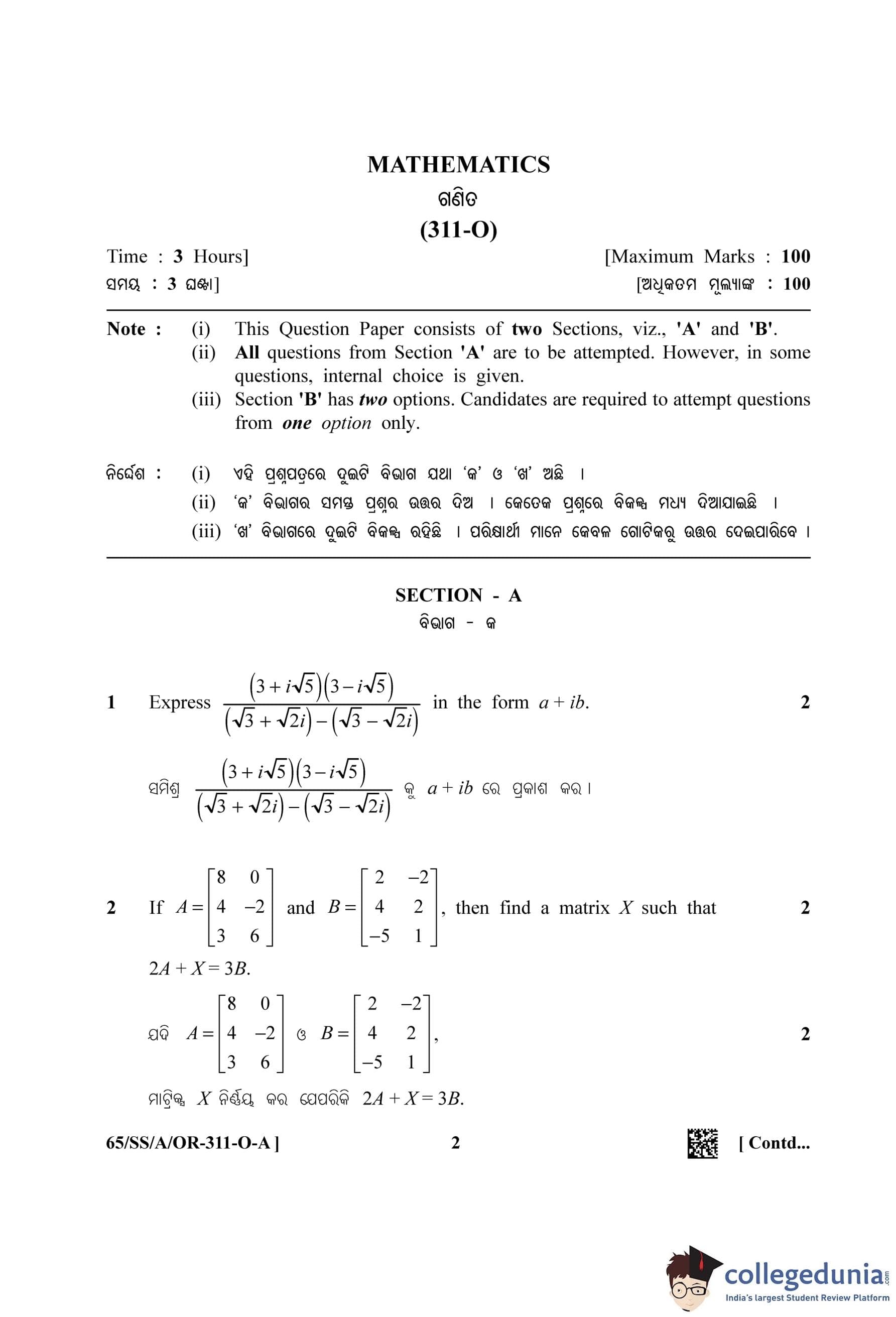 NIOS Class 12 Mathematics Oriya (Set A) Question Paper 2023 with Answer Key