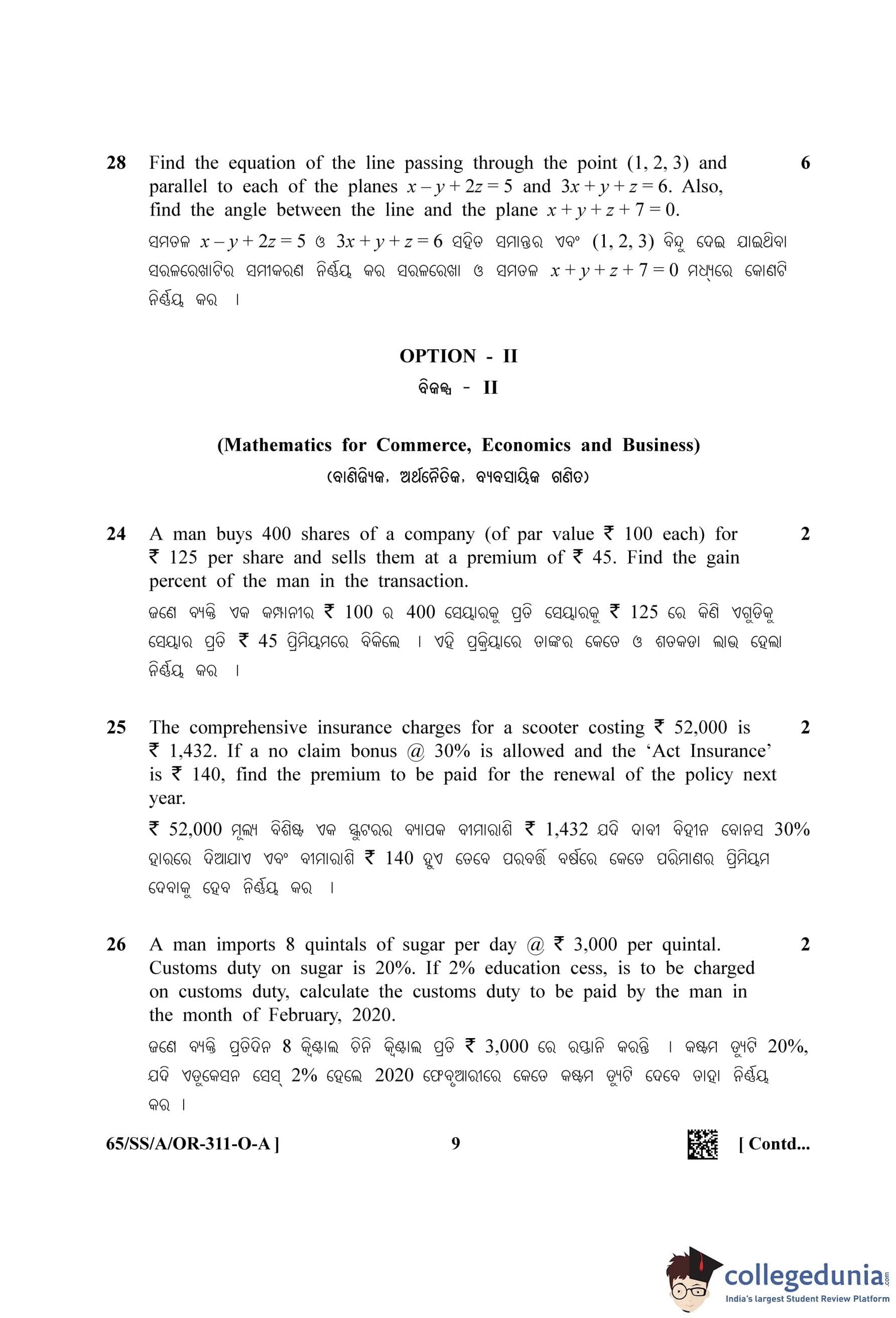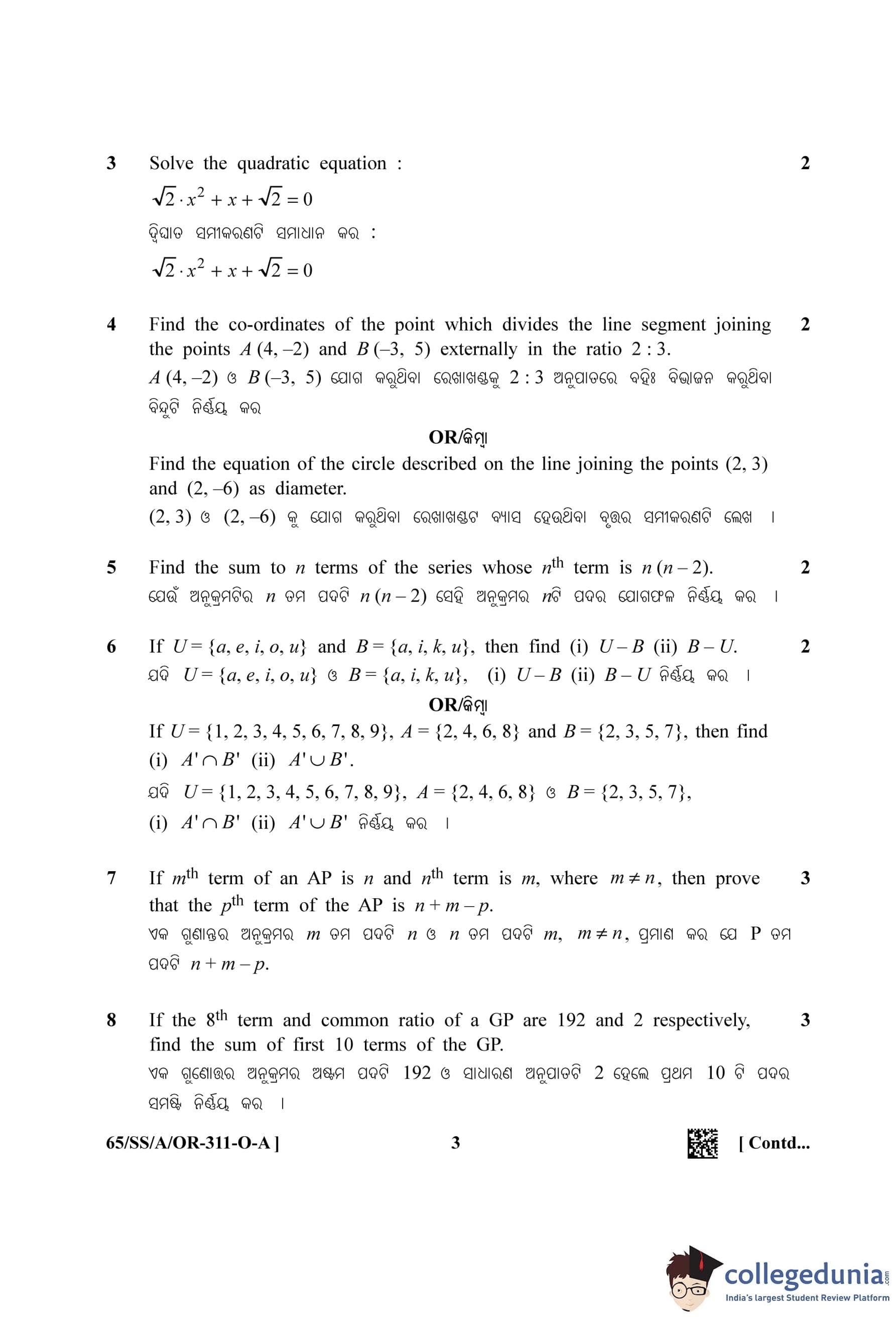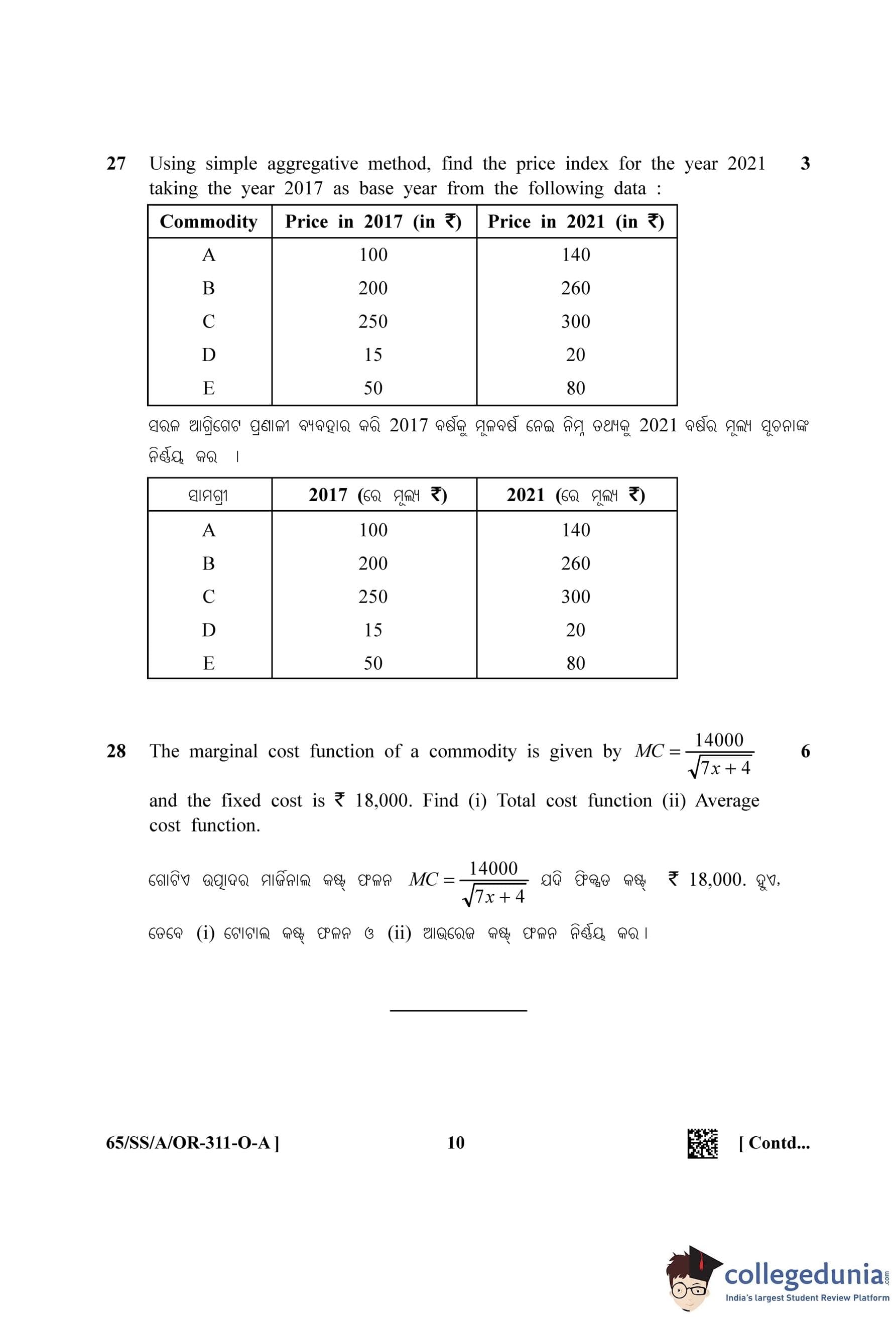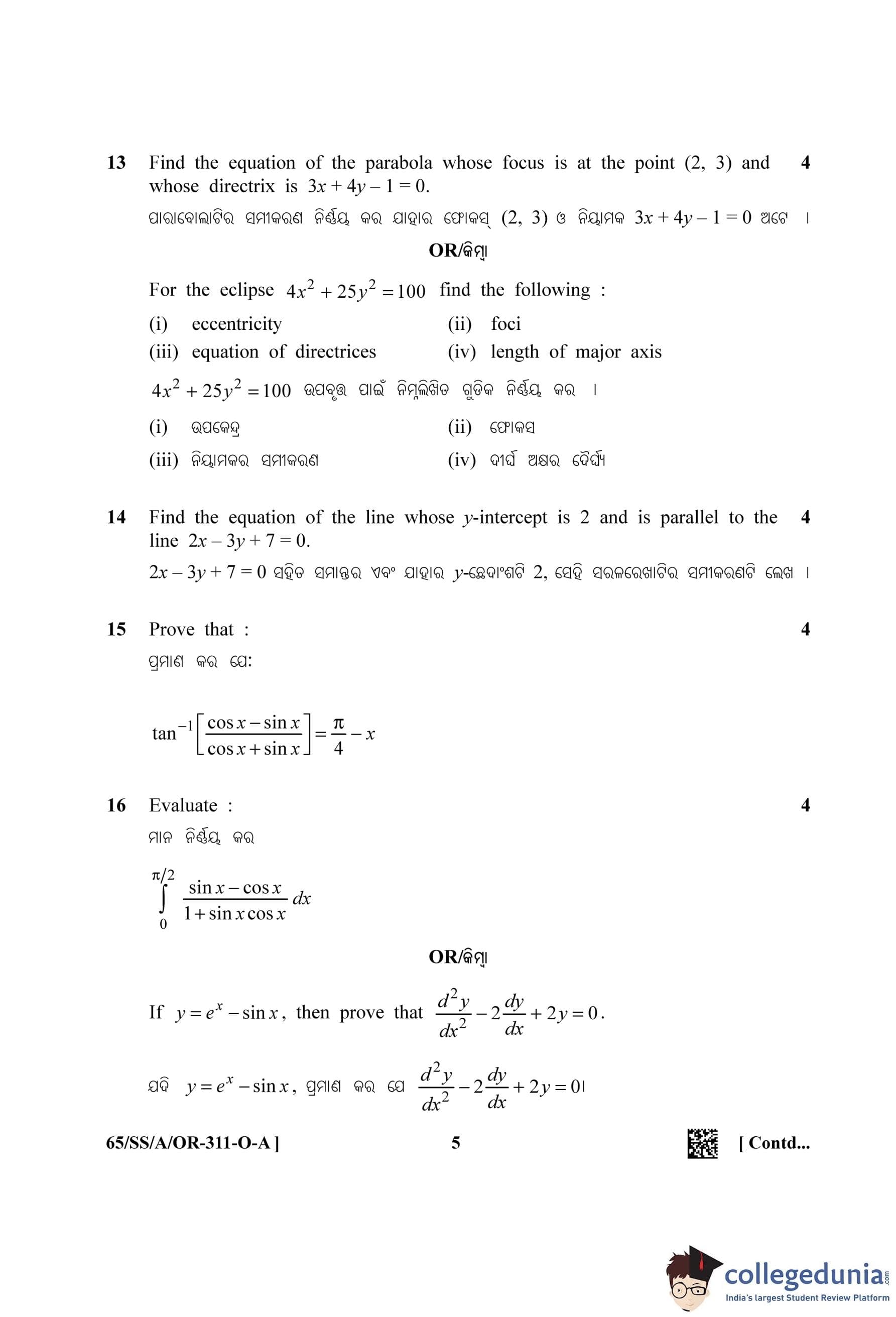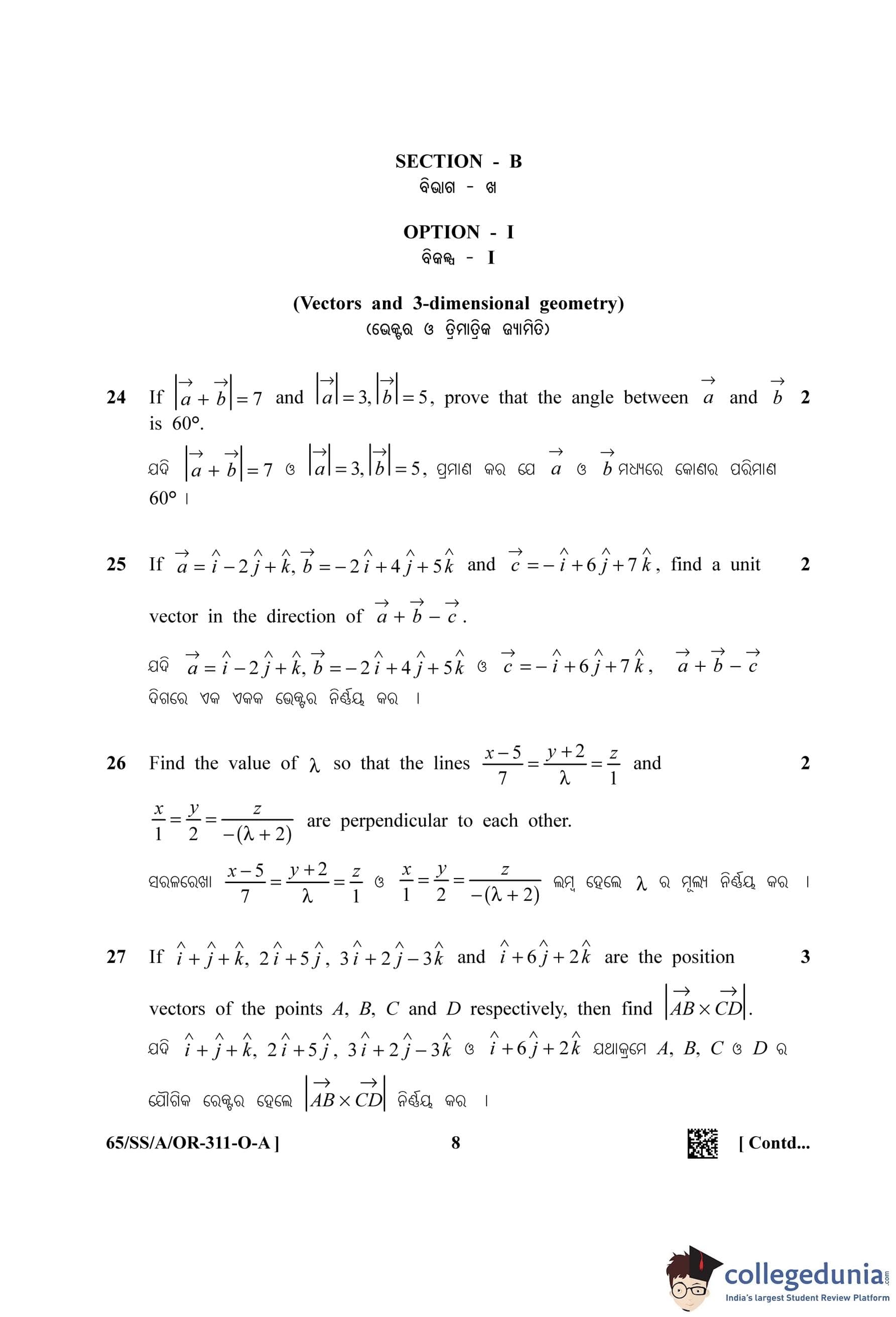 NIOS Class 12 Mathematics Oriya (Set A) Question Paper 2023 with Answer Key