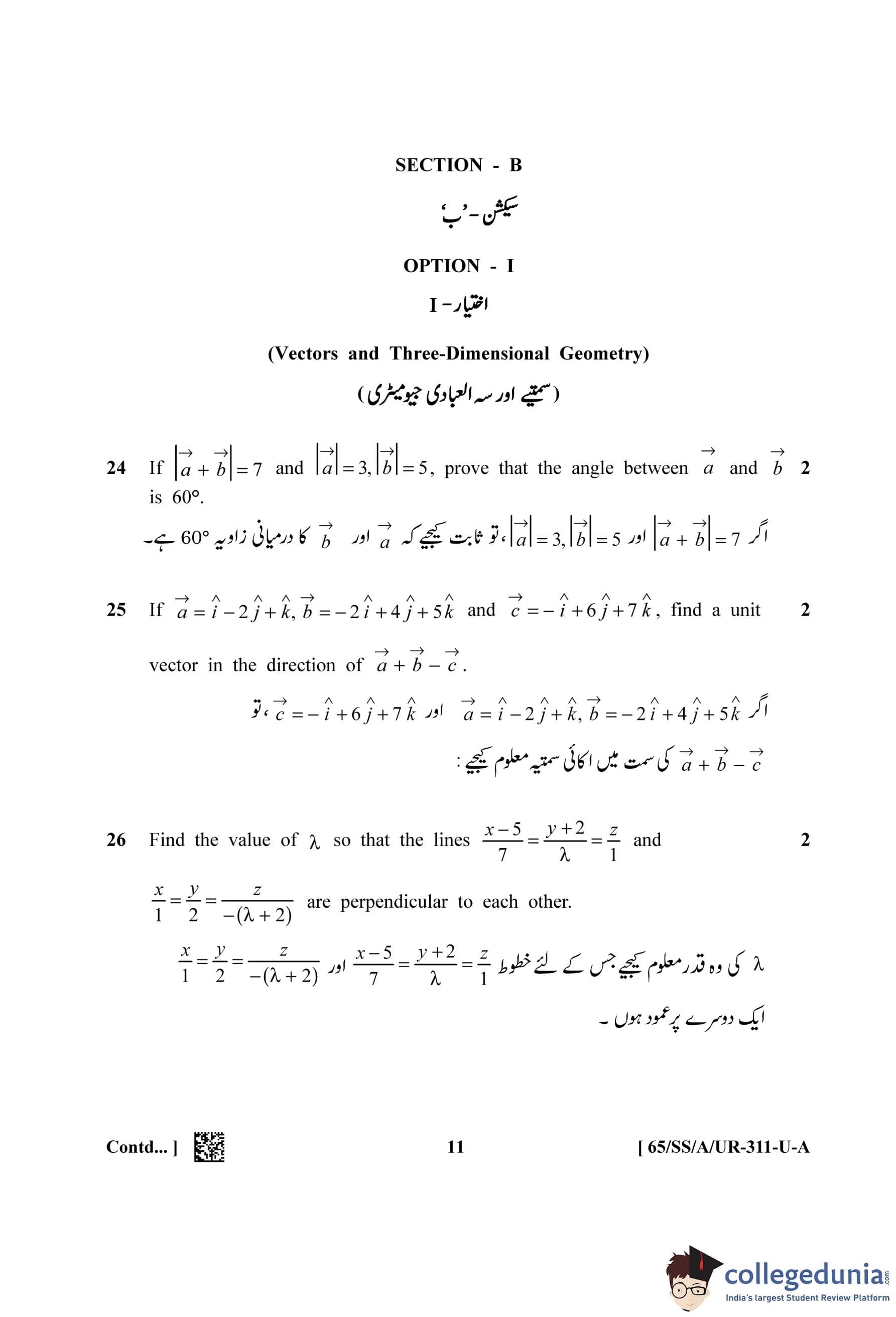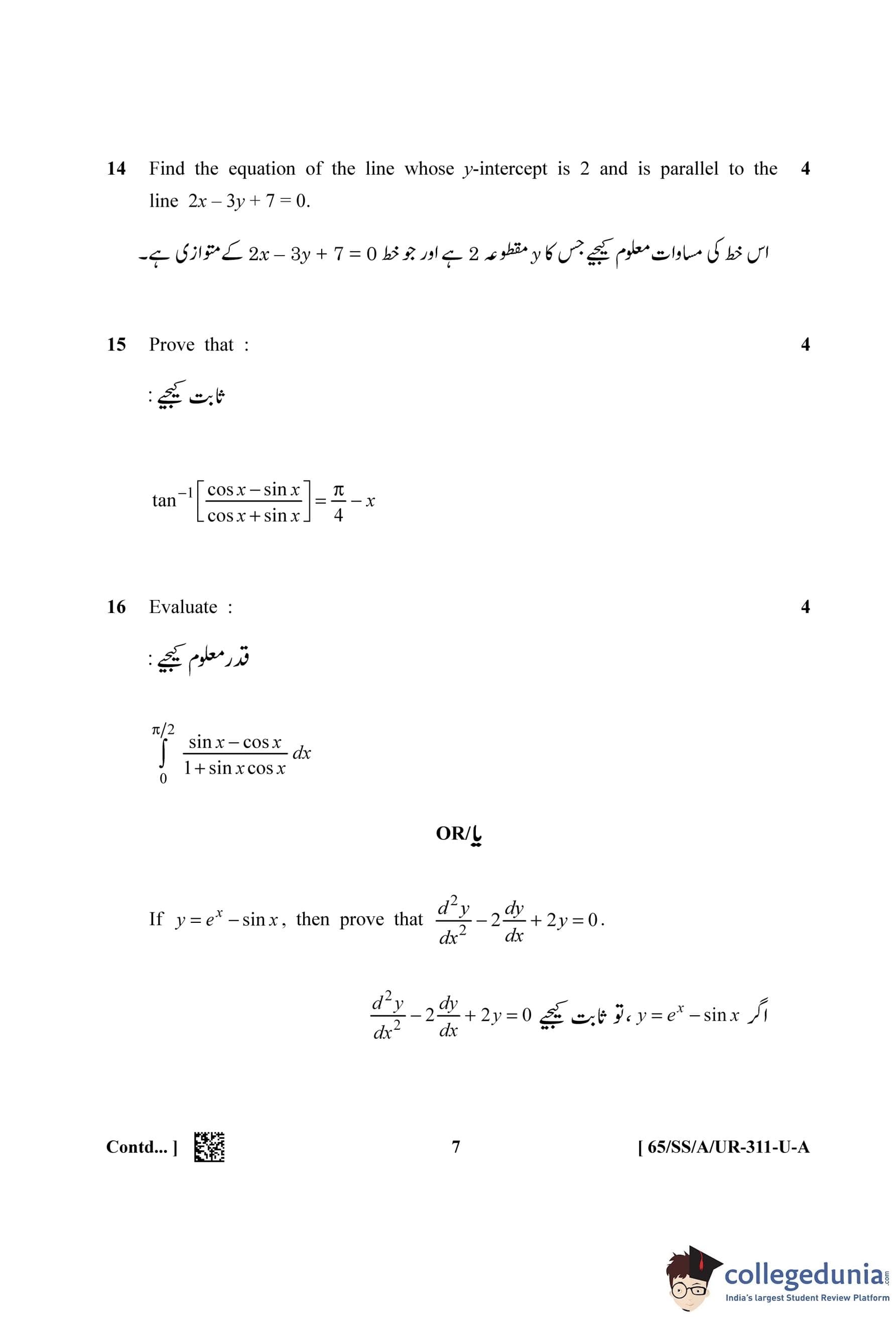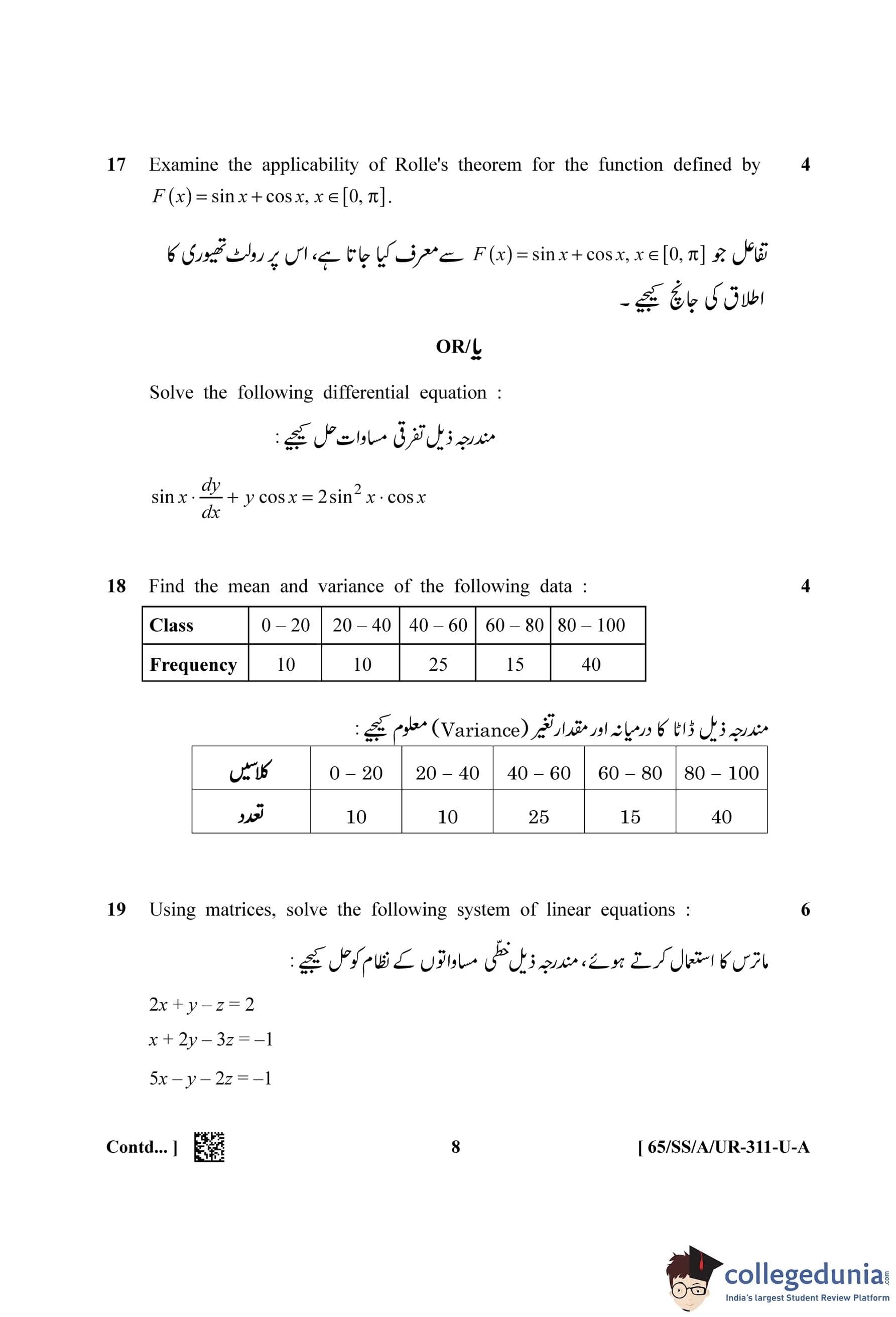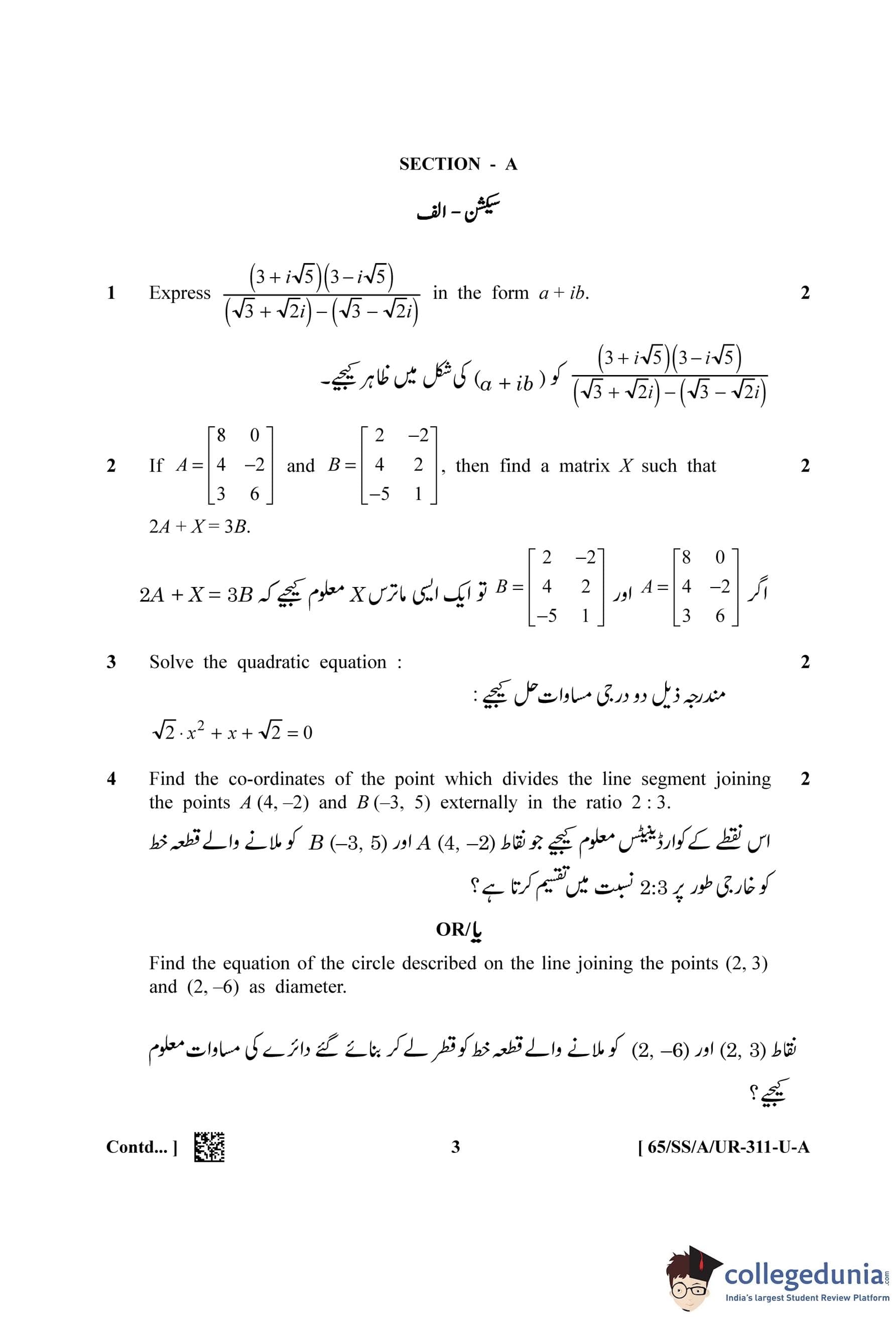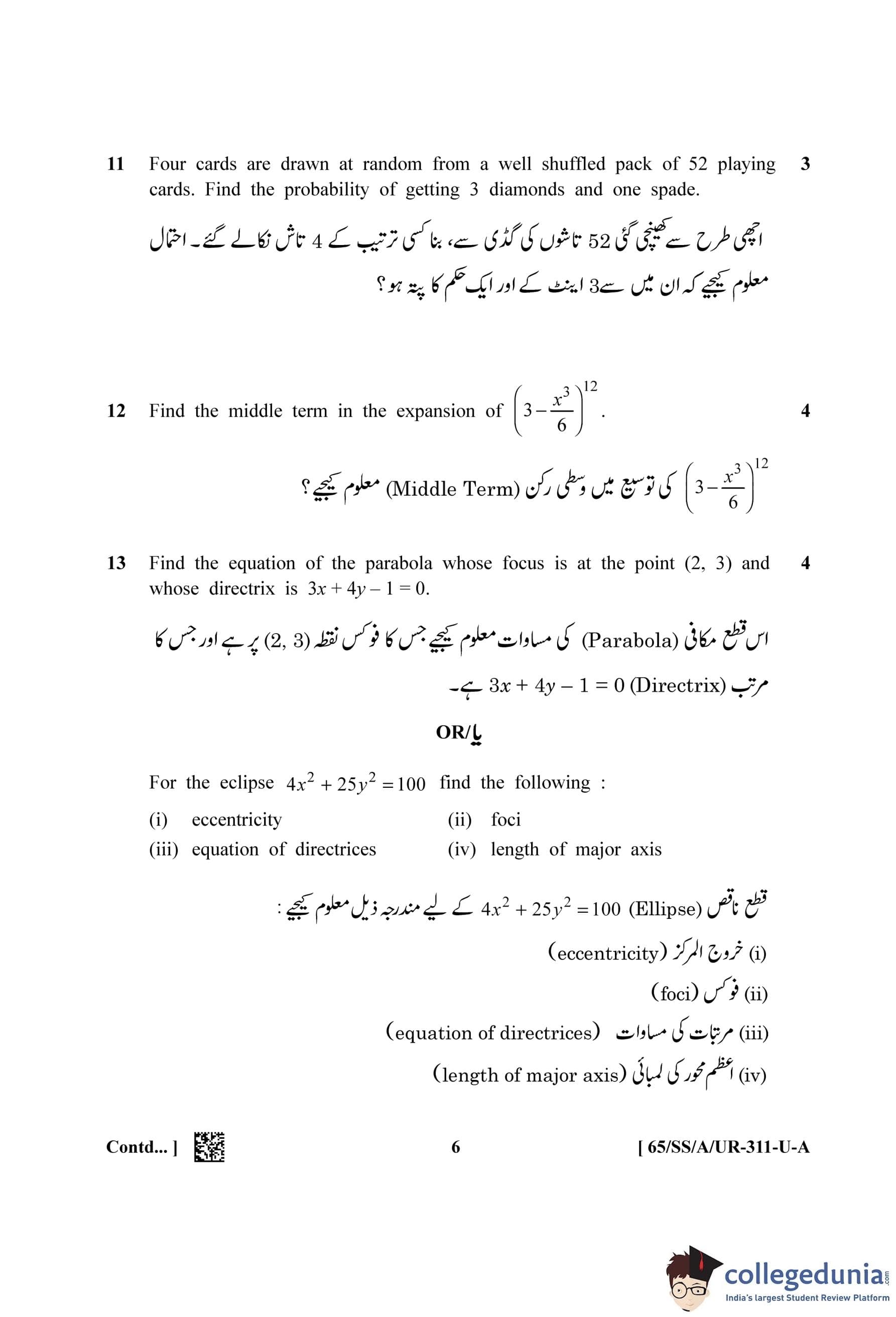 NIOS Class 12 Mathematics Urdu (Set A) Question Paper 2023 with Answer Key