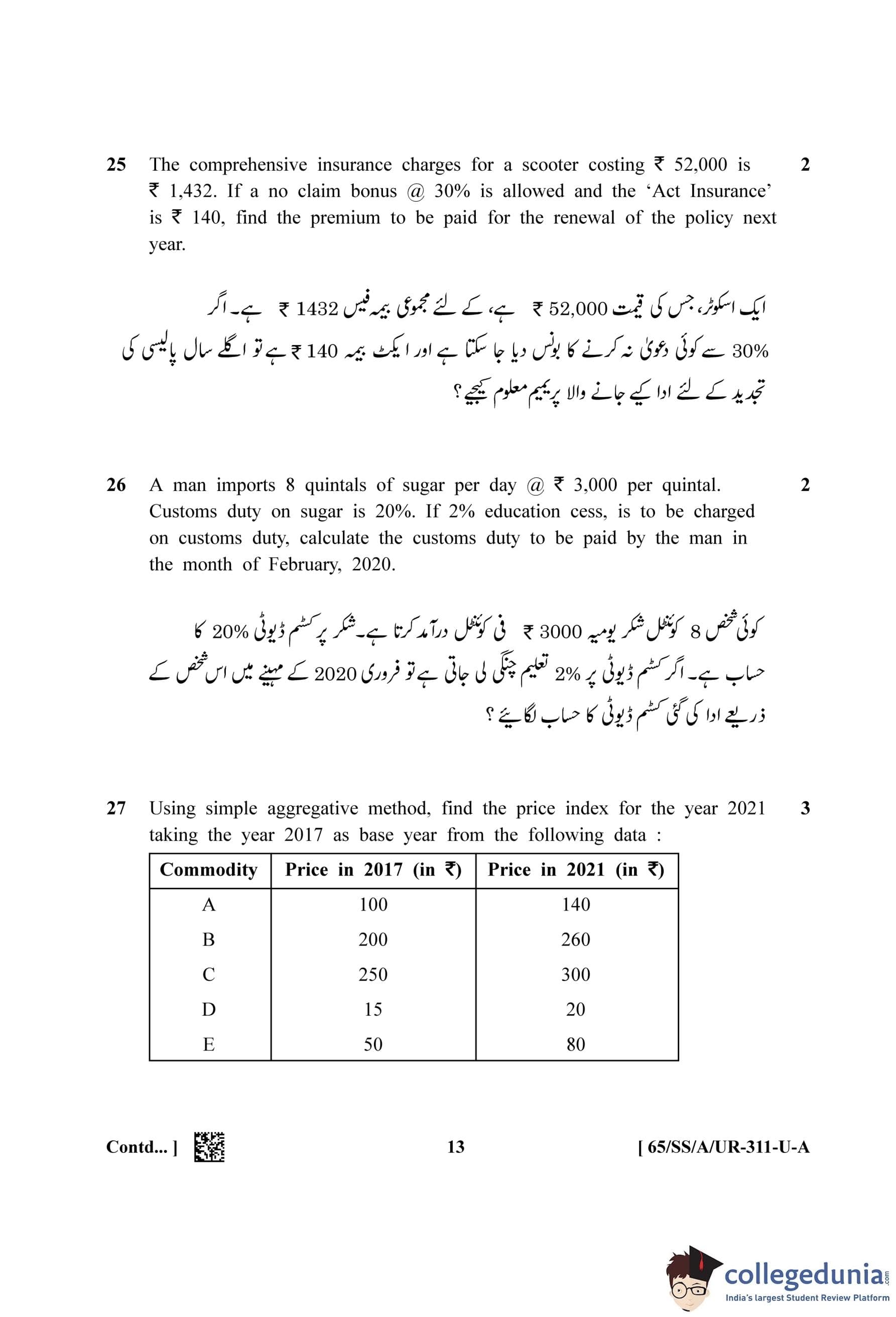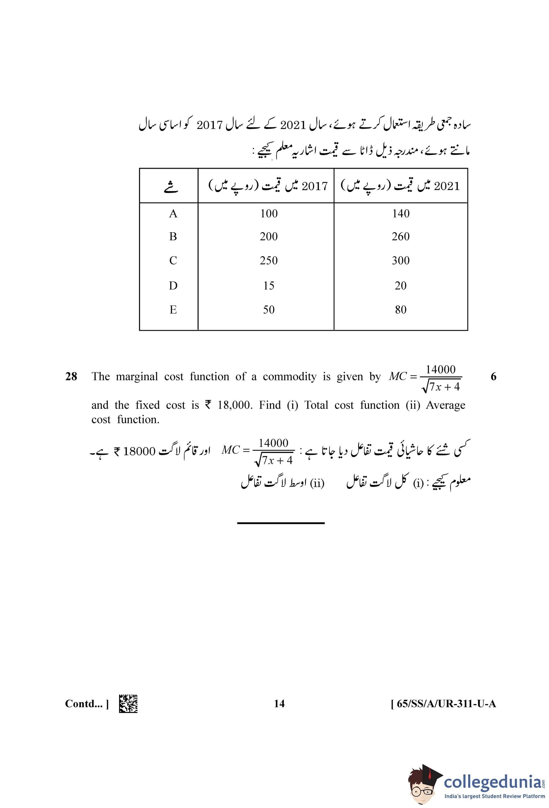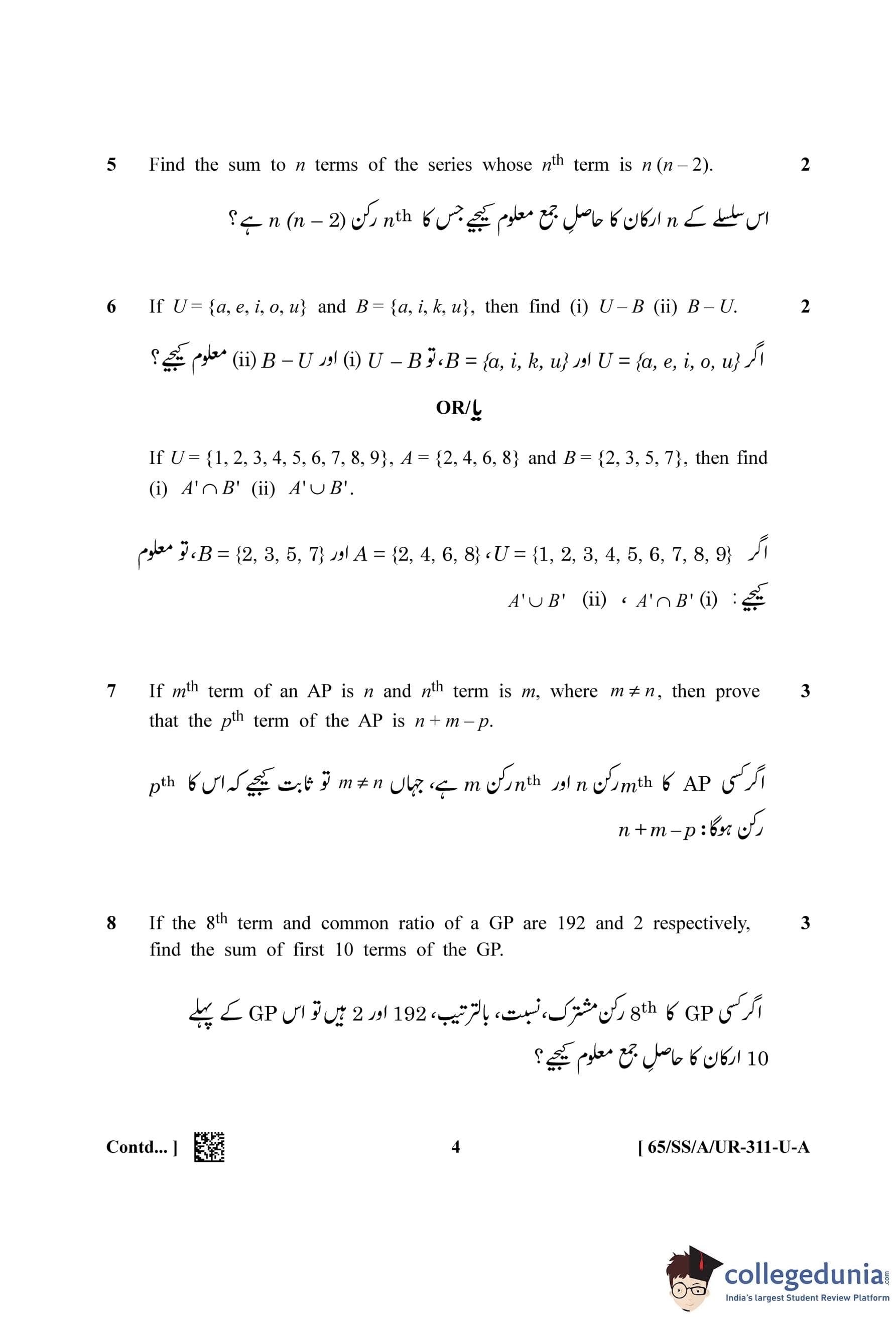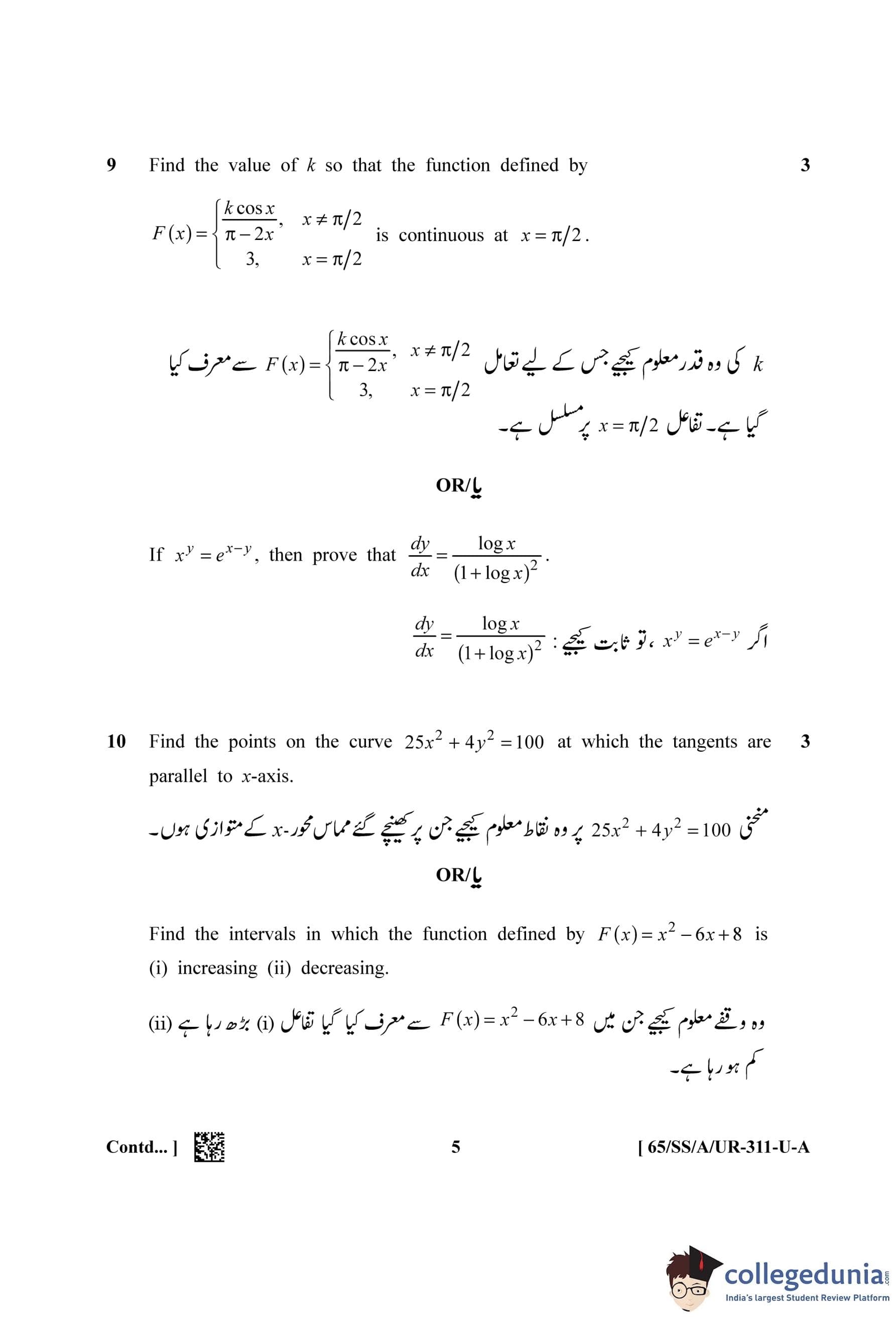 NIOS Class 12 Mathematics Urdu (Set A) Question Paper 2023 with Answer Key