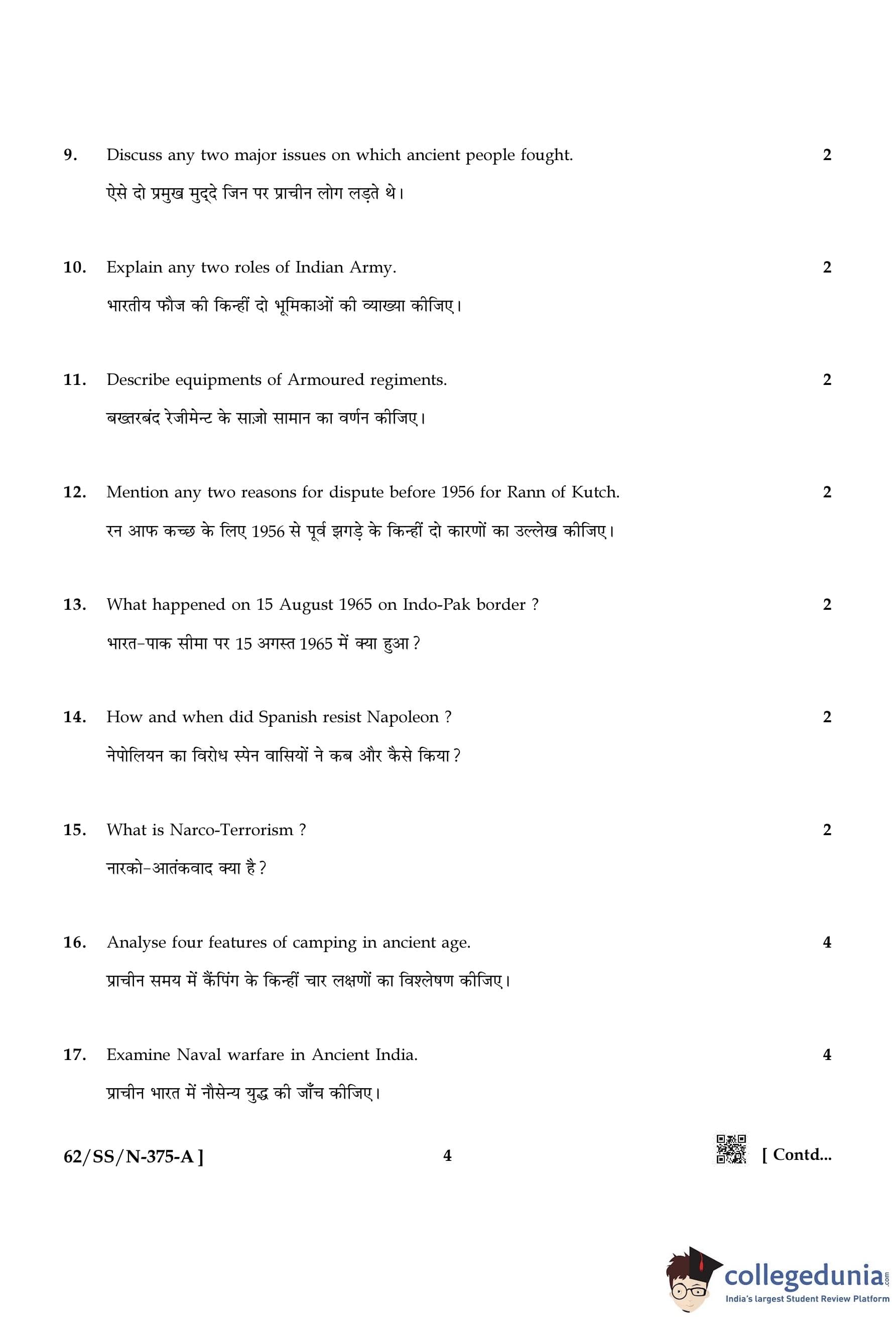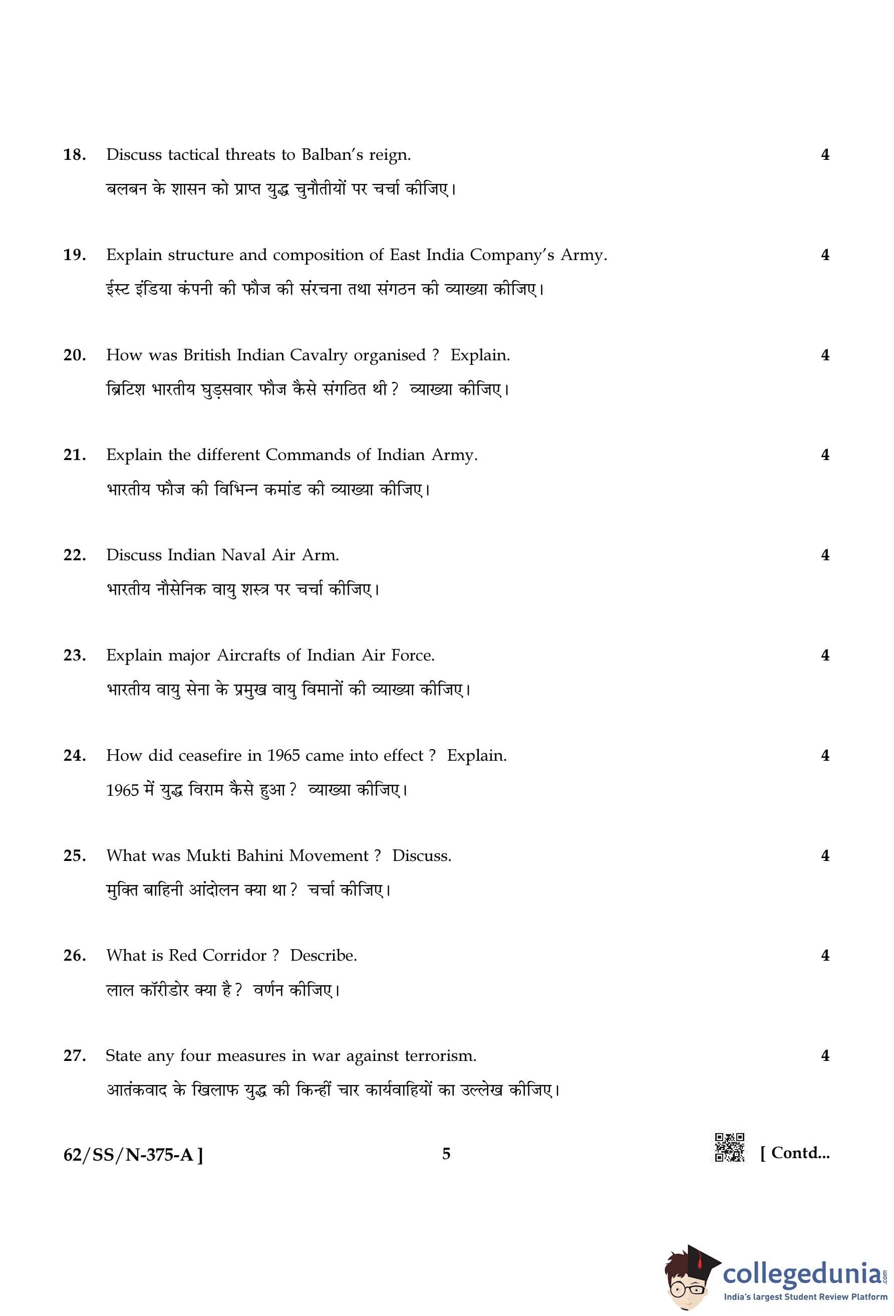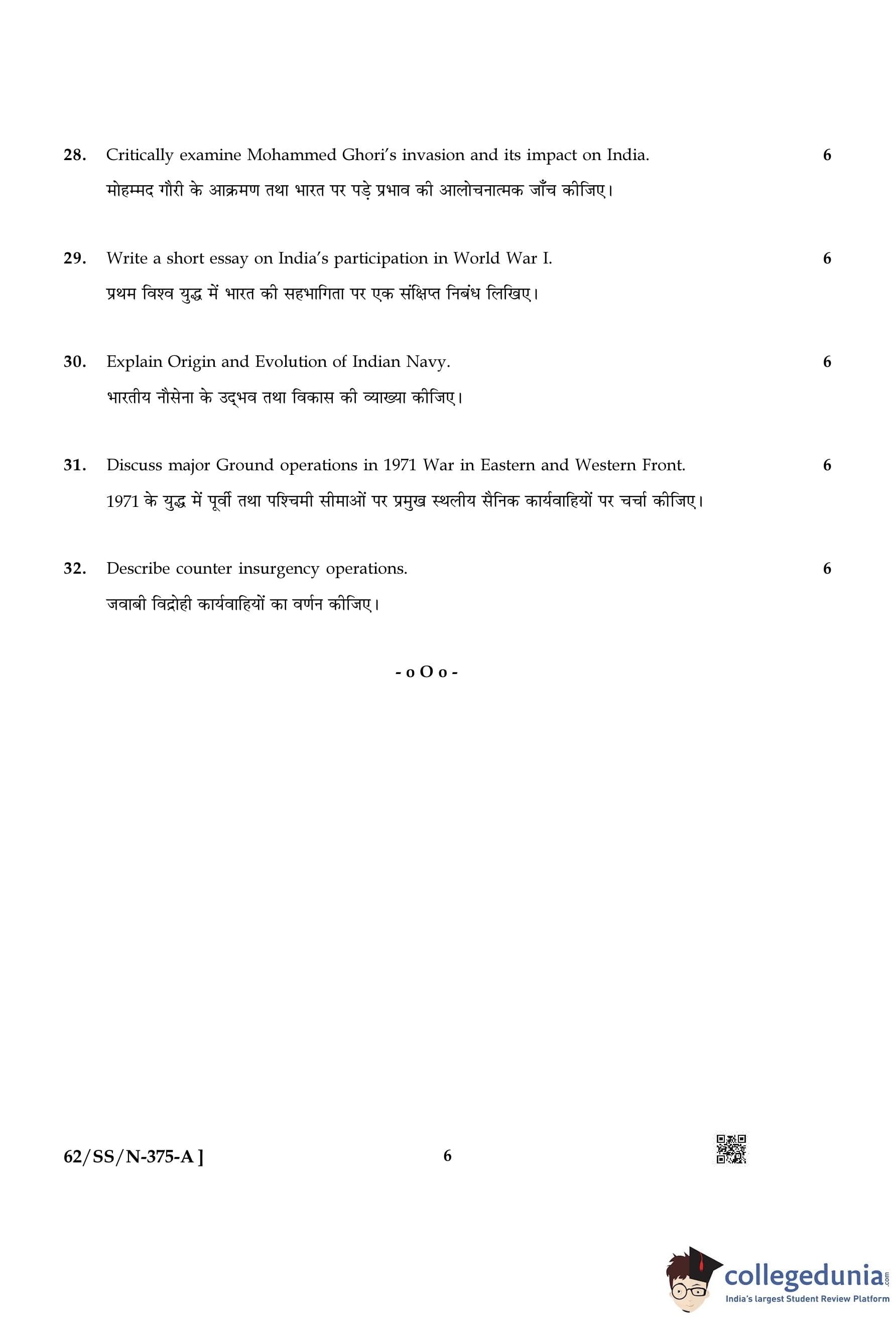NIOS Class 12 Military History Compartment Question Paper 2021 with Answer Key