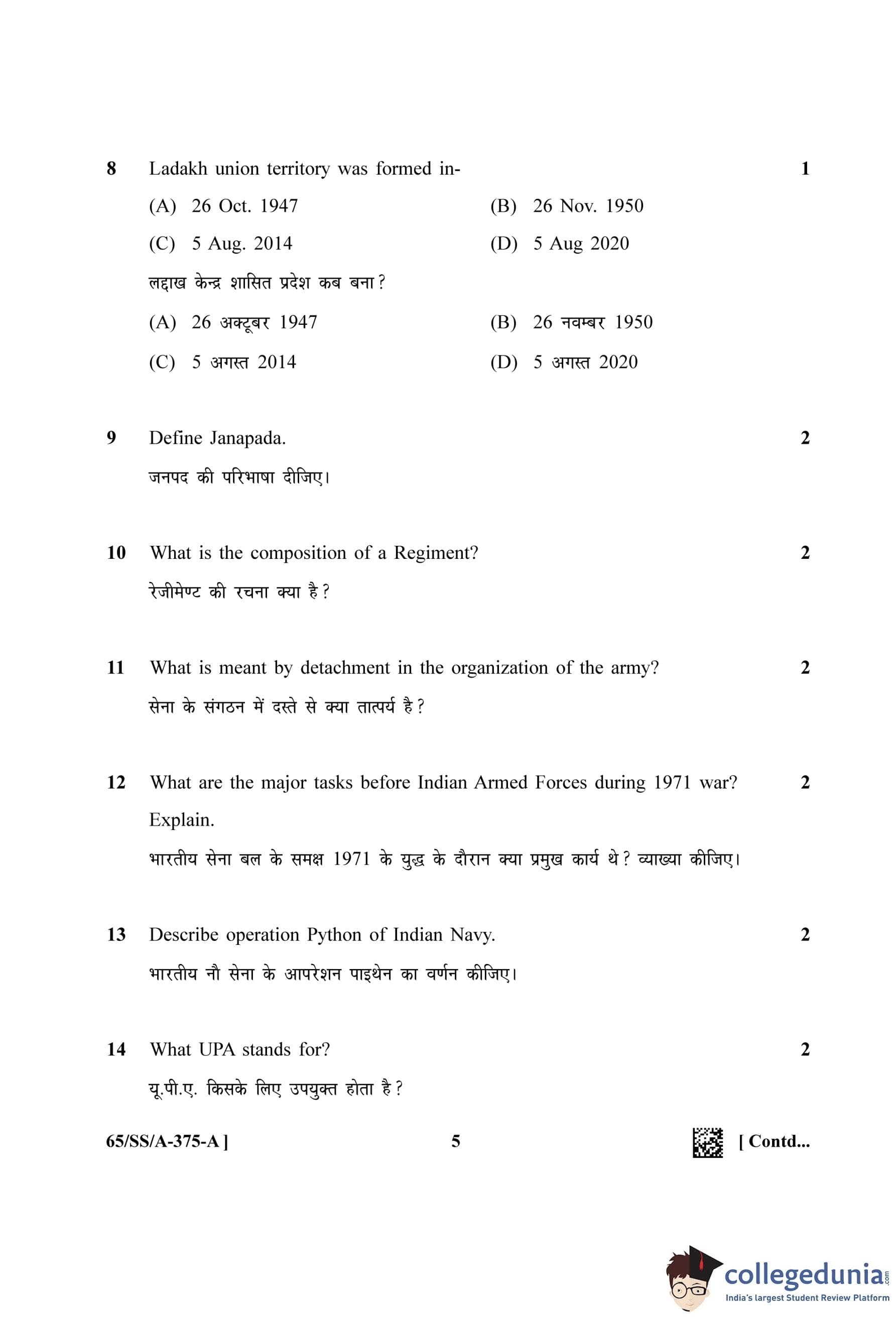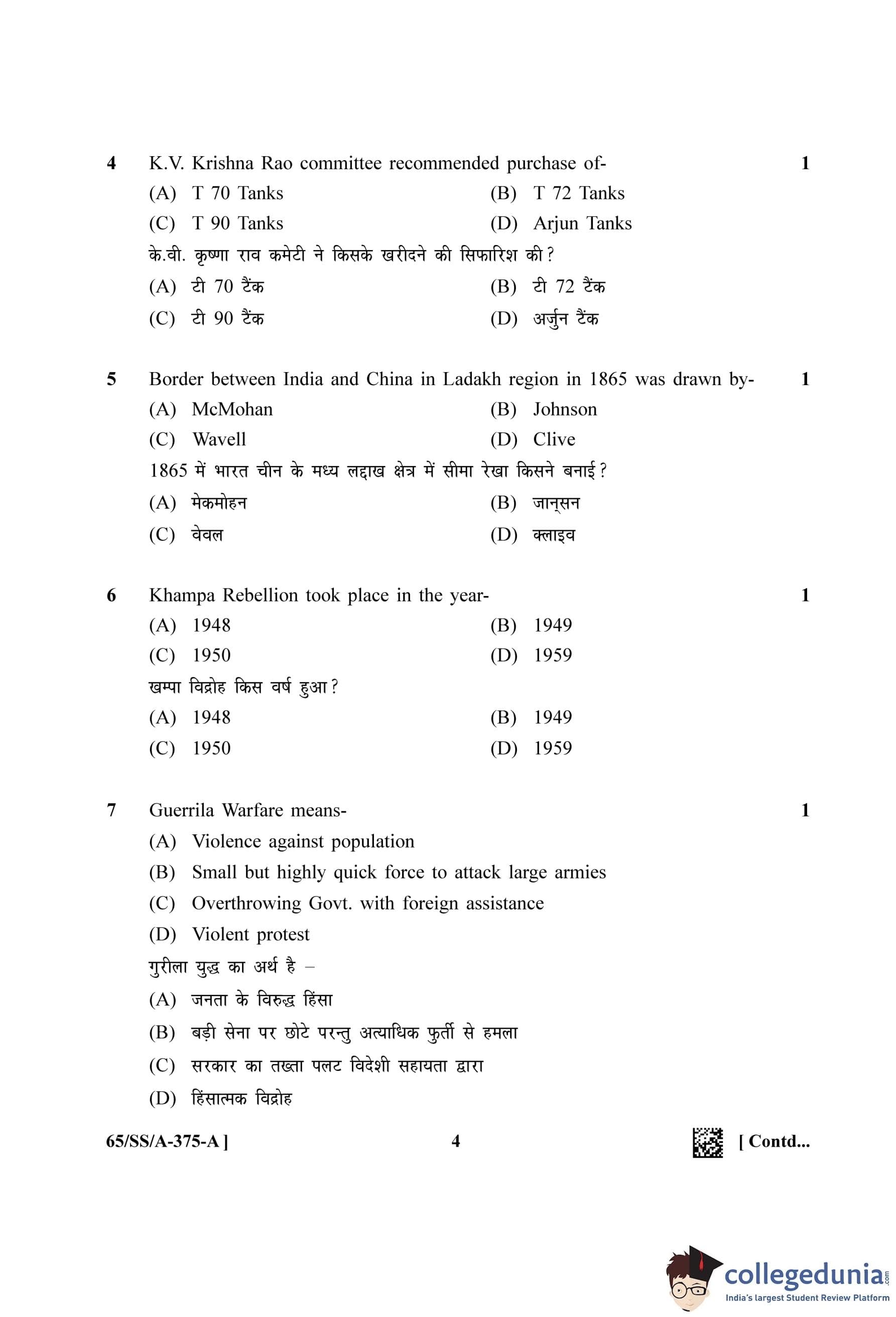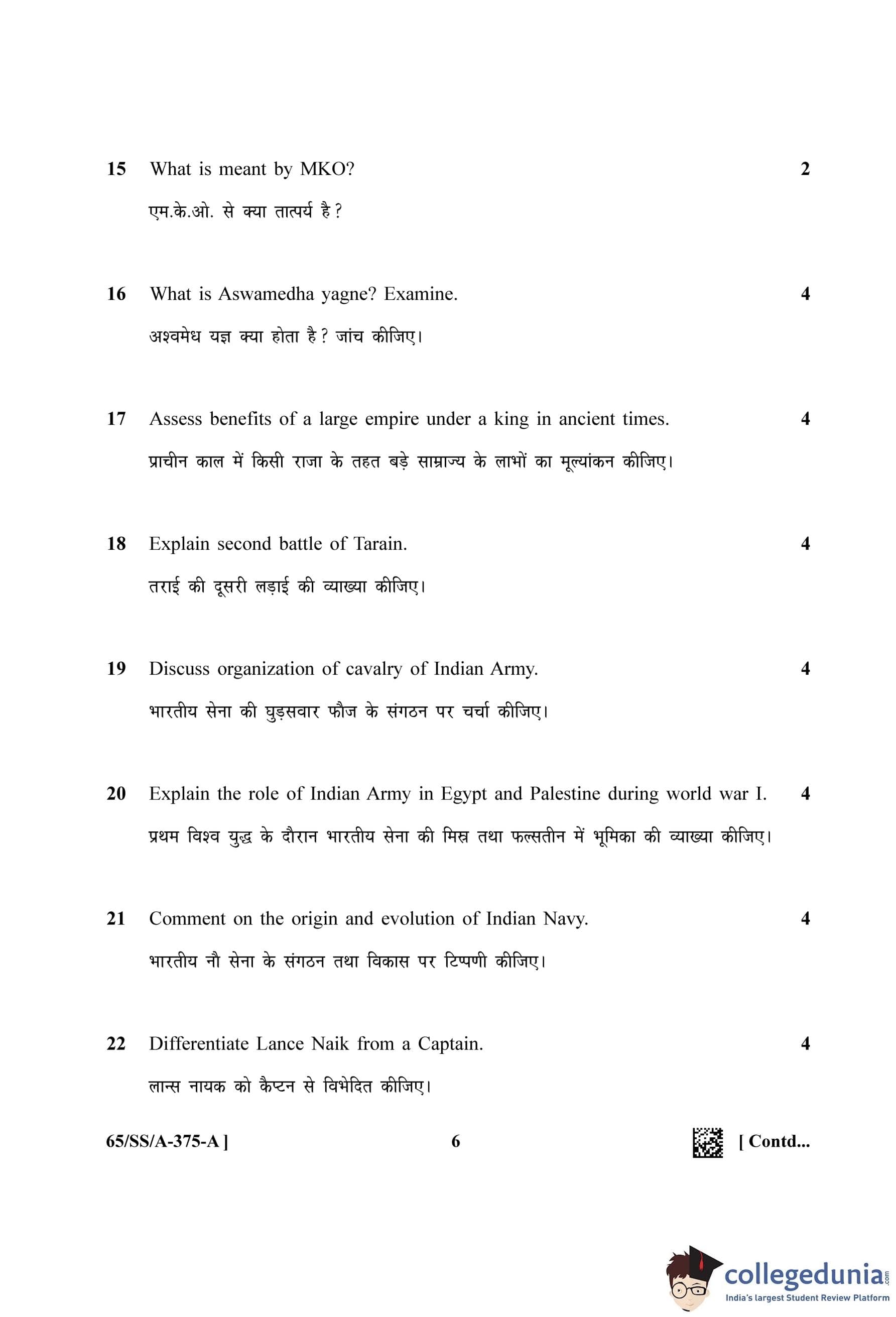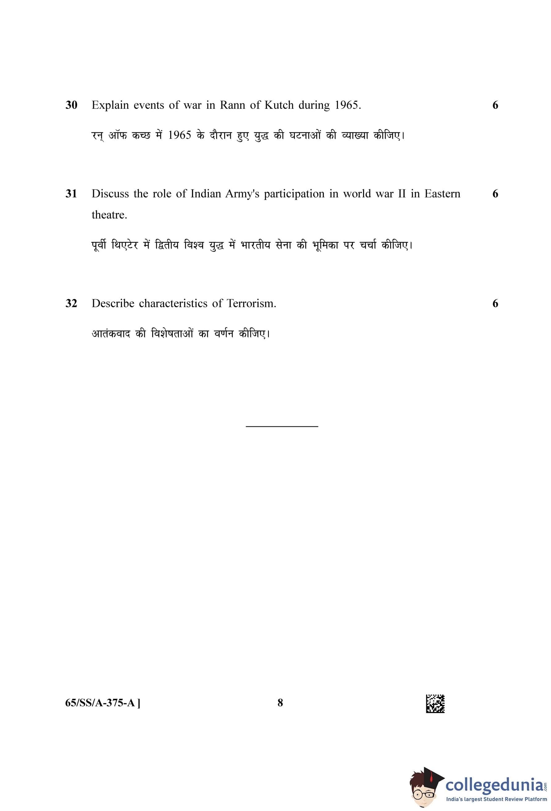 NIOS Class 12 Military History (Set A - SS) Question Paper 2023 with Answer Key
