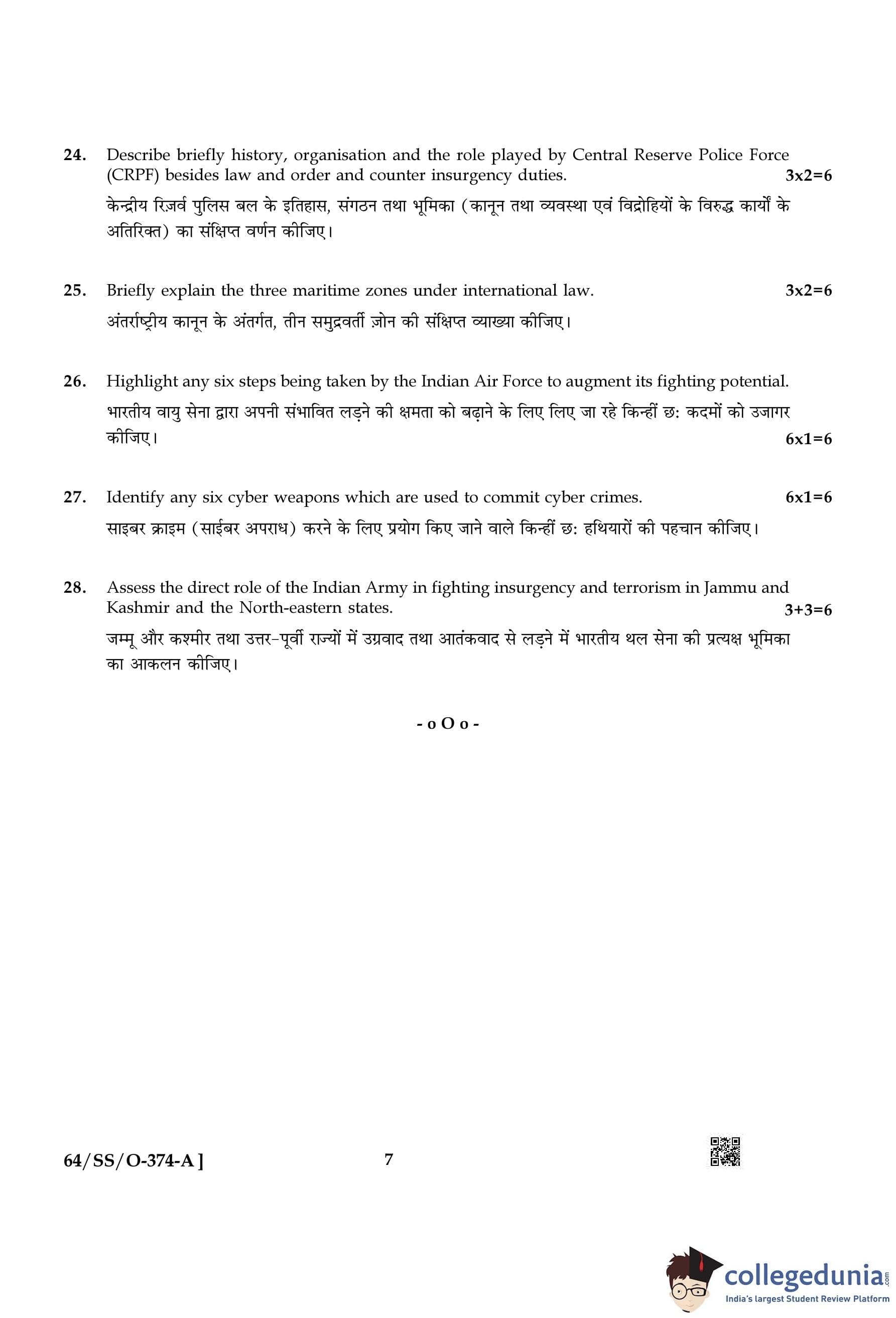 NIOS Class 12 Military Studies Compartment Question Paper 2022 with Answer Key