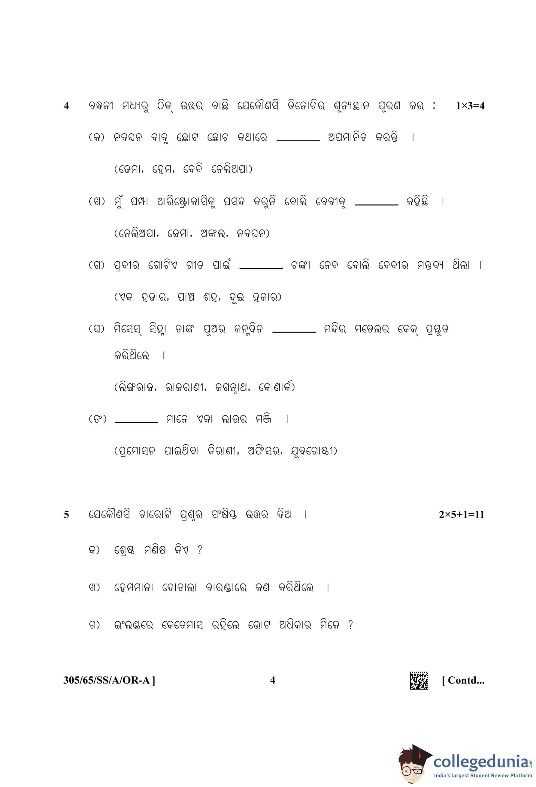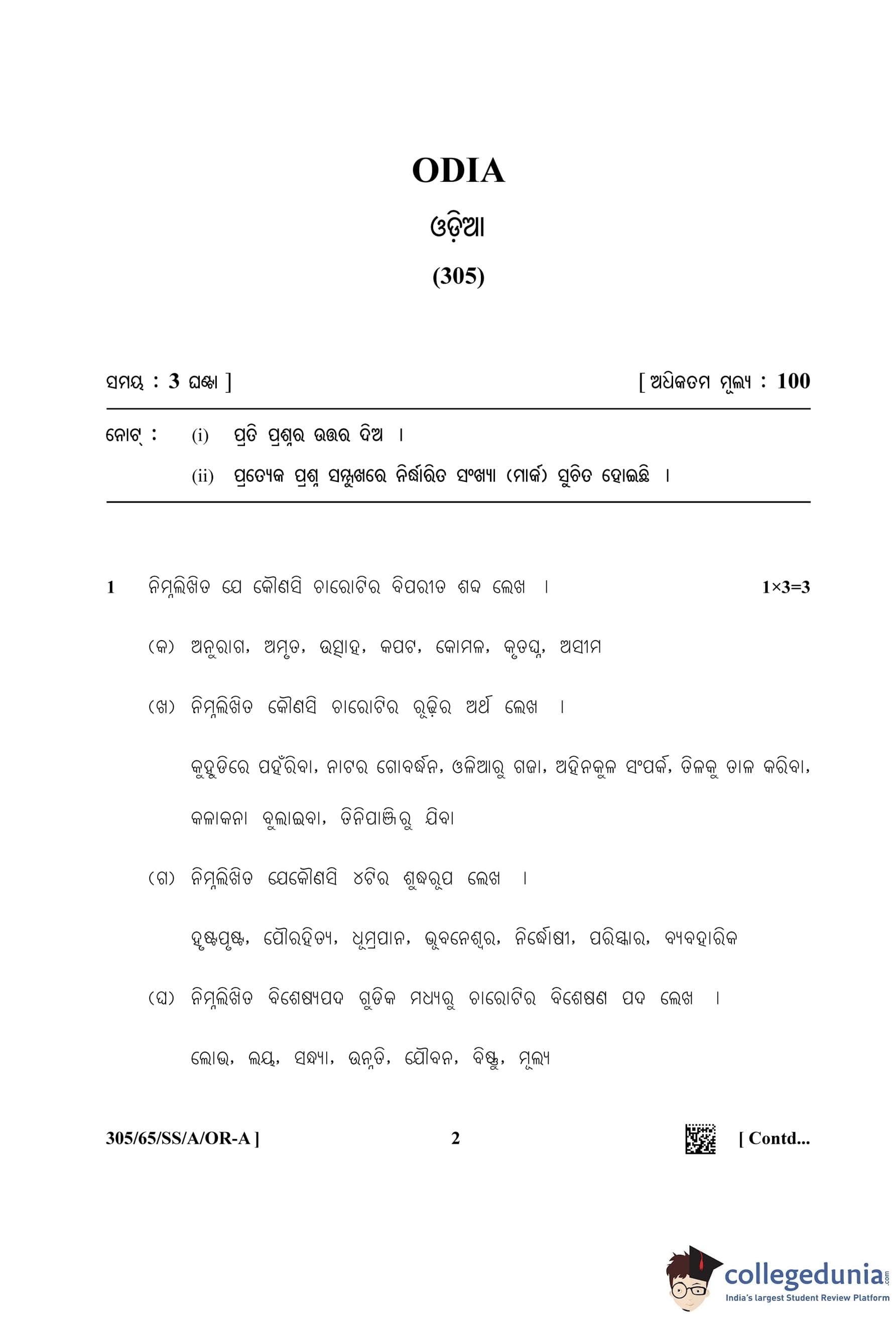 NIOS Class 12 Odiya (Set A) Question Paper 2023 with Answer Key