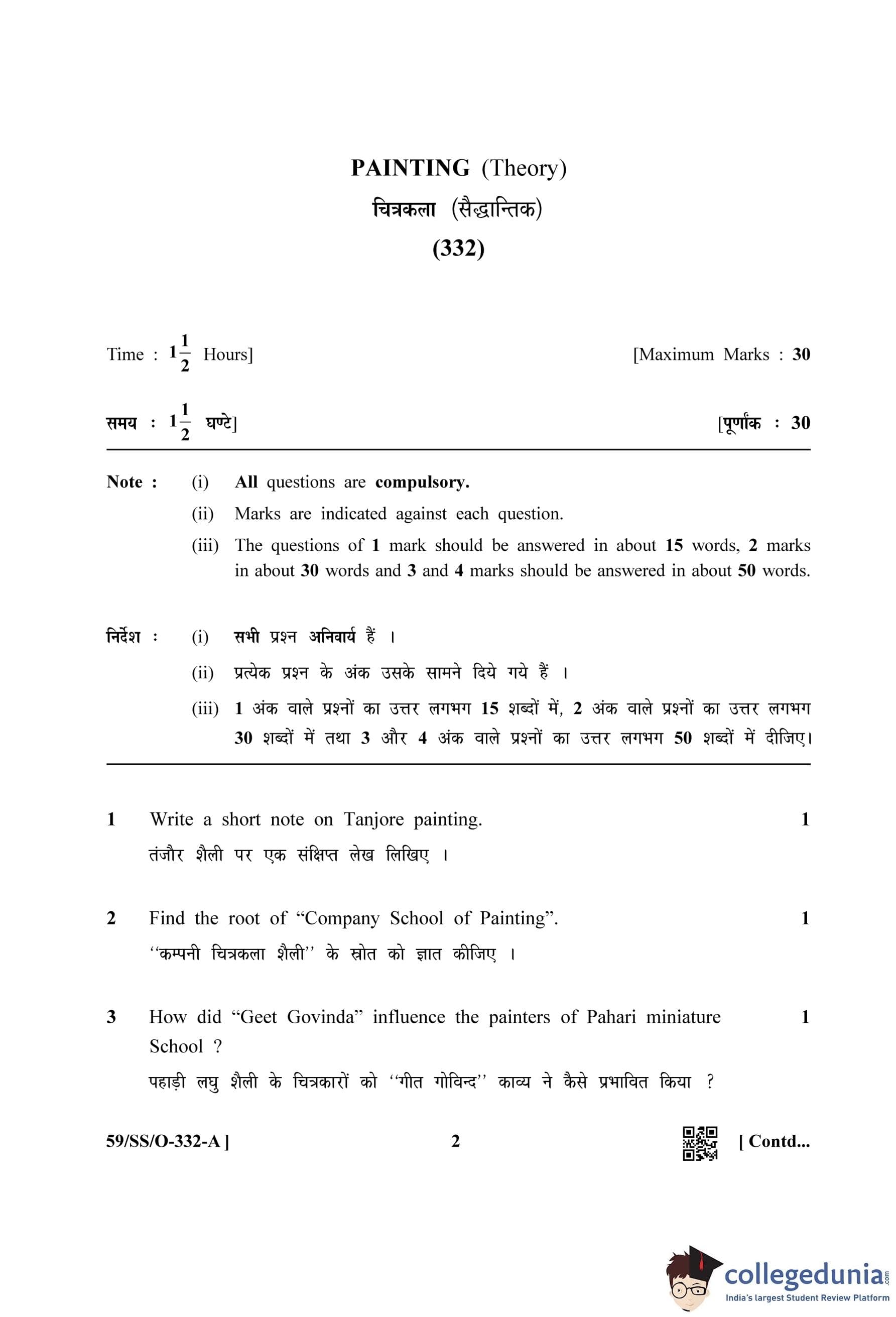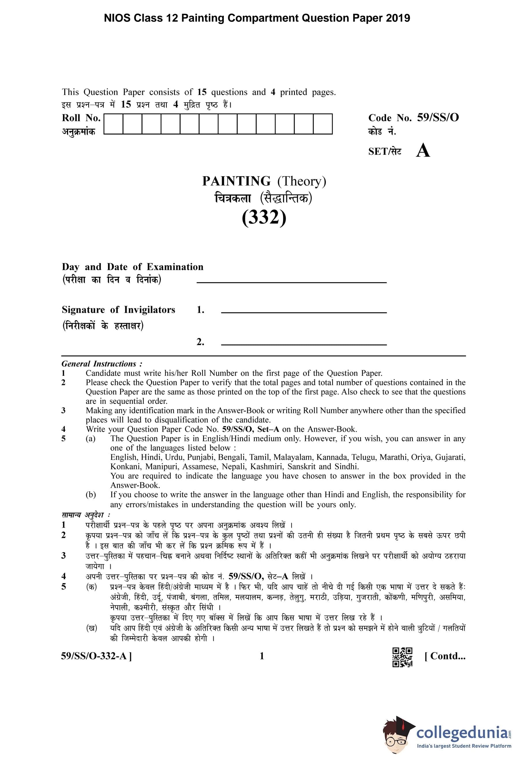 NIOS Class 12 Painting Compartment Question Paper 2019 with Answer Key pdf is available for download here. The exam was conducted by National Institute of Open Schooling on October 25, 2019 in the Afternoon Session 2:30 PM to 4 PM. The question paper comprised a total of 15 questions.