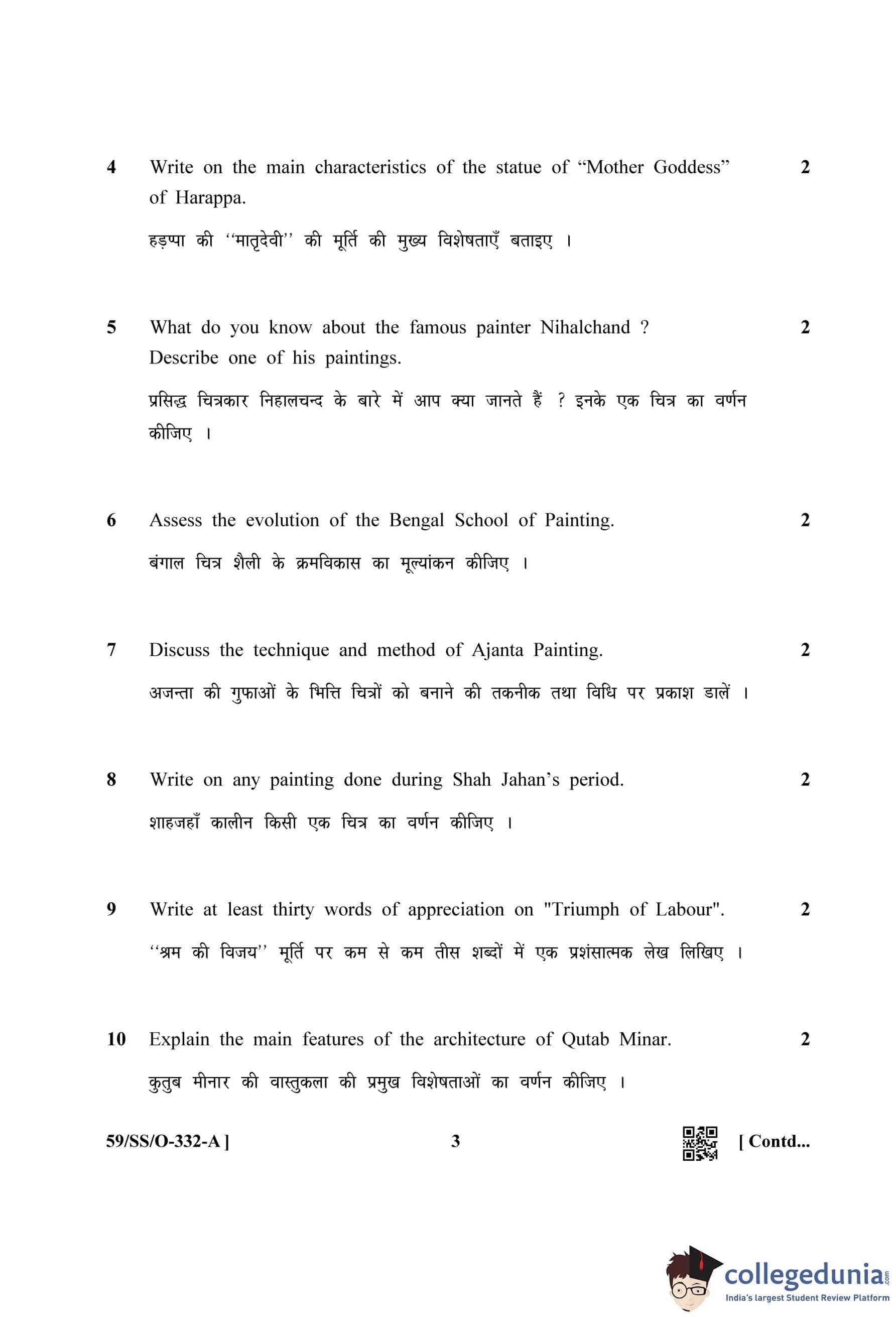 NIOS Class 12 Painting Compartment Question Paper 2019 with Answer Key
