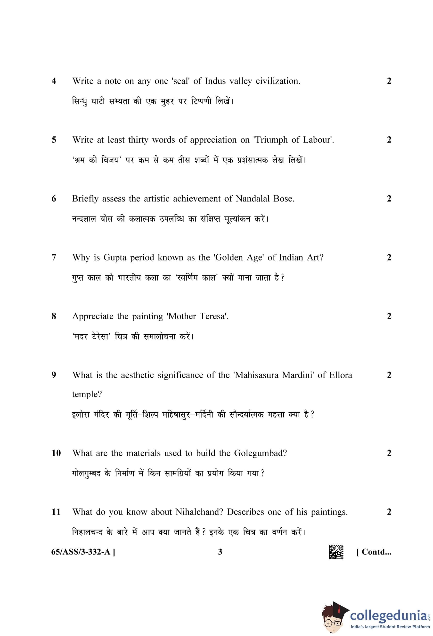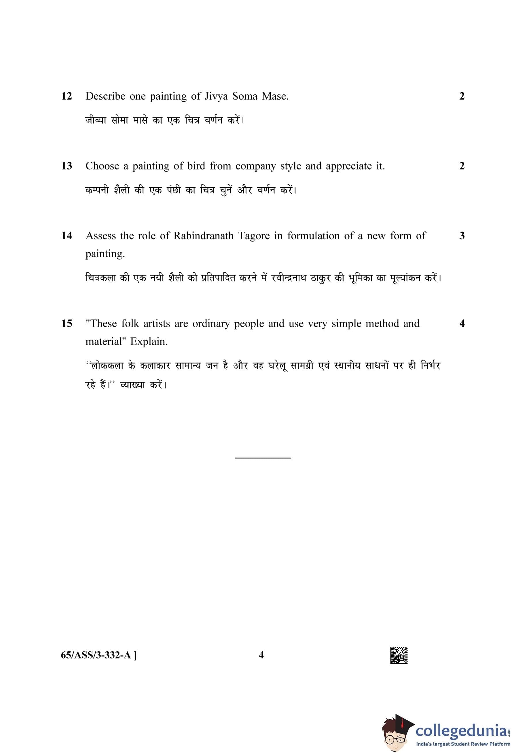 NIOS Class 12 Painting Question Paper 2023 with Answer Key pdf (Set A - ASS) is available for download here. The exam was conducted by National Institute of Open Schooling on April 11, 2023 in the Afternoon Session 2.30 PM to 4 PM. The question paper comprised a total of 15 questions.